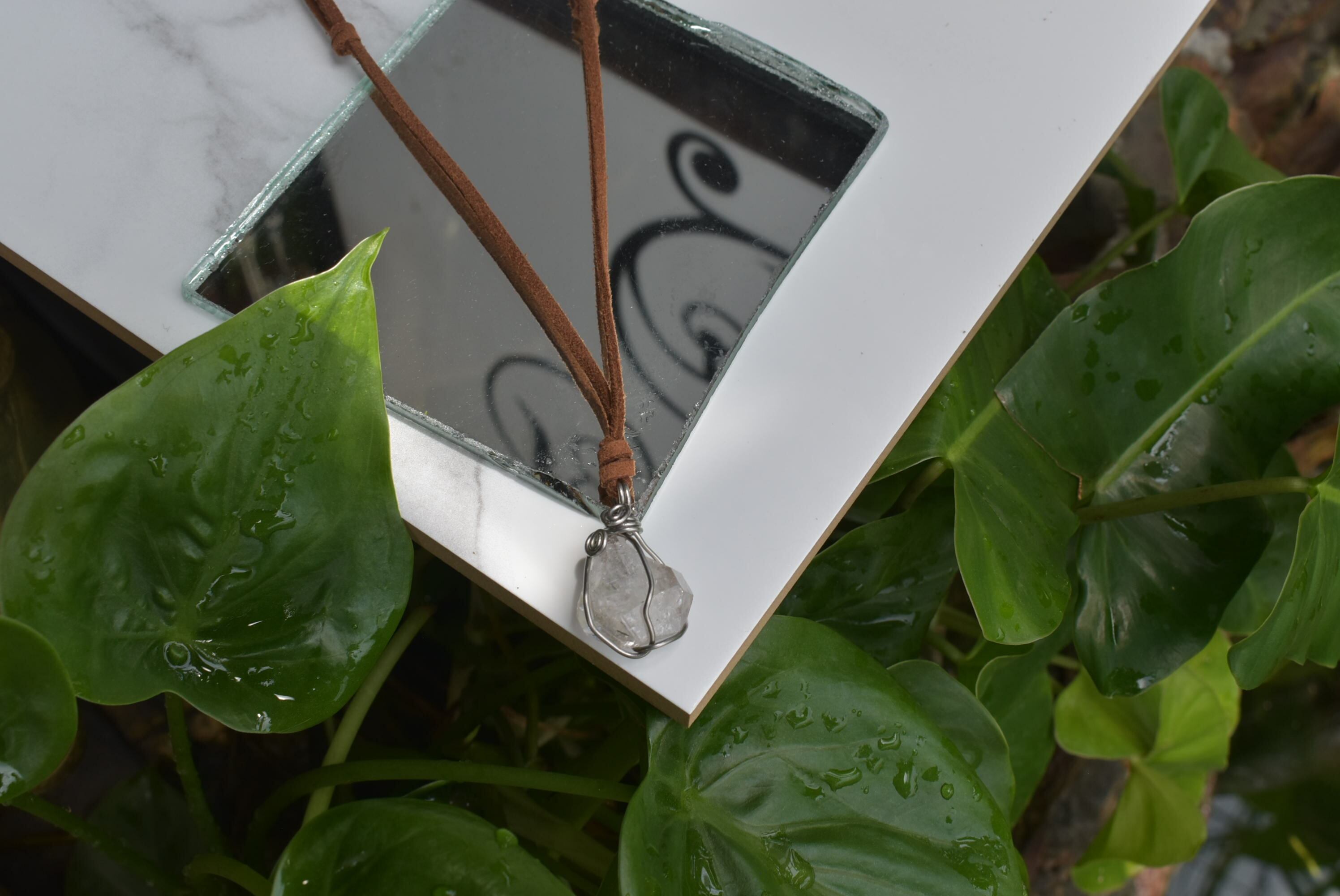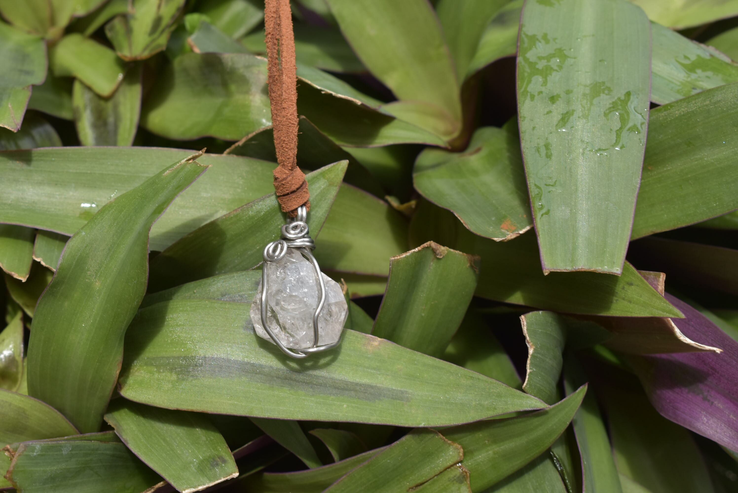虹入り★ハーキマーダイヤモンド原石 ワイヤーワークペンダントhk010