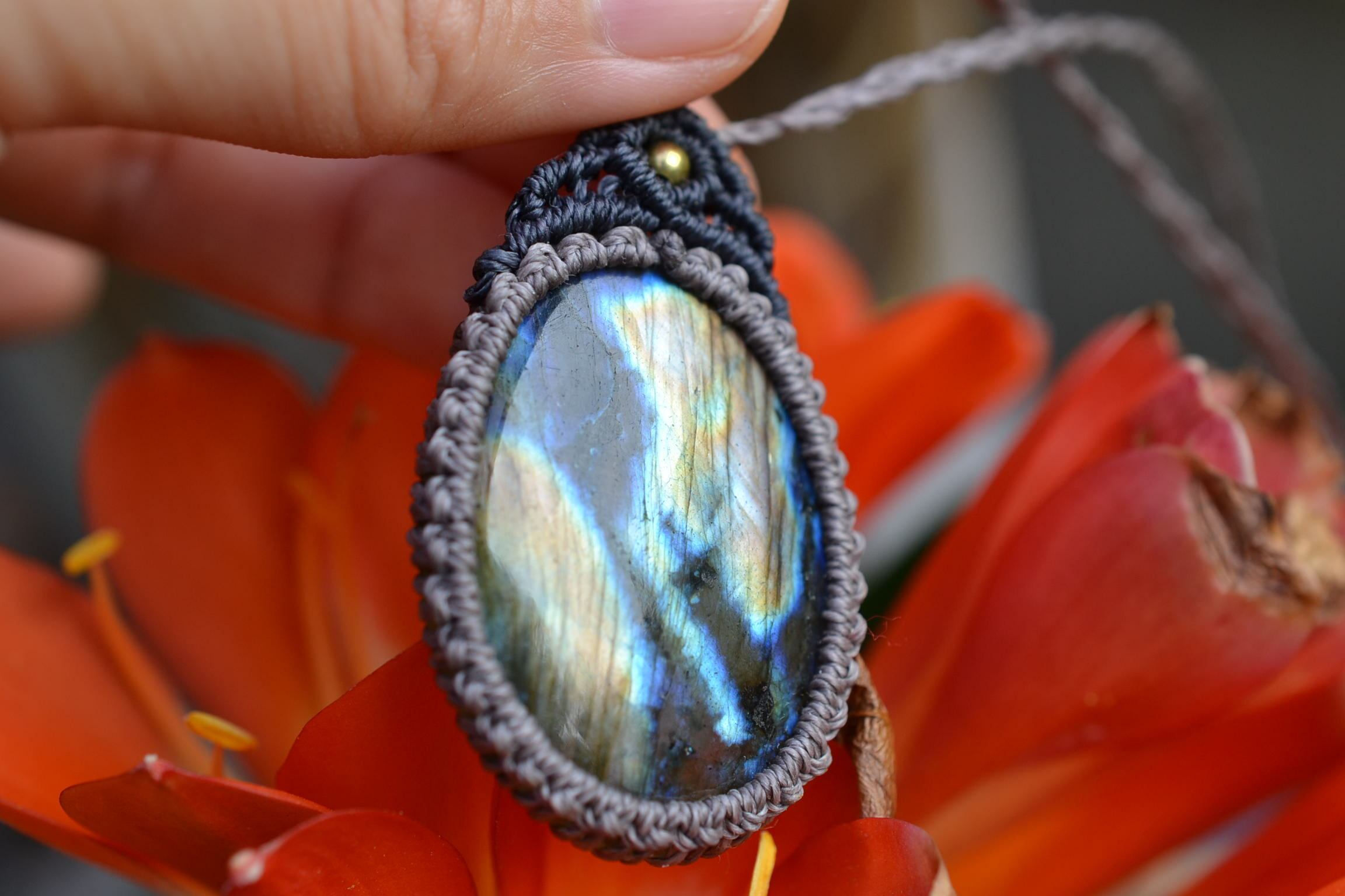 驚異的な穏やかさ★ラブラドライト マクラメペンダント
