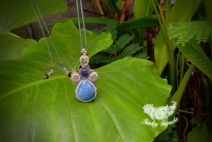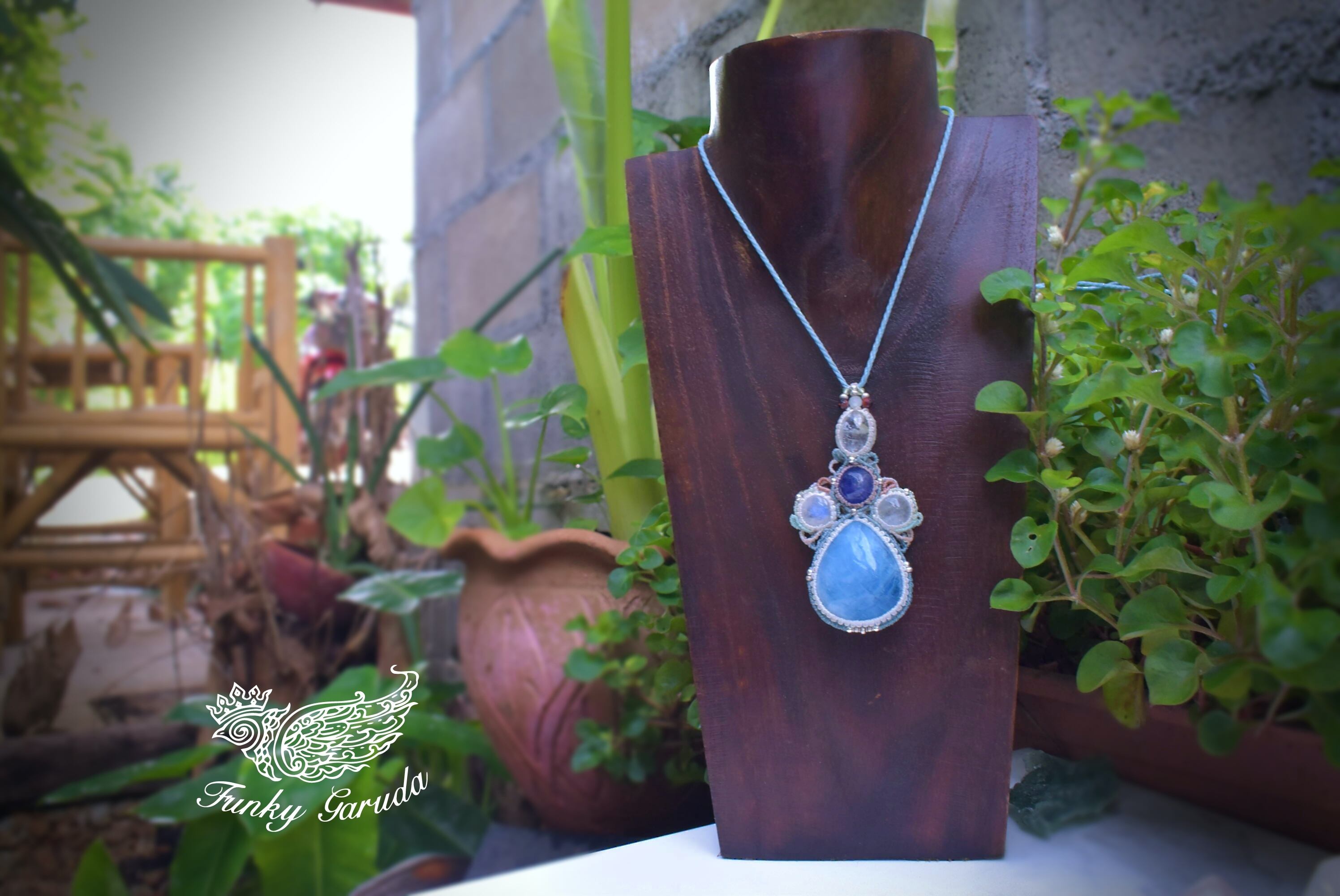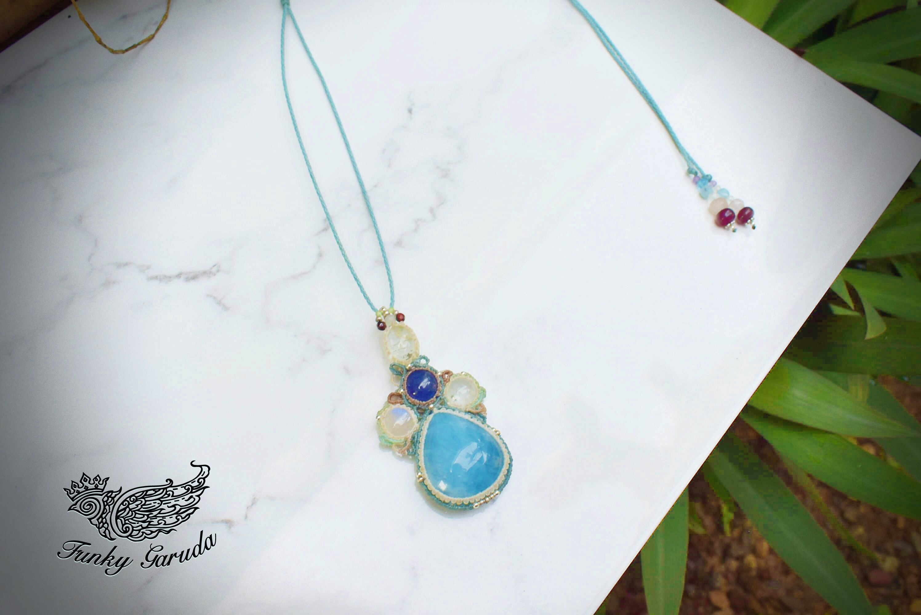 水とフラワーの世界★大粒アクアマリンとタンザナイト マクラメペンダントaqua012