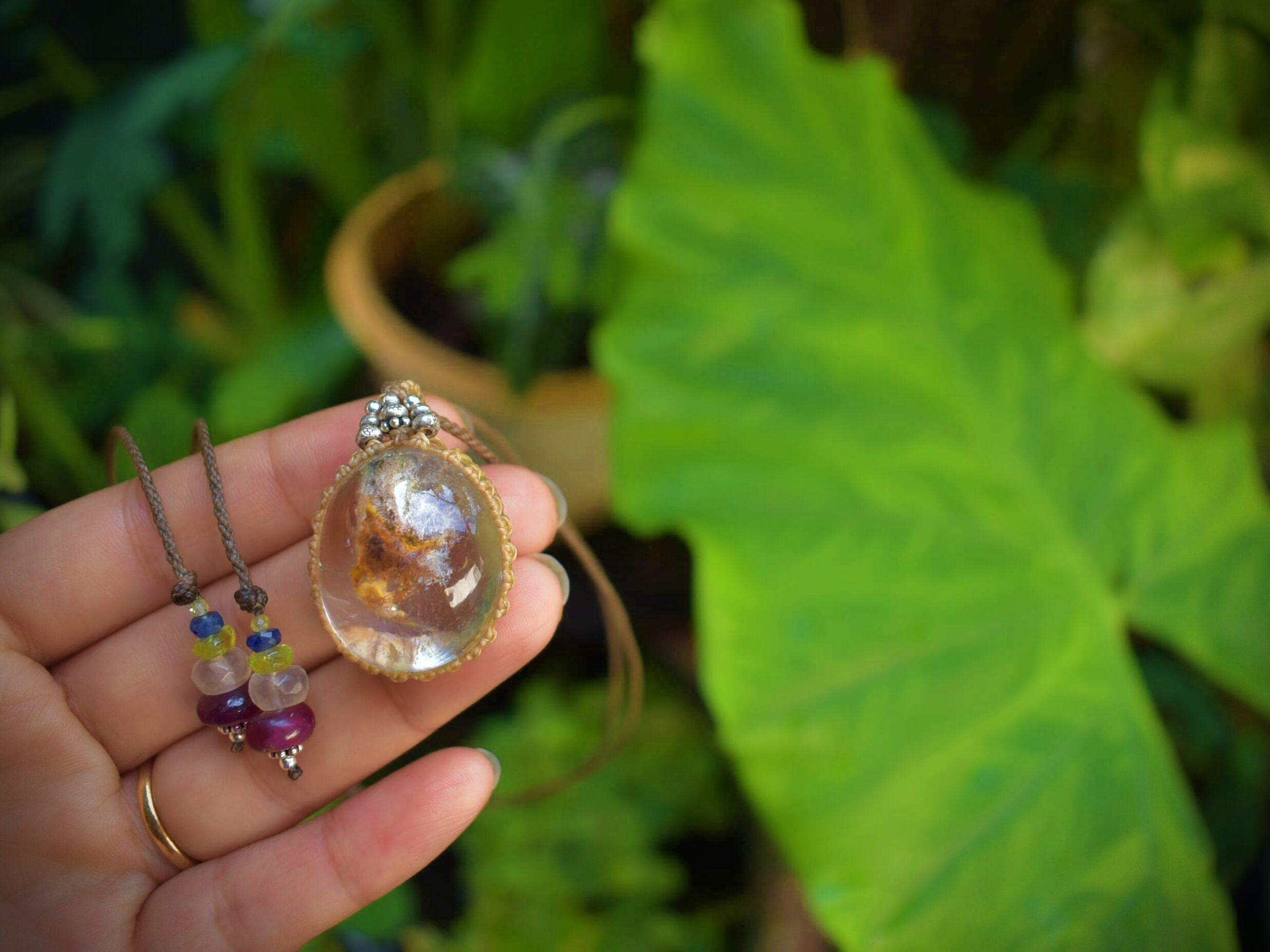 赤い内包物★ガーデンクォーツ マクラメペンダントgarm104
