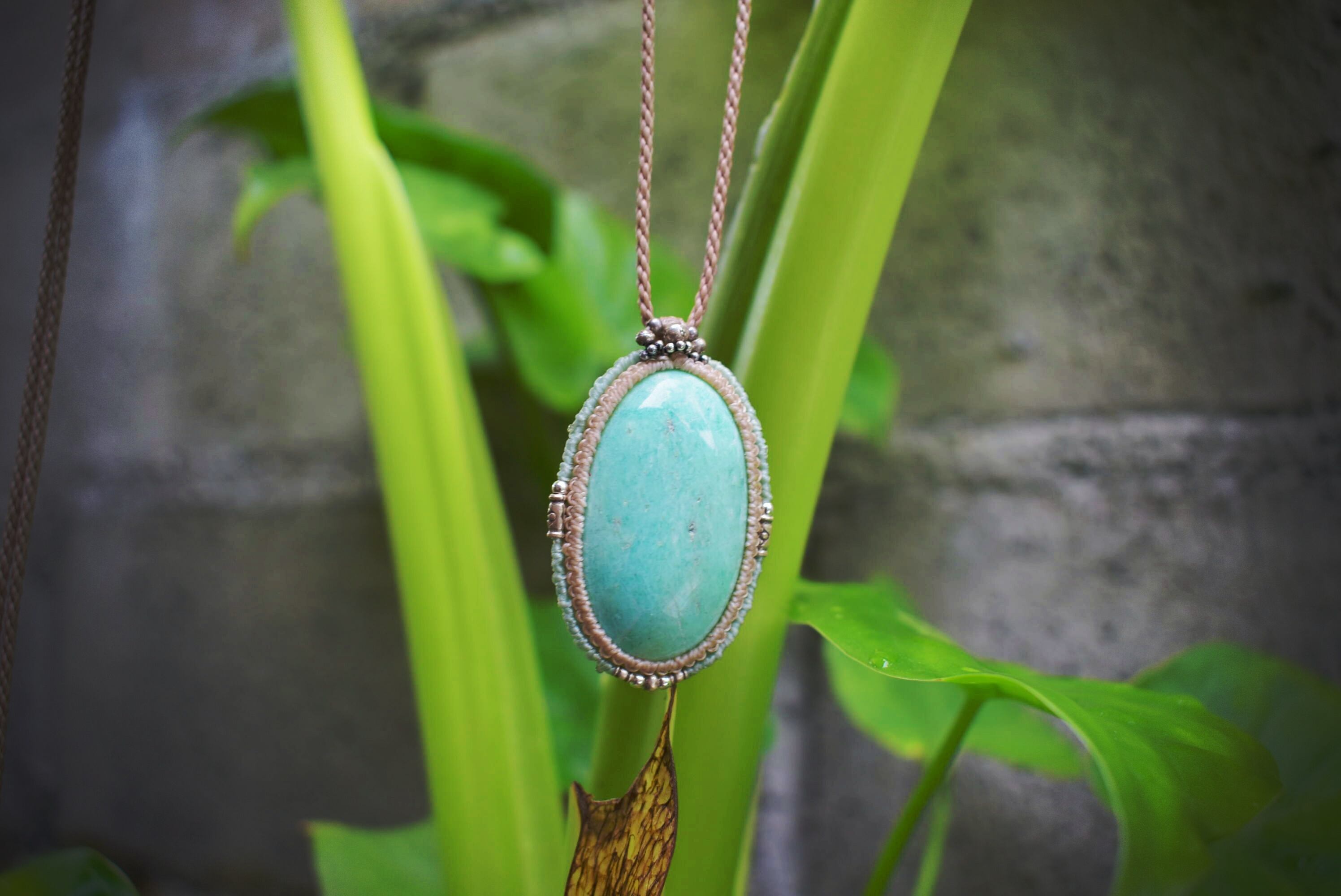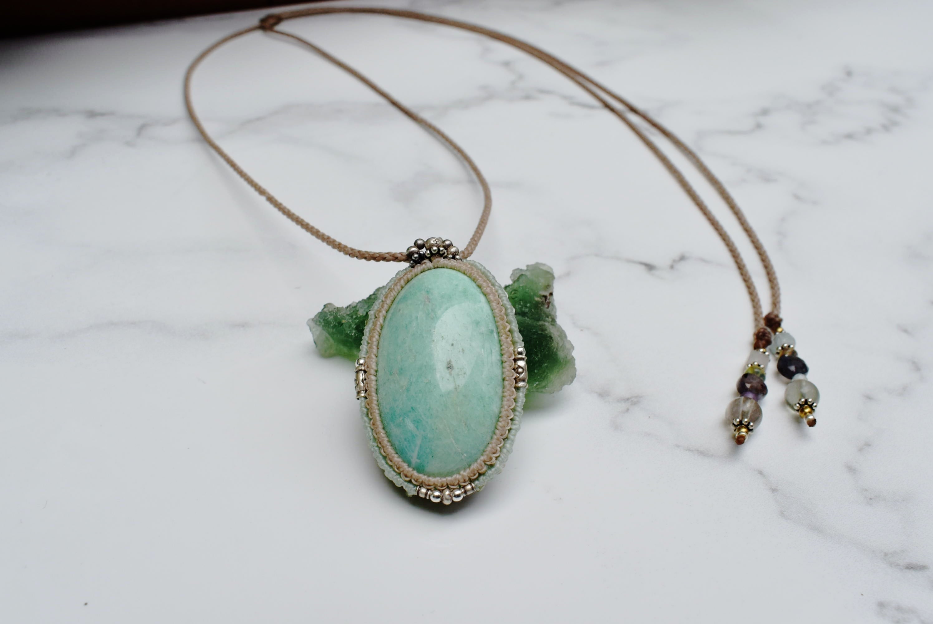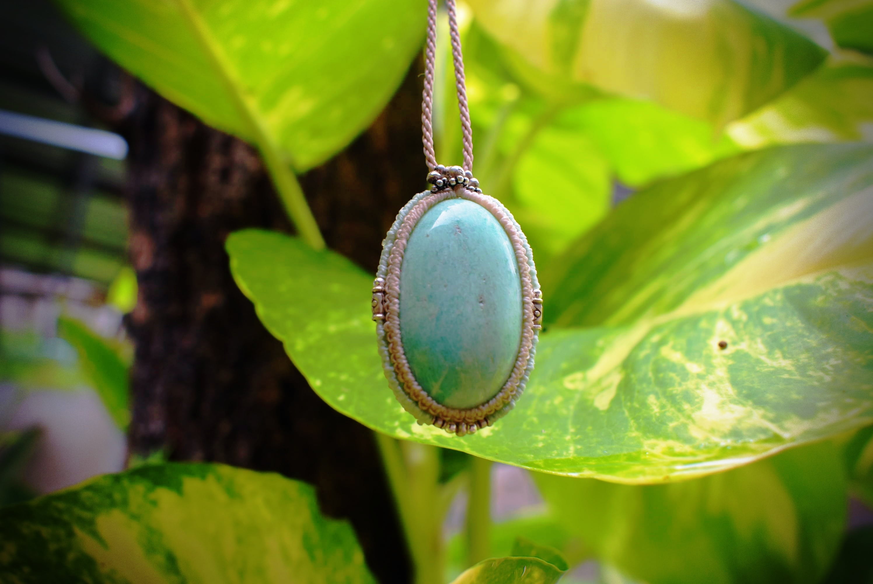 爽やかグリーン★クリソプレーズ マクラメペンダントcrs003