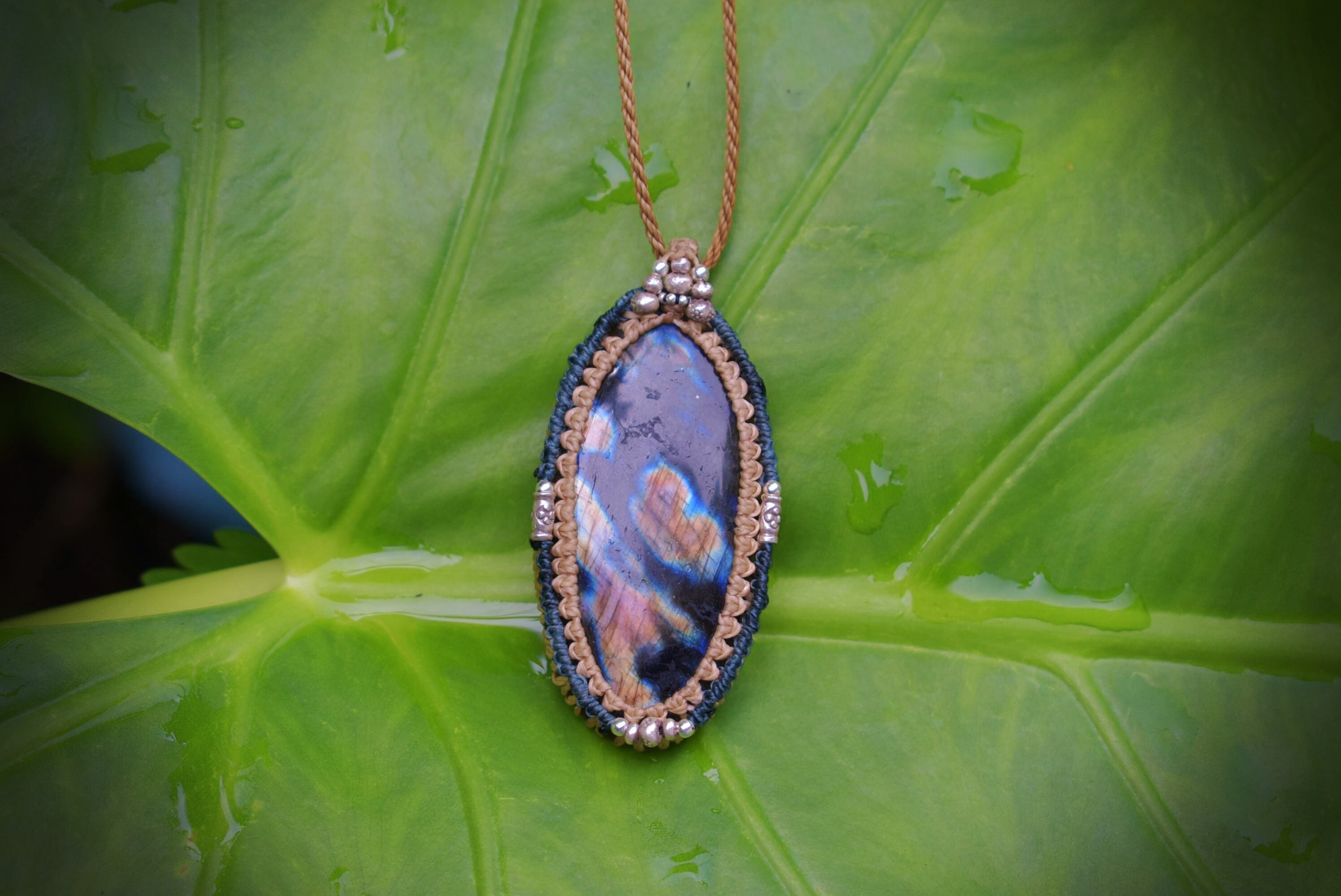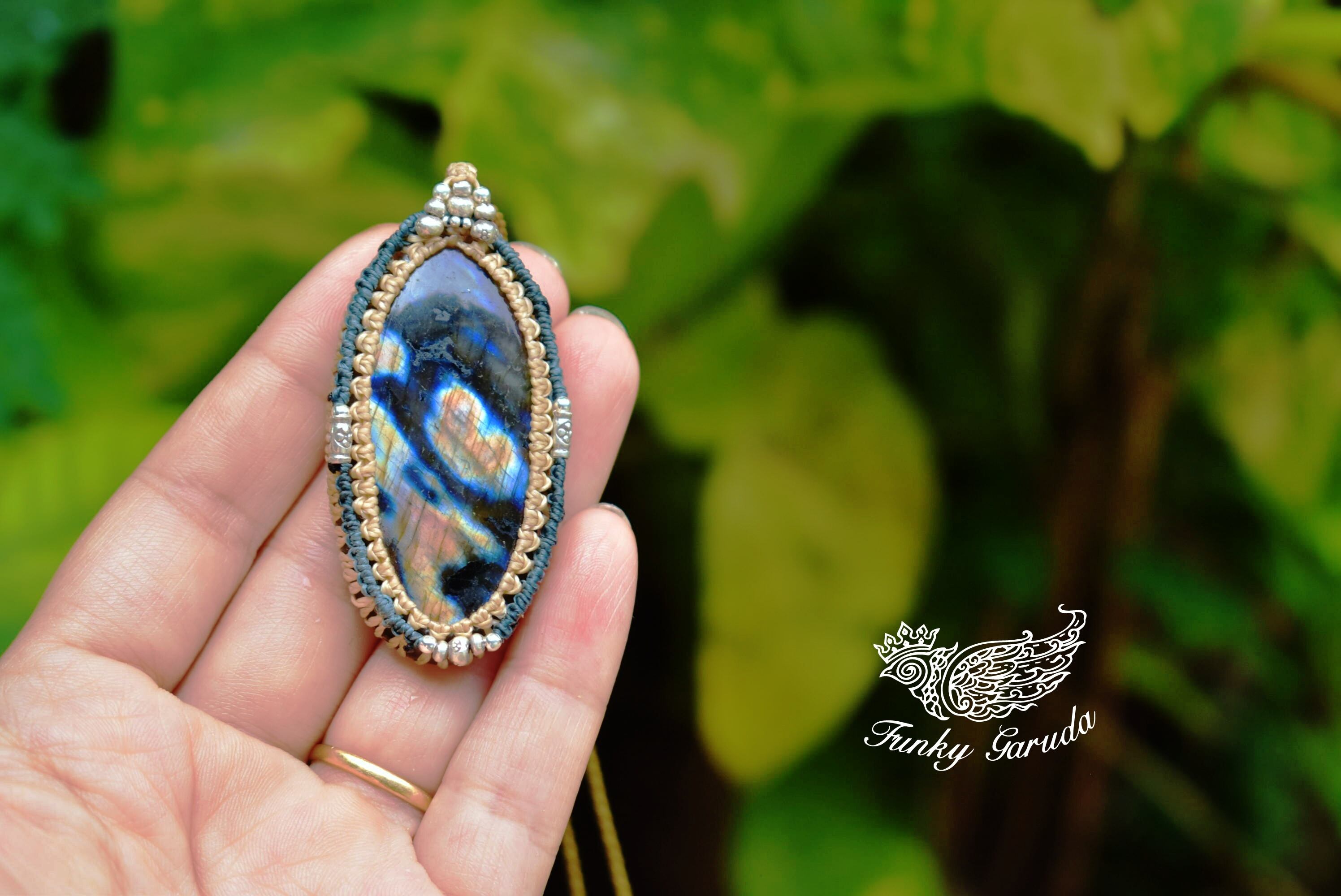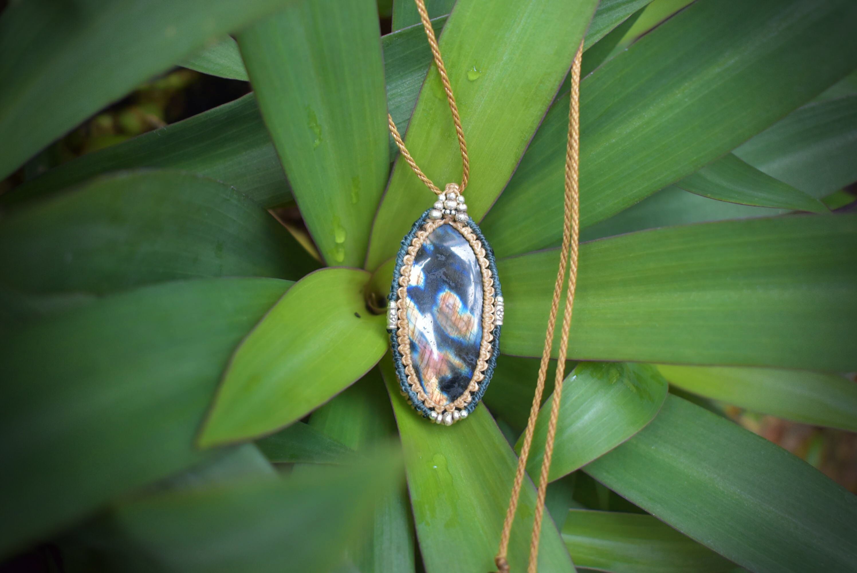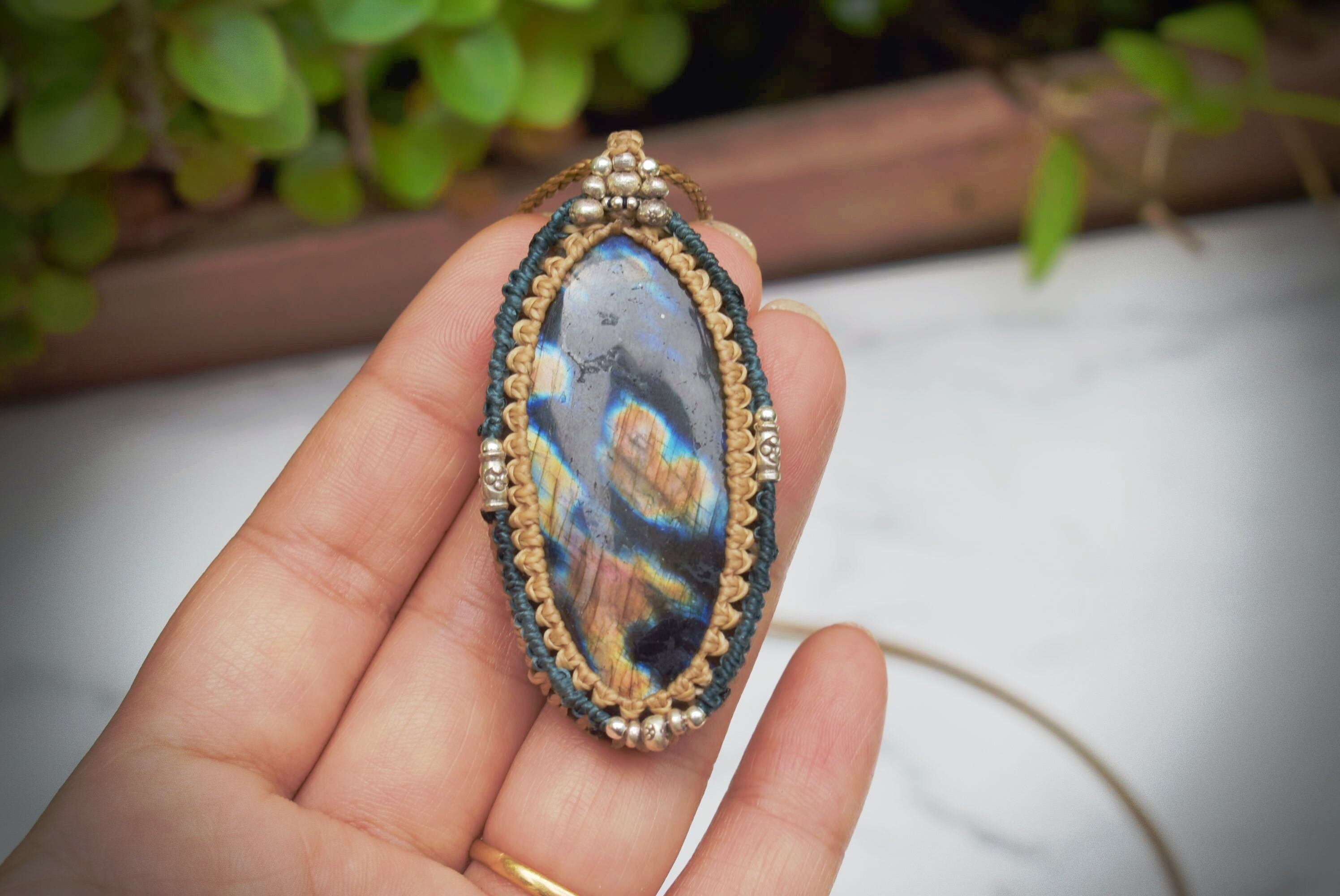宇宙発光★ラブラドライトマクラメペンダント labb030