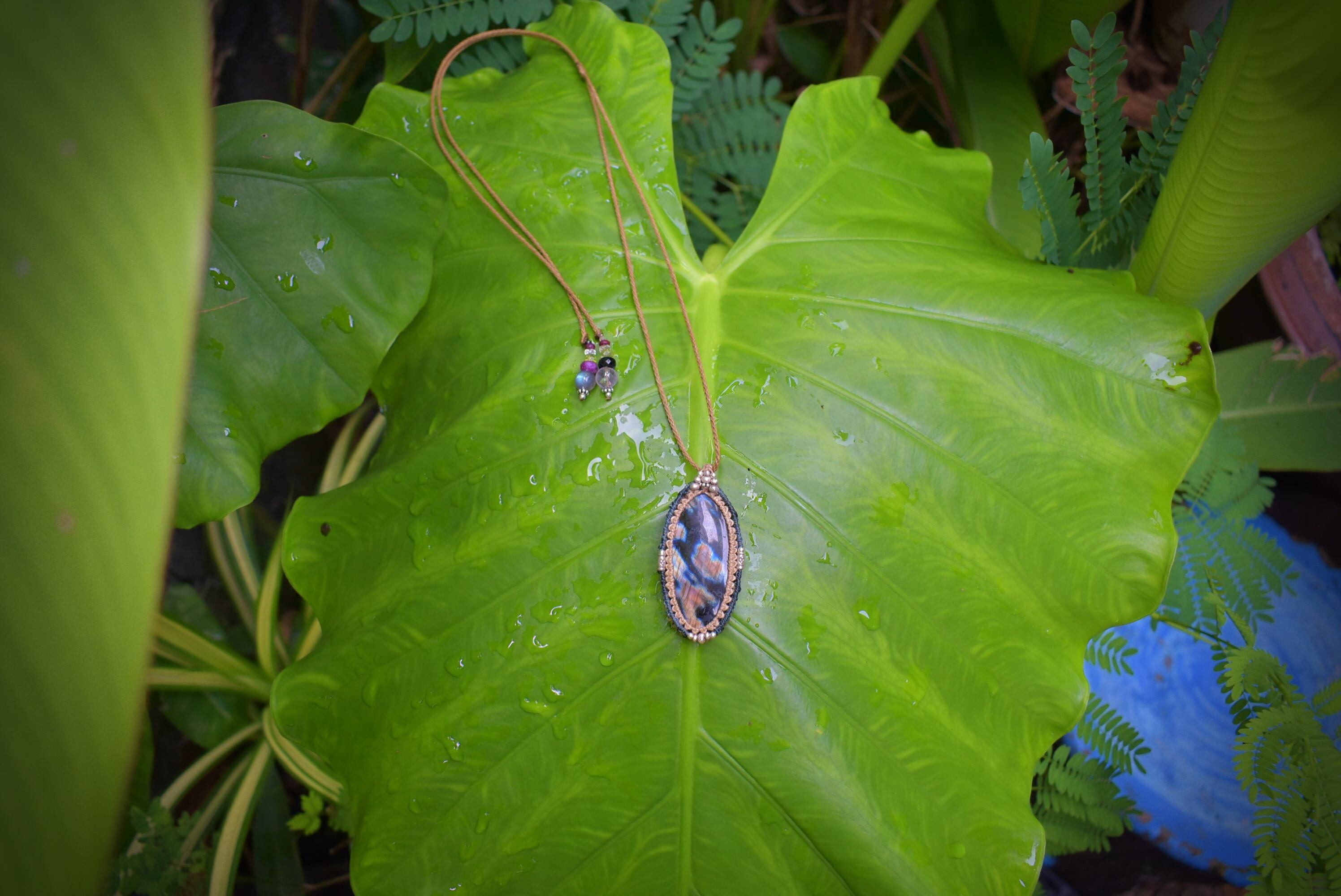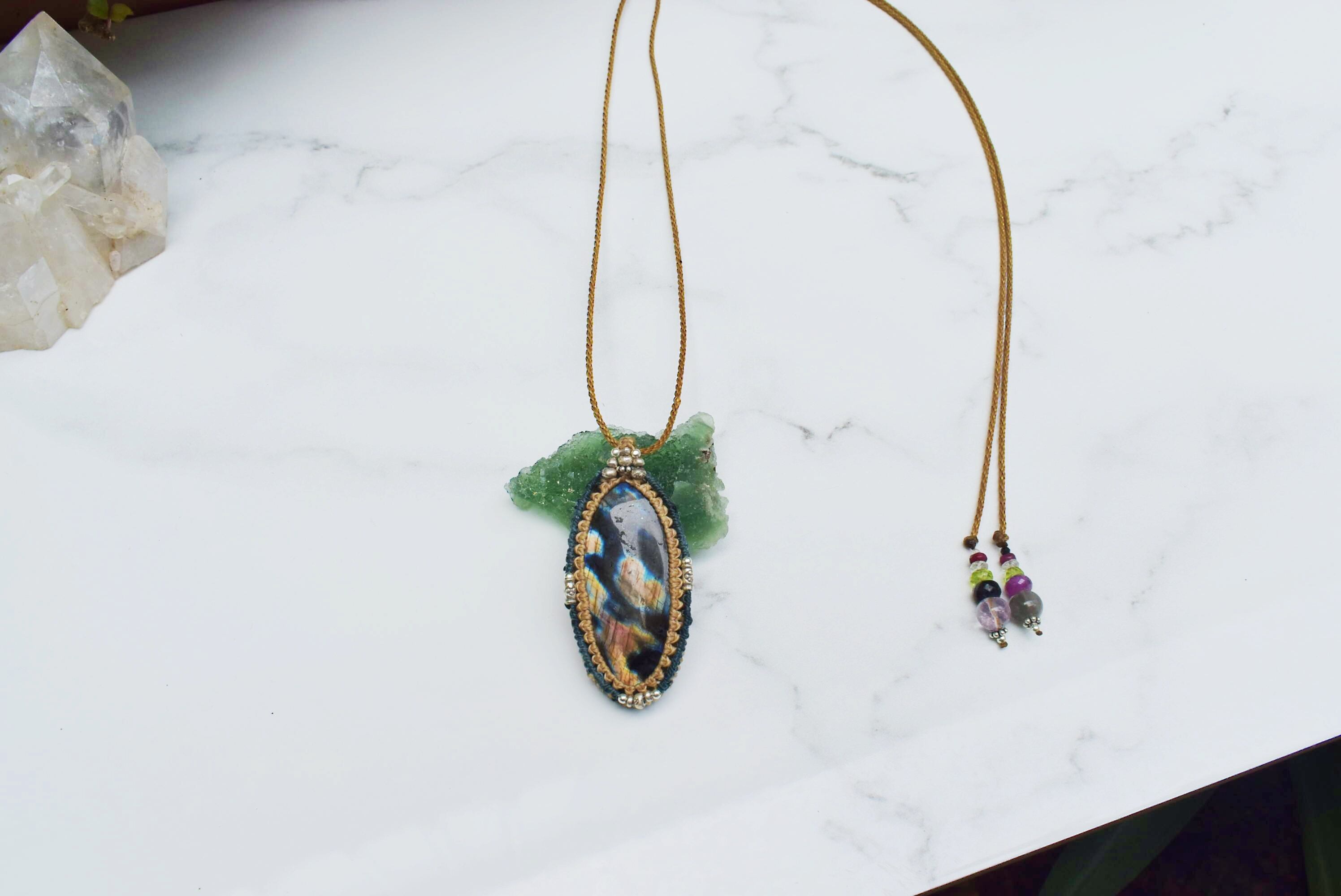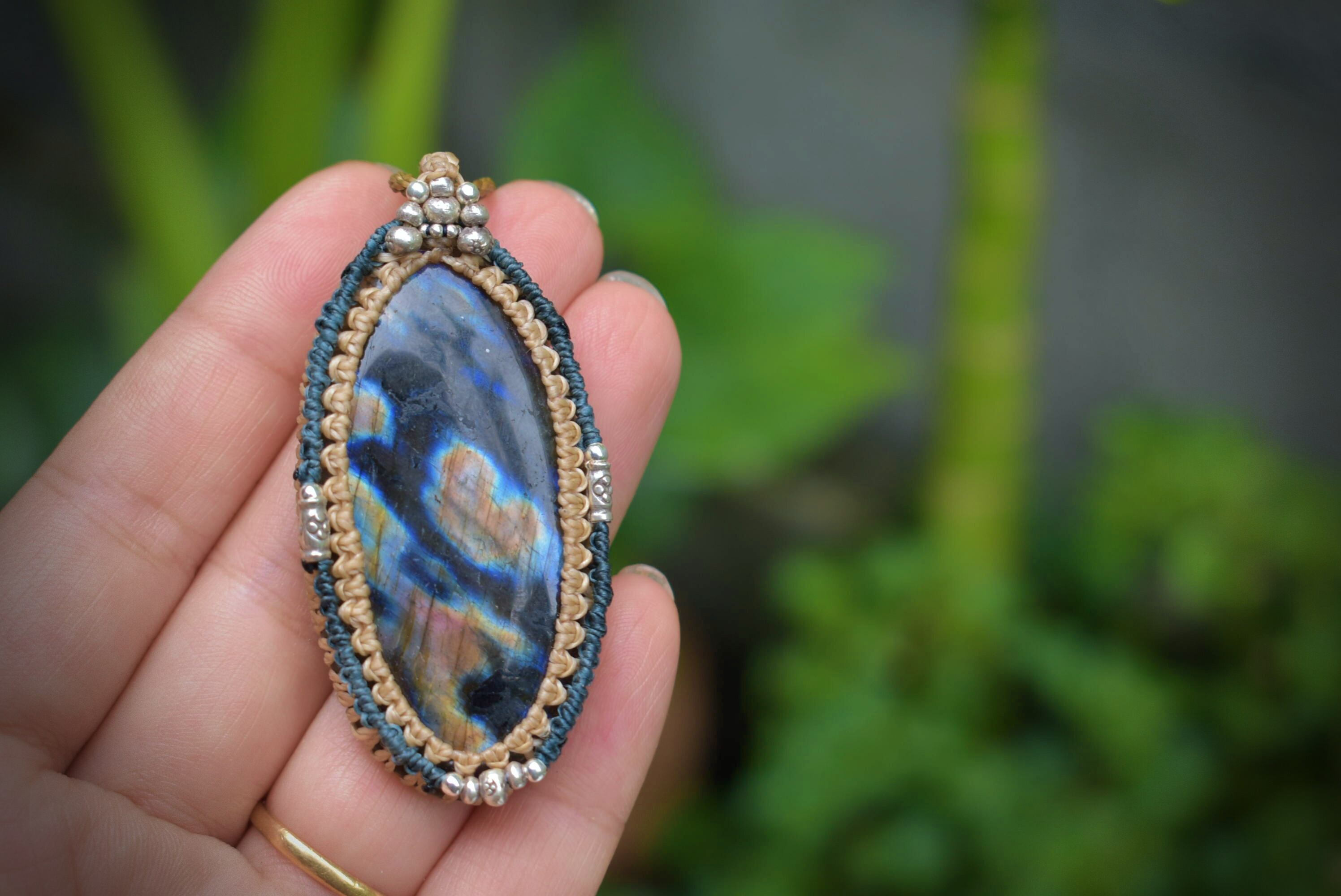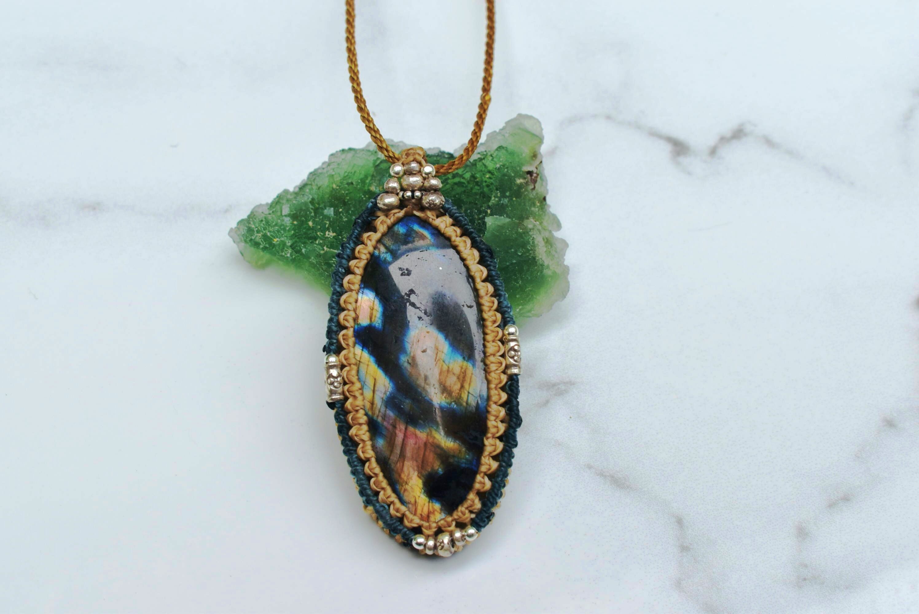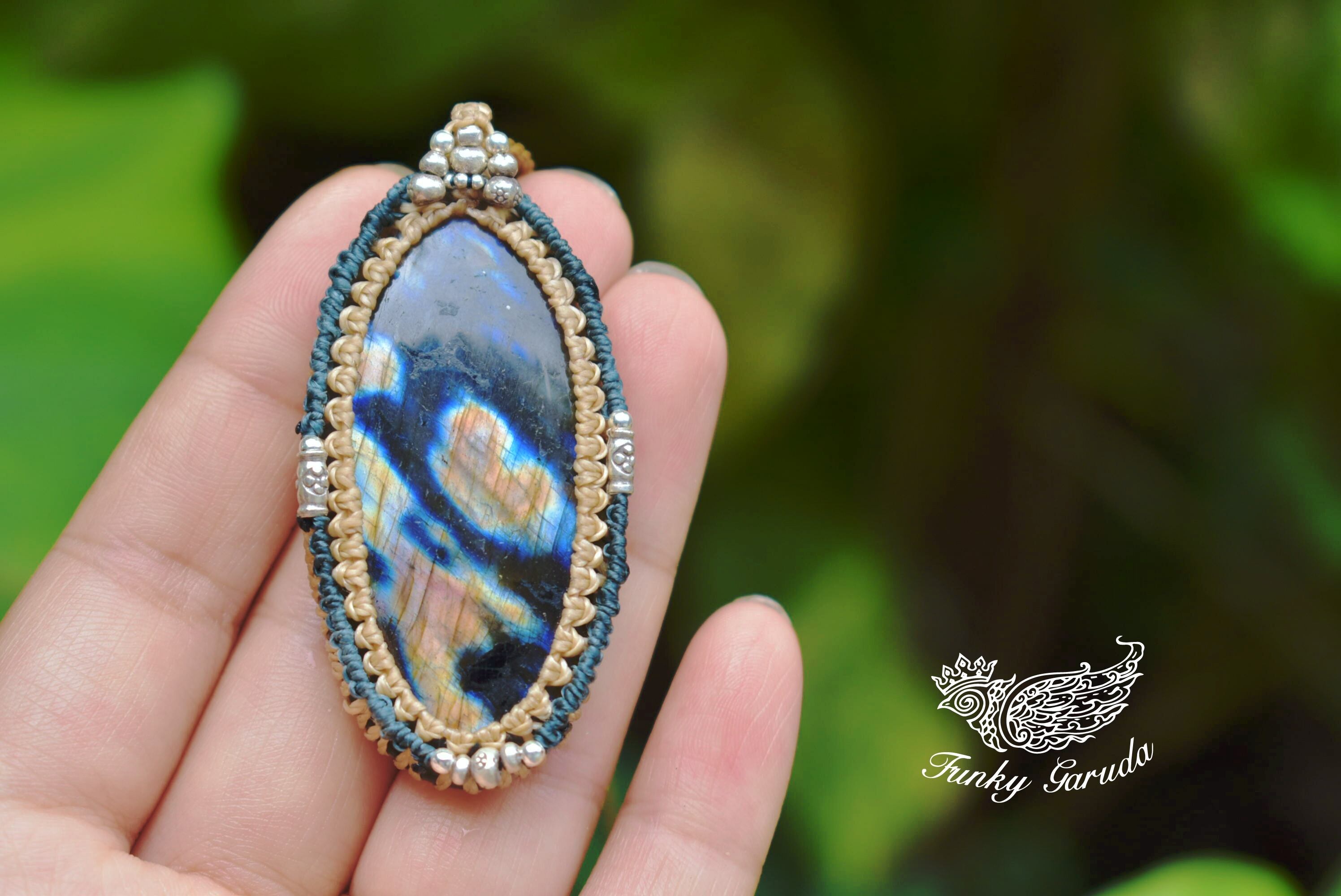 宇宙発光★ラブラドライトマクラメペンダント labb030
