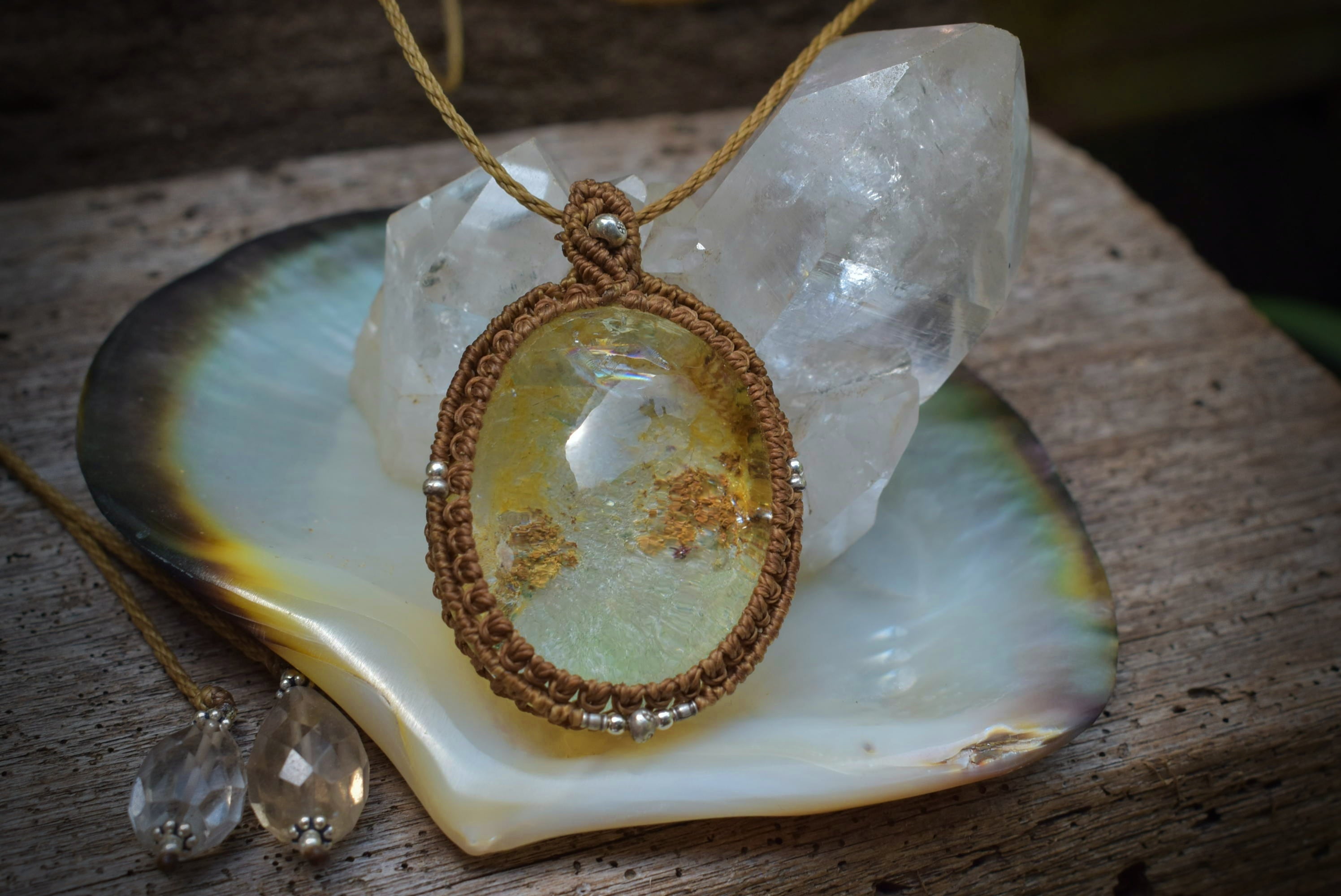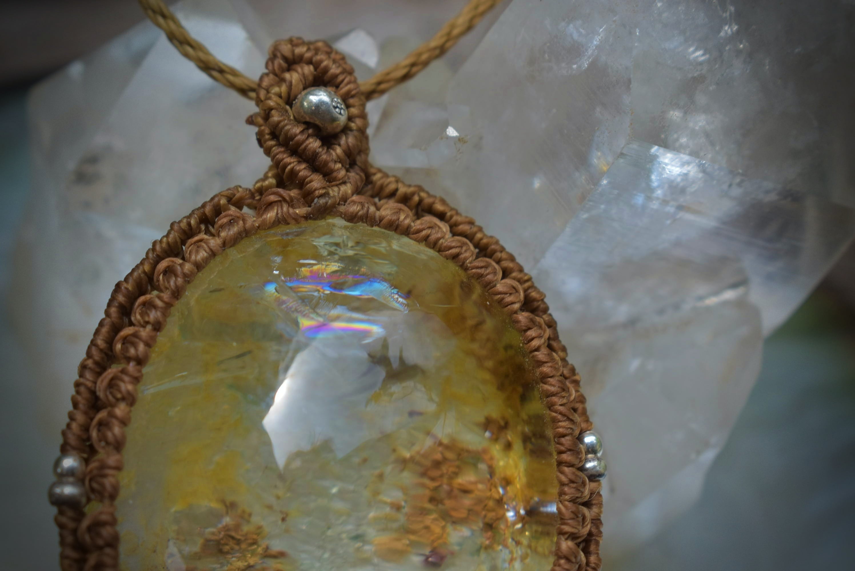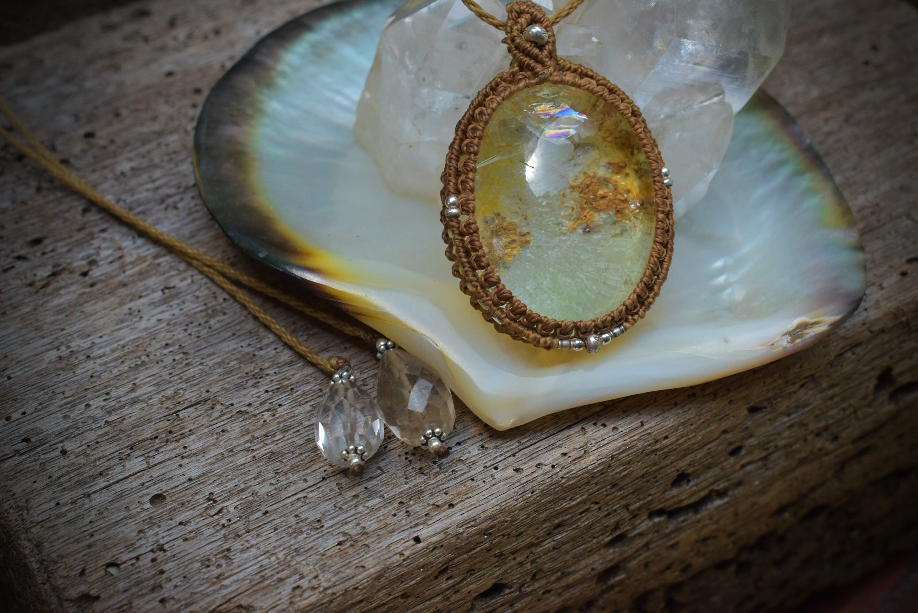 虹入り★地図模様水晶★ガーデンクォーツ マクラメペンダントgarm106