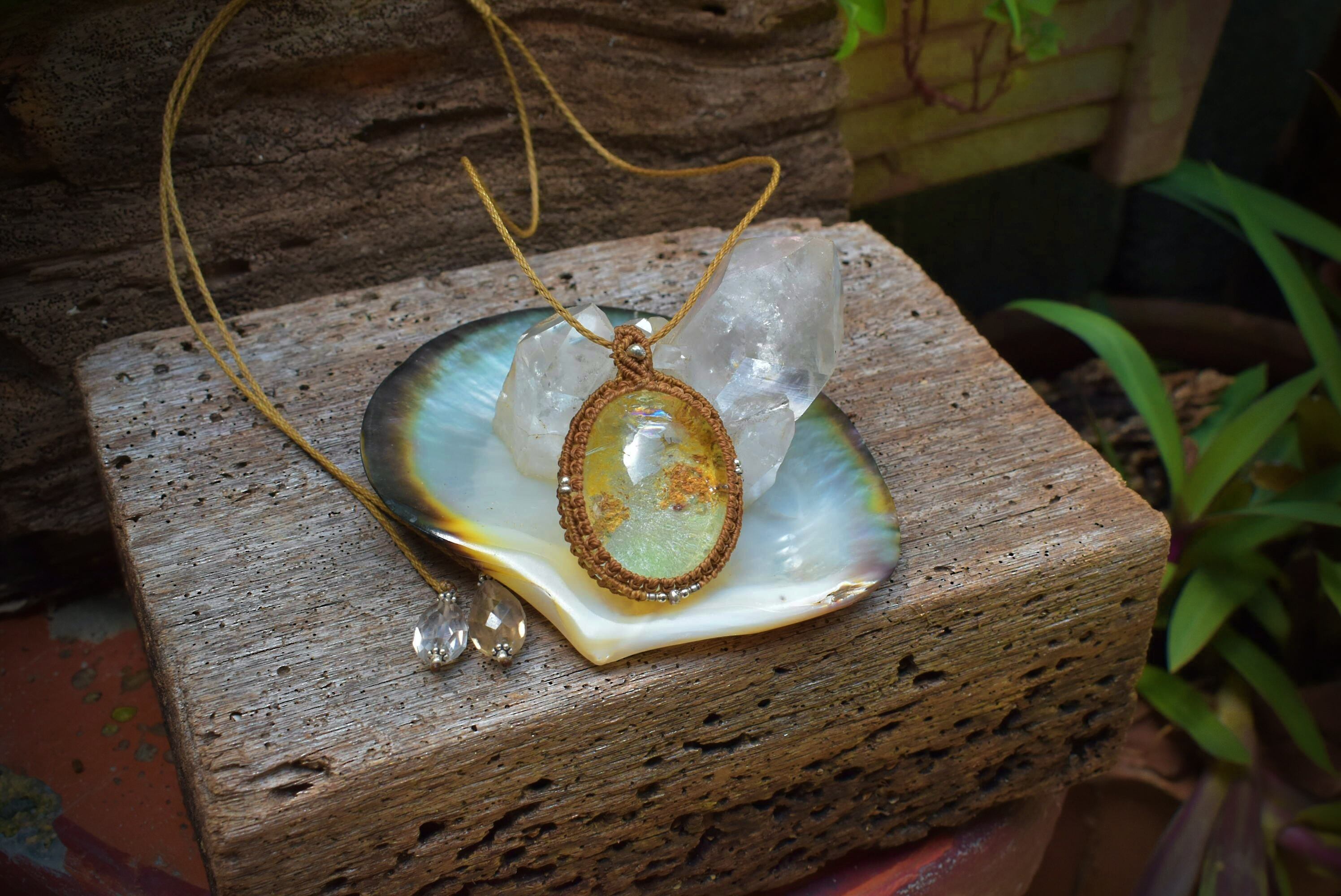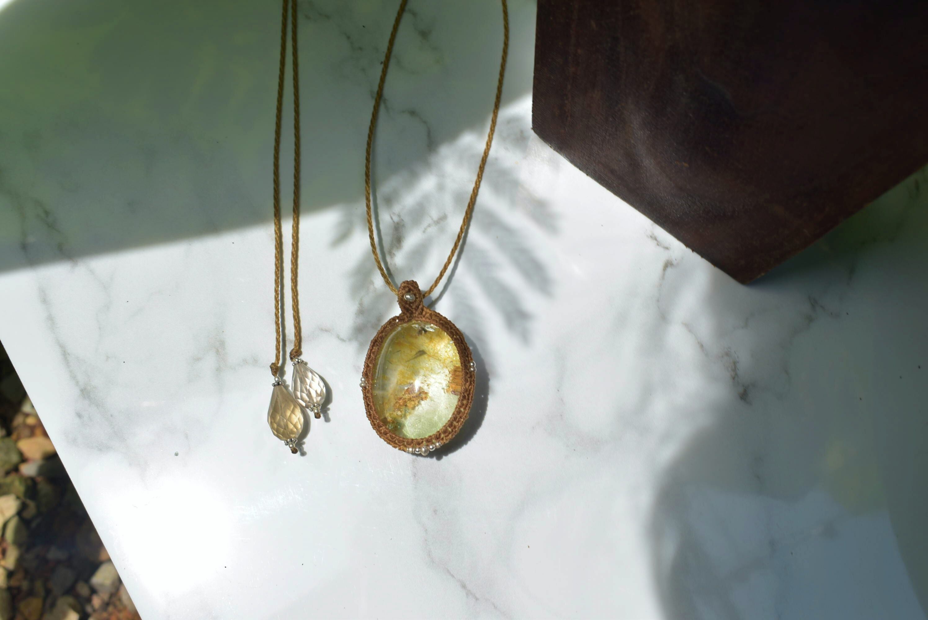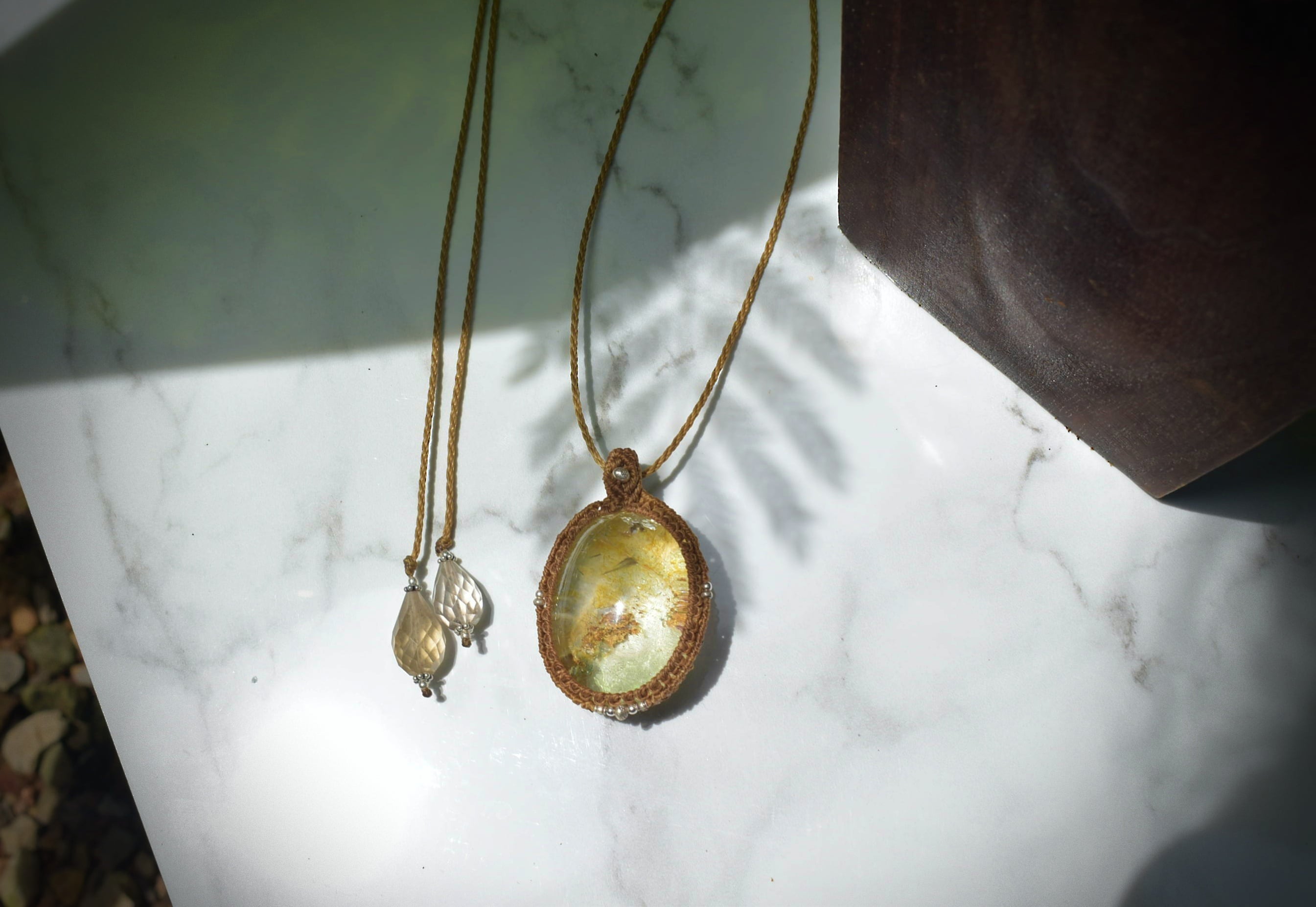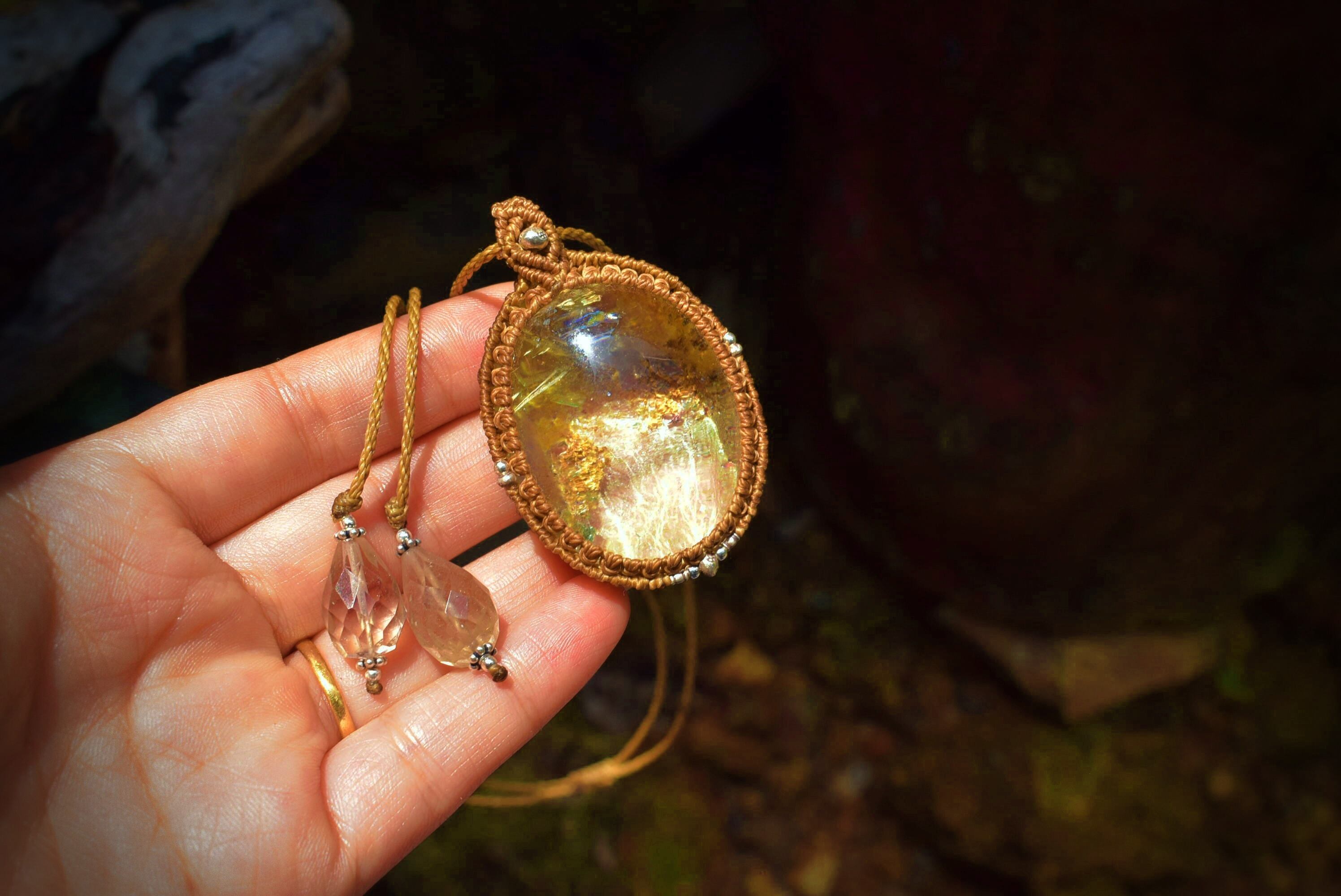 虹入り★地図模様水晶★ガーデンクォーツ マクラメペンダントgarm106
