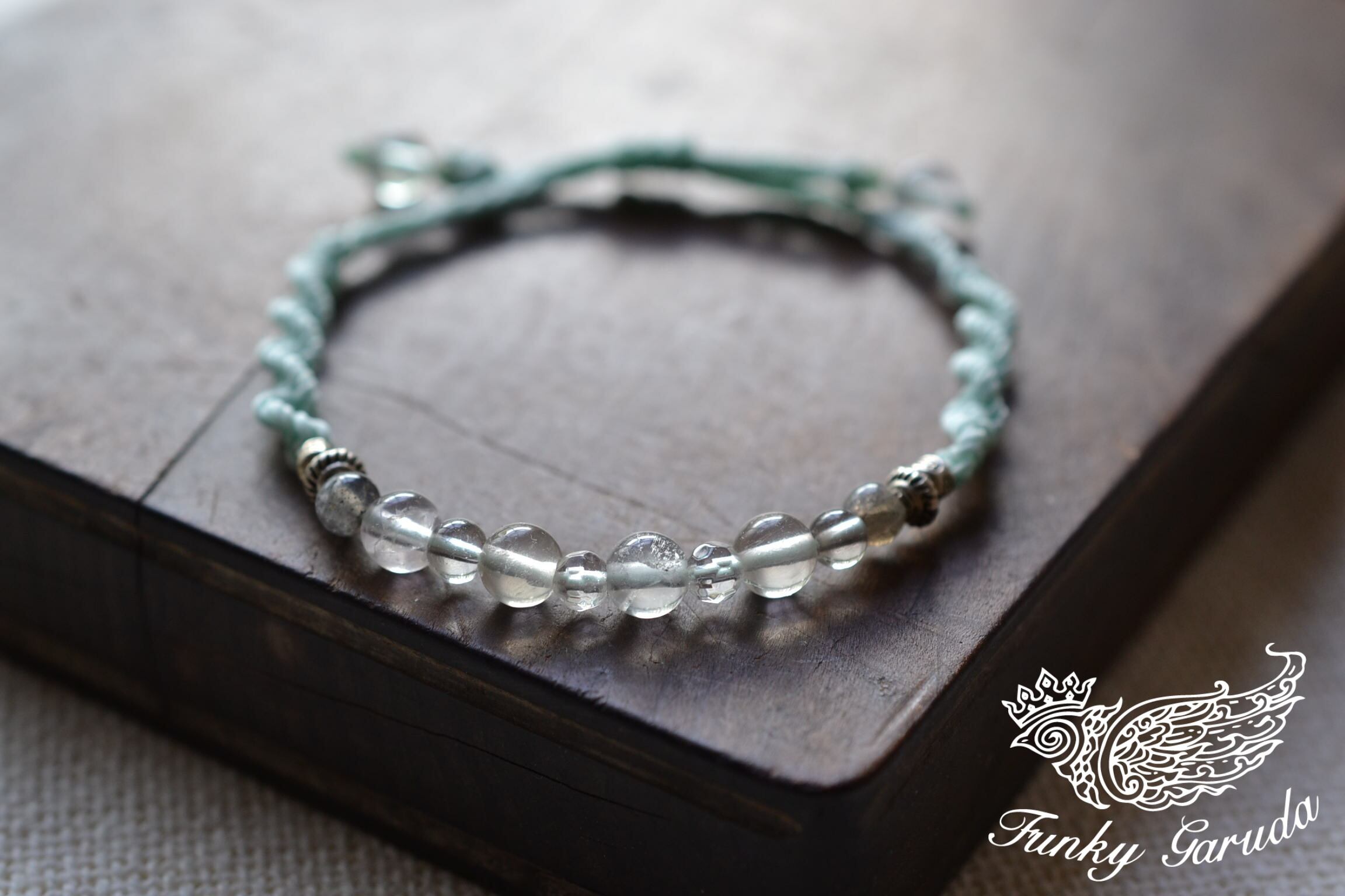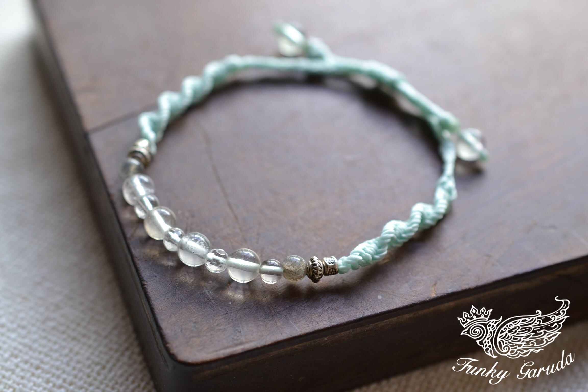 天然石アクアマリン、ラブラドライト、クリアクォーツ..ビーズを組み合わせたブレスレットを制作しました。