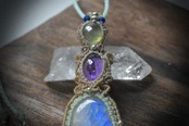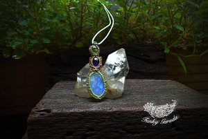 ブルーシラー輝くムーンストーンの輝きと石たちの眩いペンダントがしがりました。
