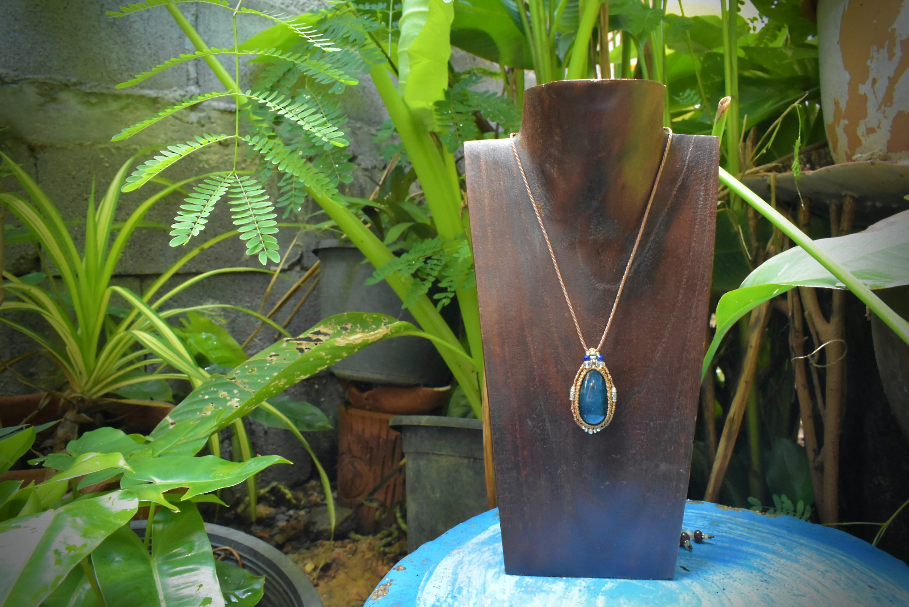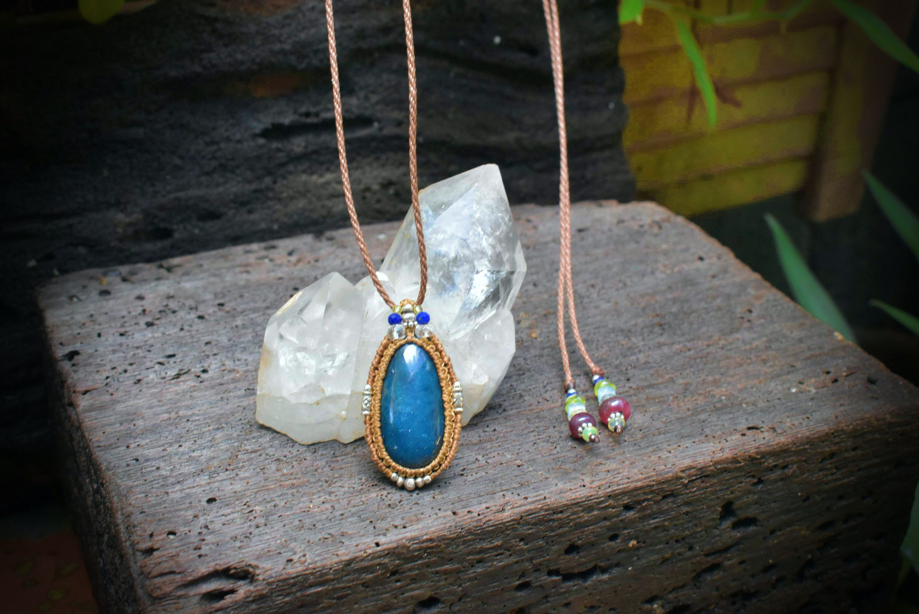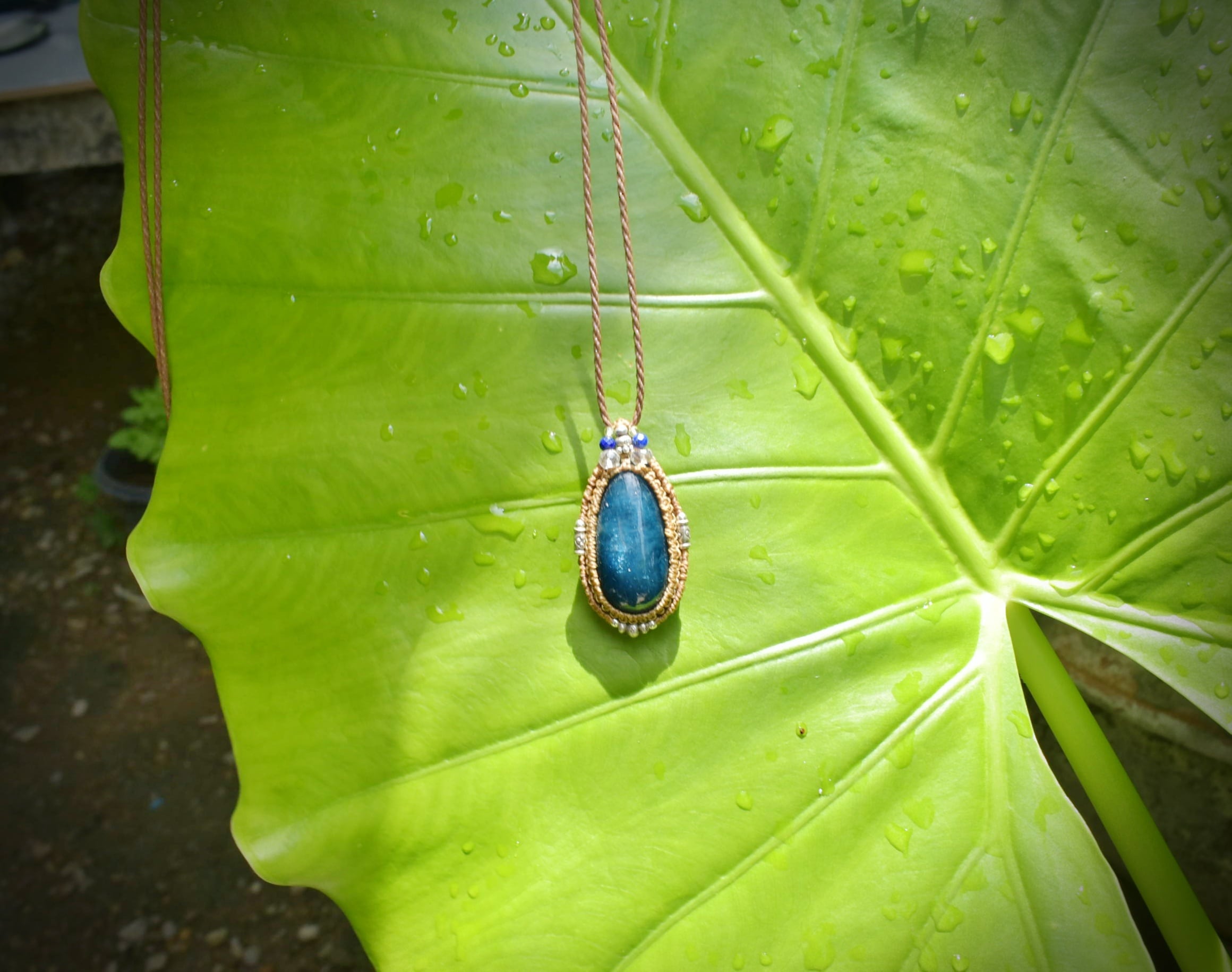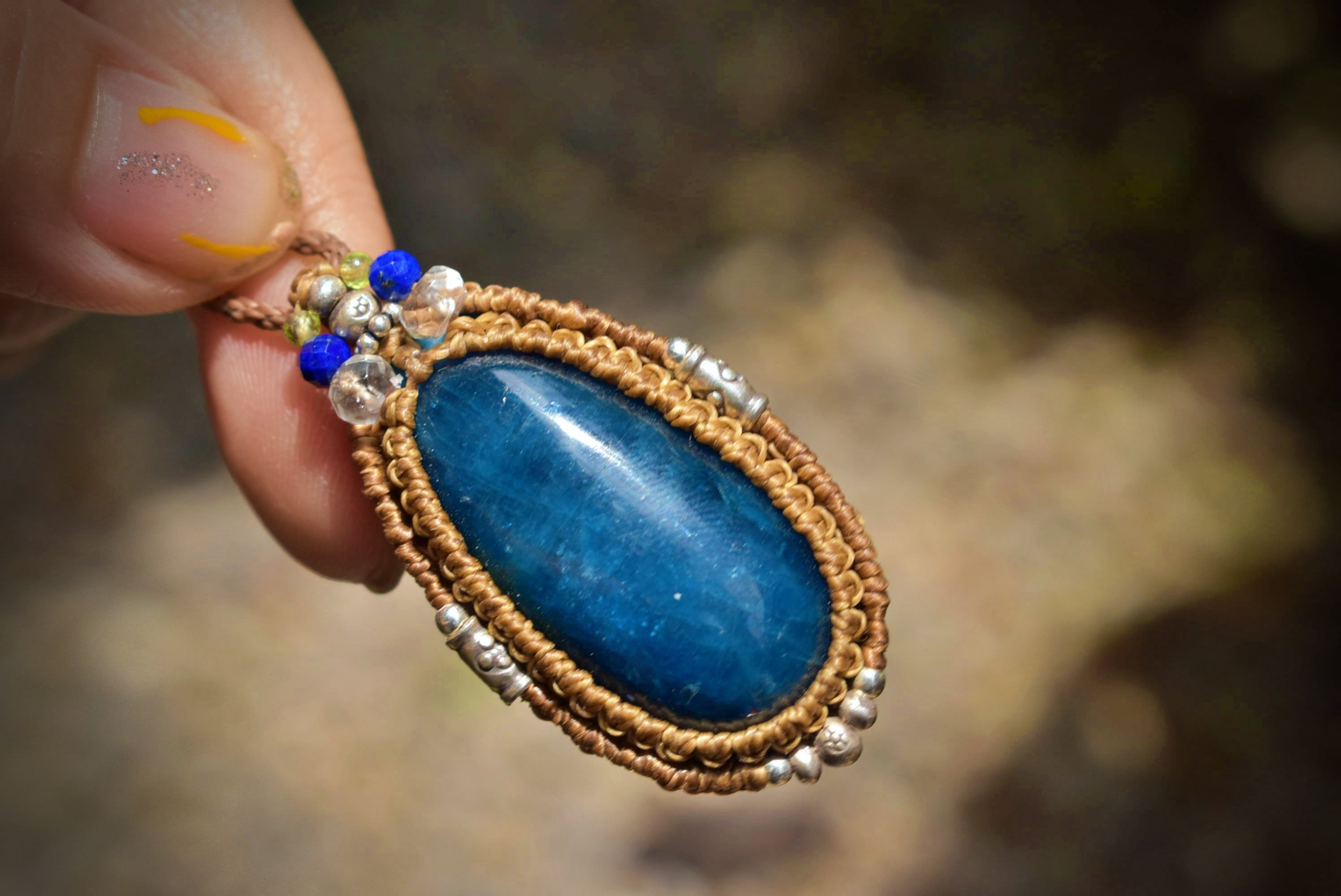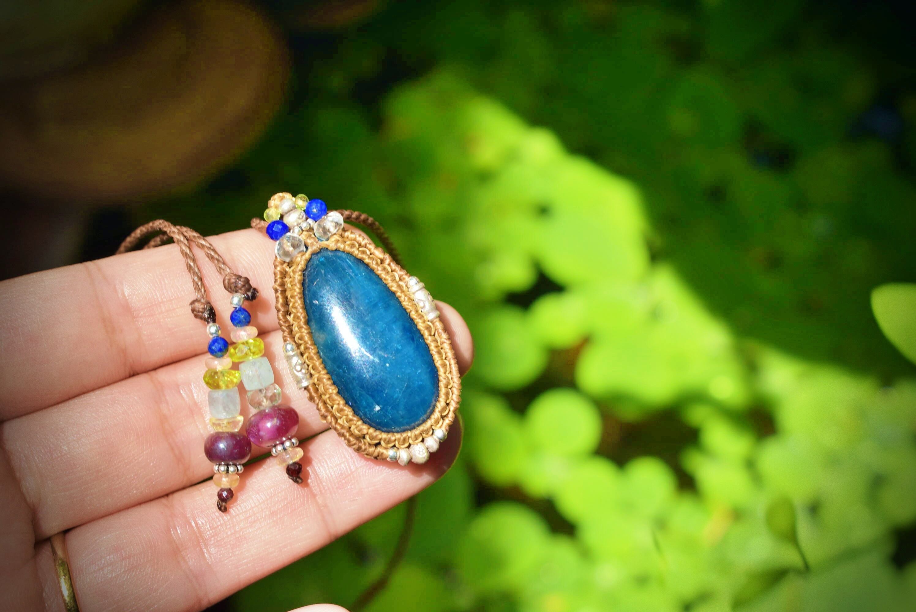 キャッツアイシラー★ブルーアパタイト マクラメペンダントapa004