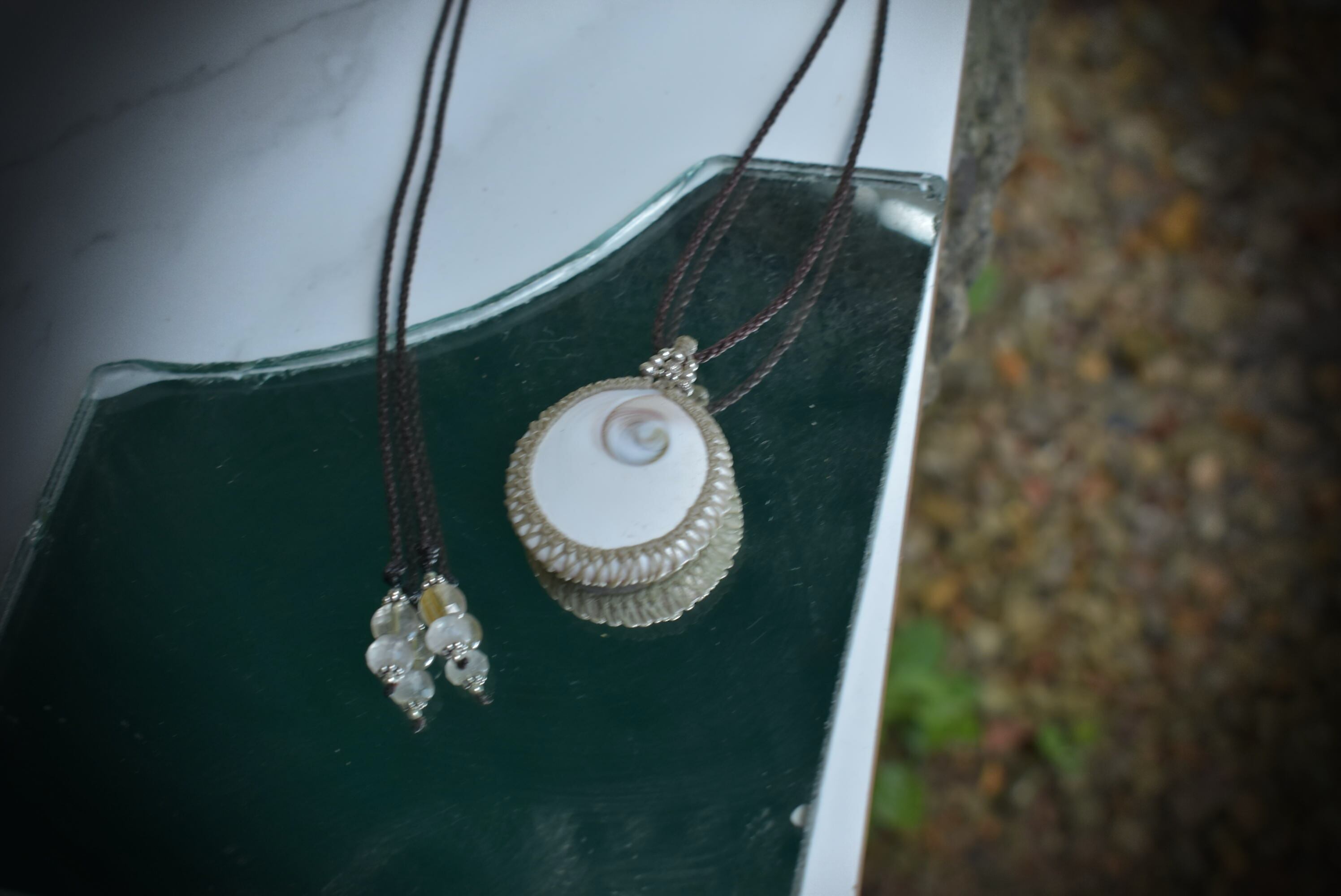 神秘的な美しい渦巻き模様が特徴的な貝のビーズです。
