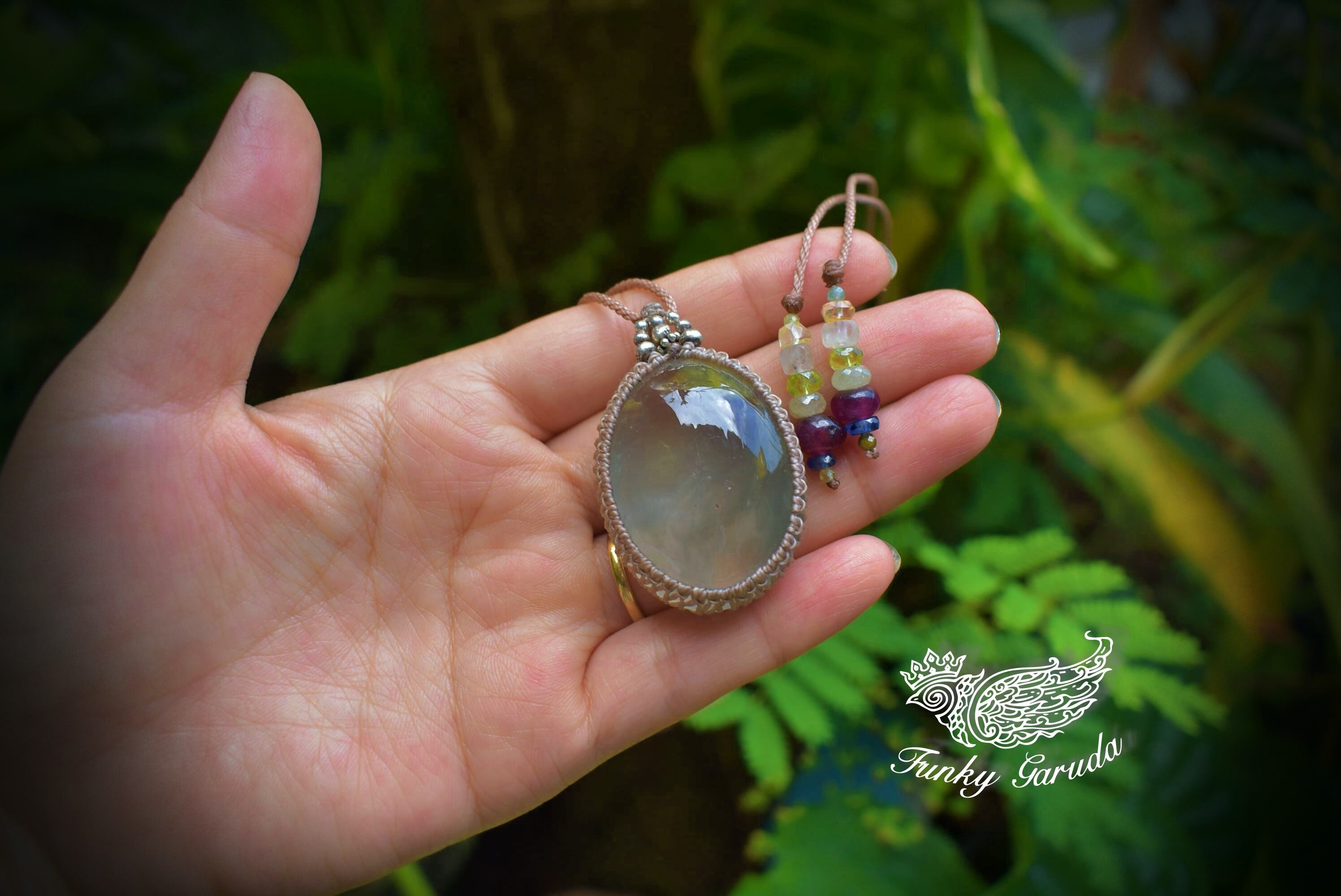 ほんのり虹入り★ブルースモーキーマクラメペンダント garm117