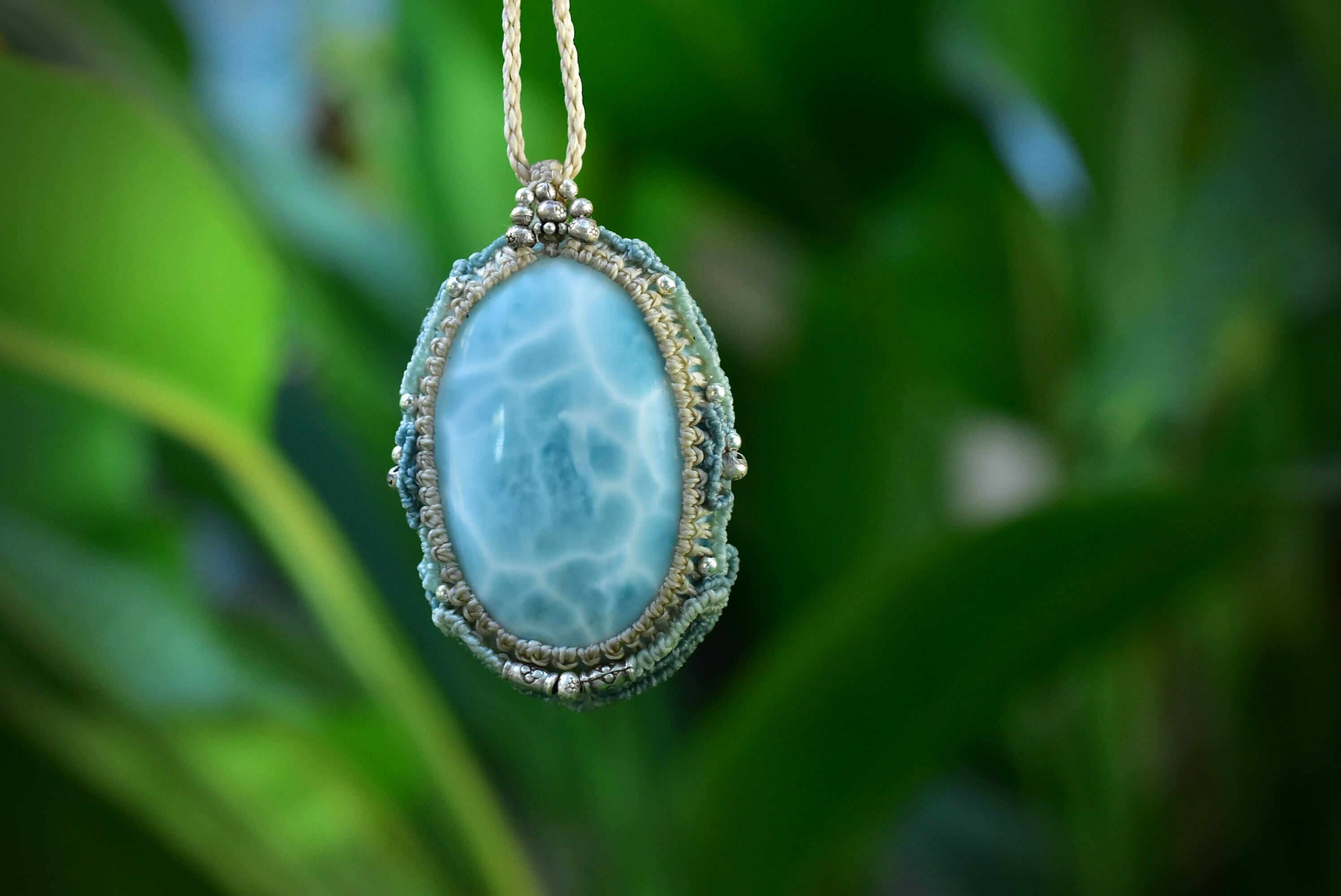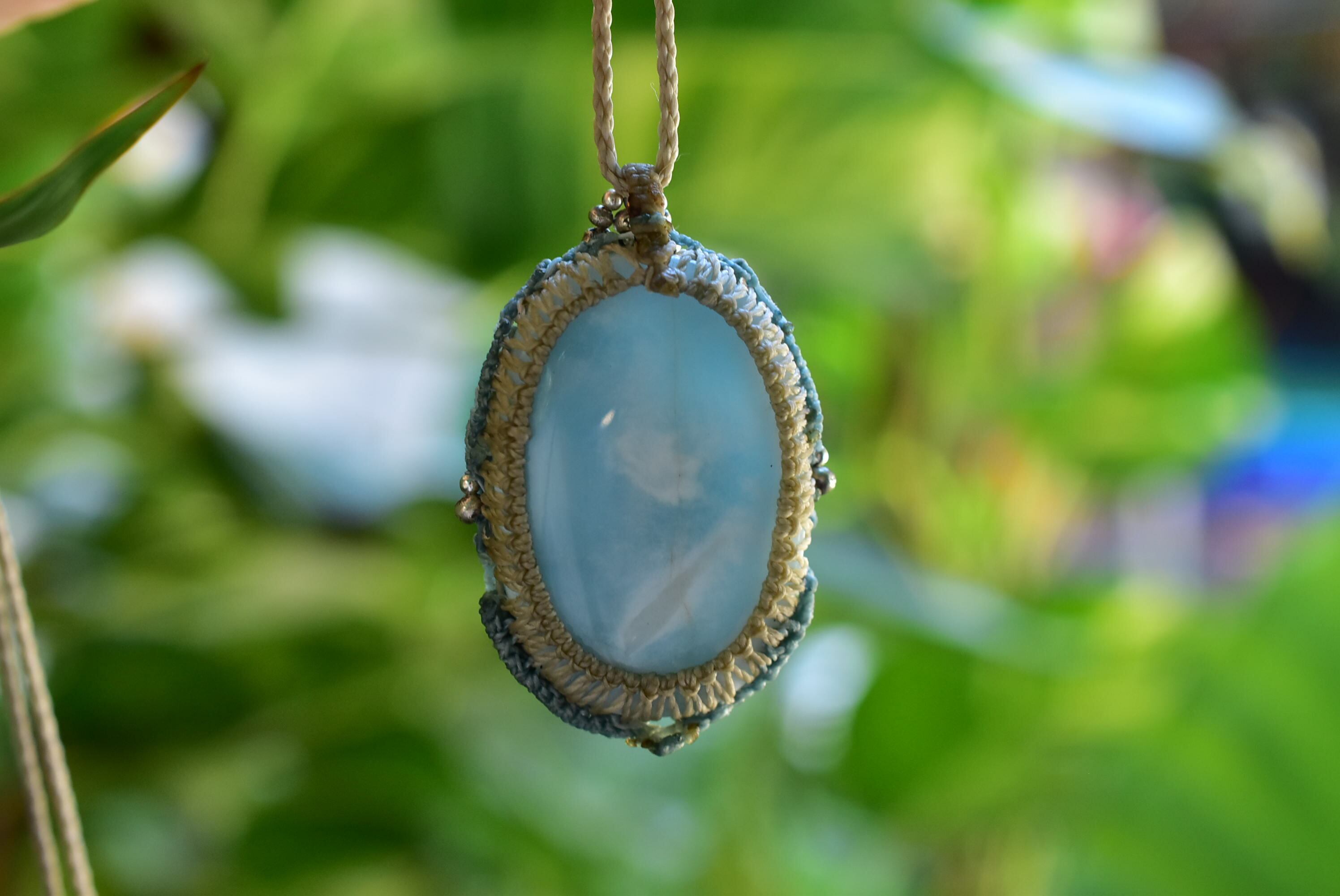 大粒の希望★細波ラリマー マクラメペンダントlari020
