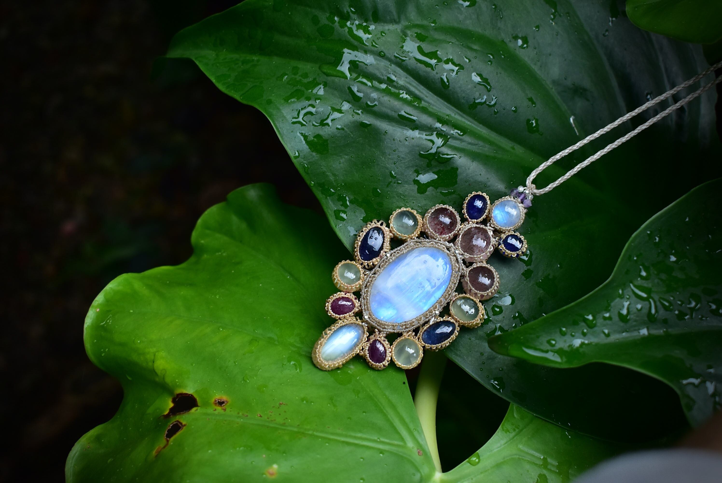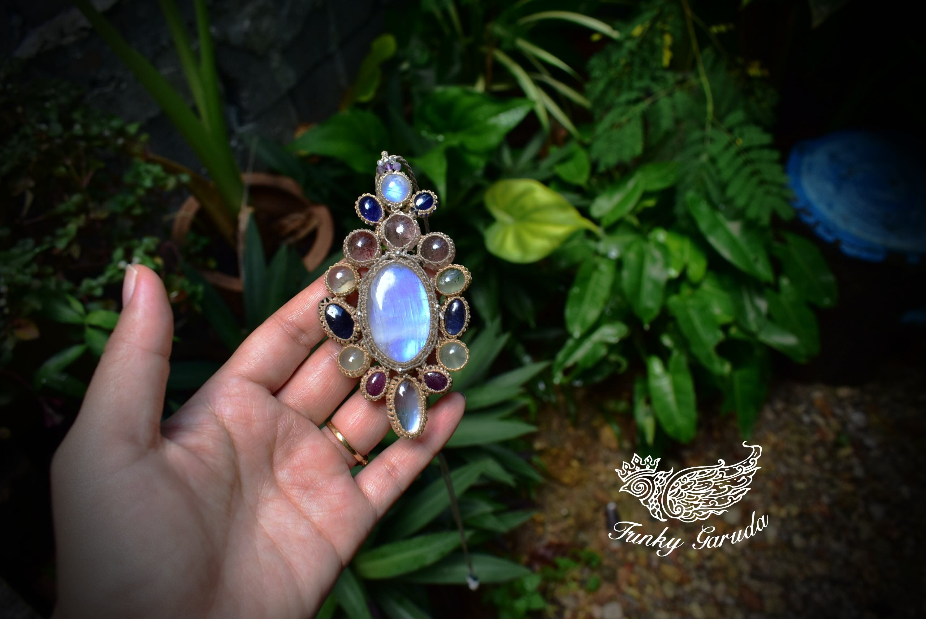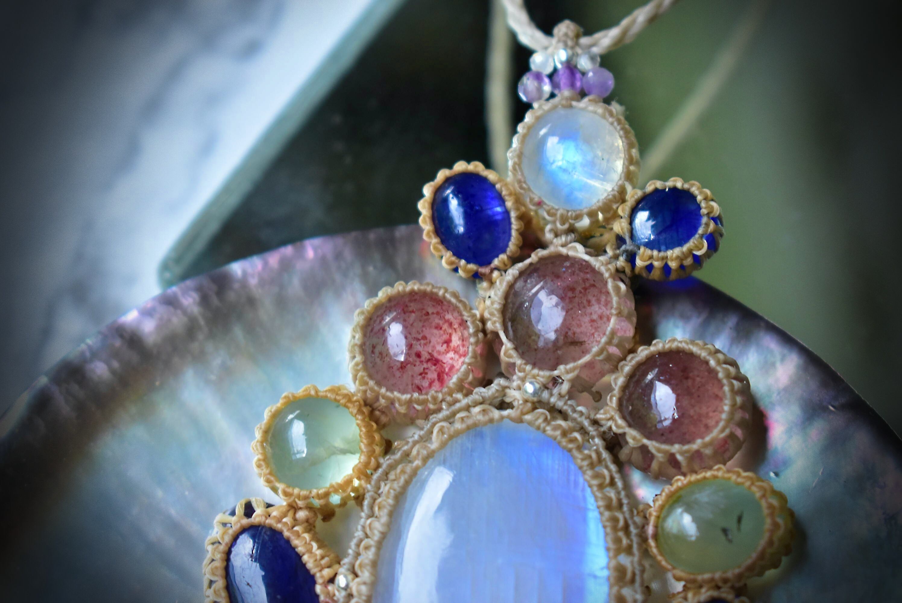 月の輝きと宝石★ムーンストーン マクラメペンダントmoon022