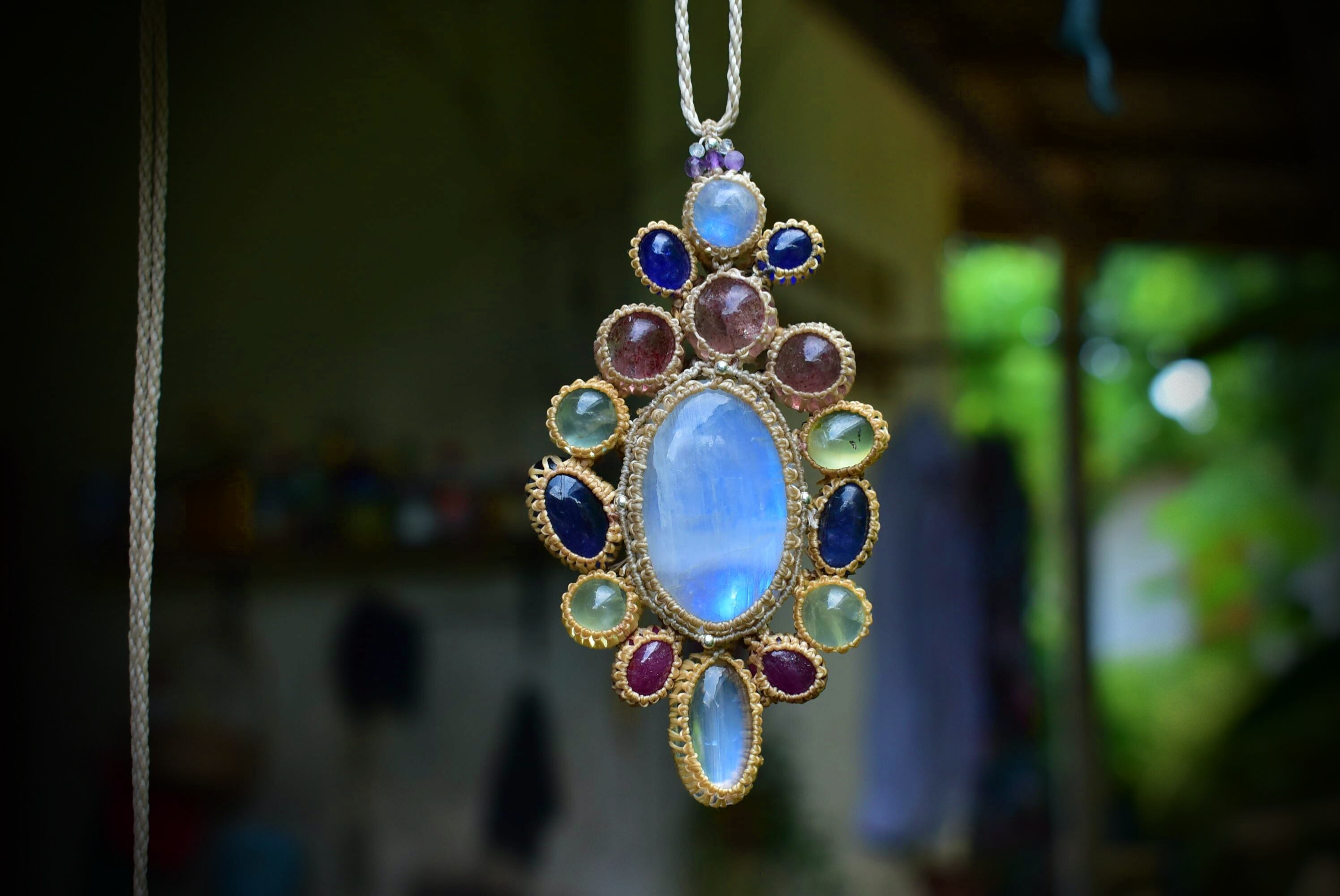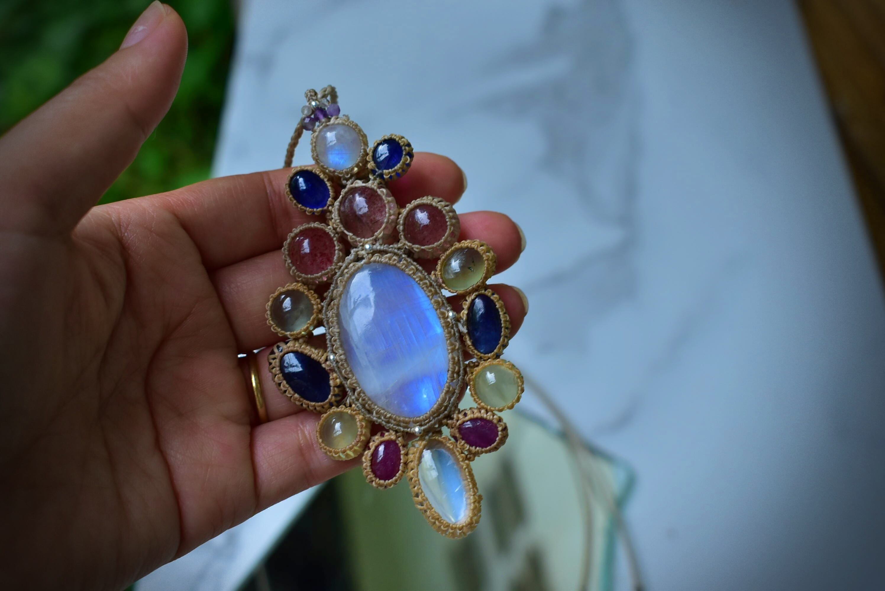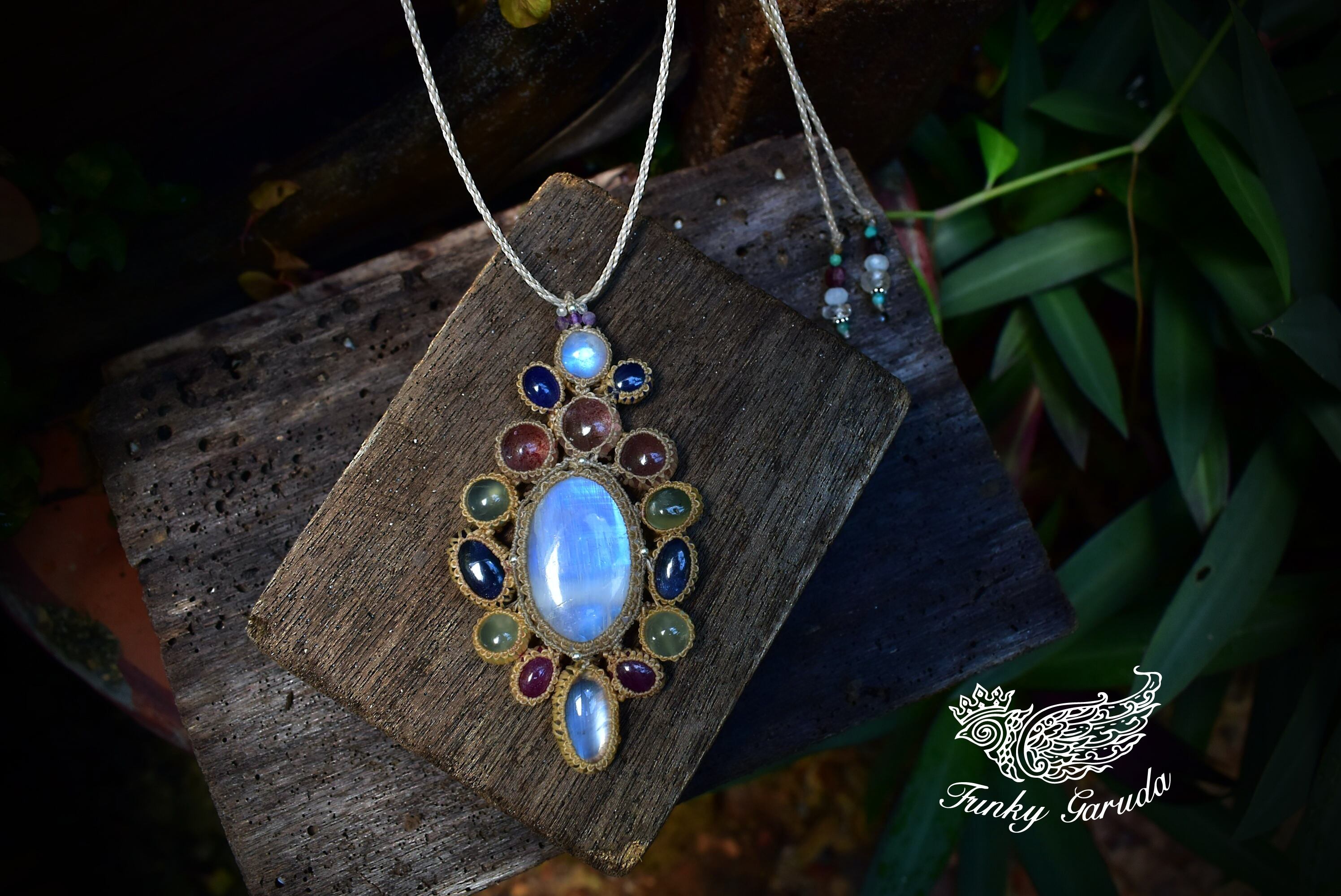 月の輝きと宝石★ムーンストーン マクラメペンダントmoon022