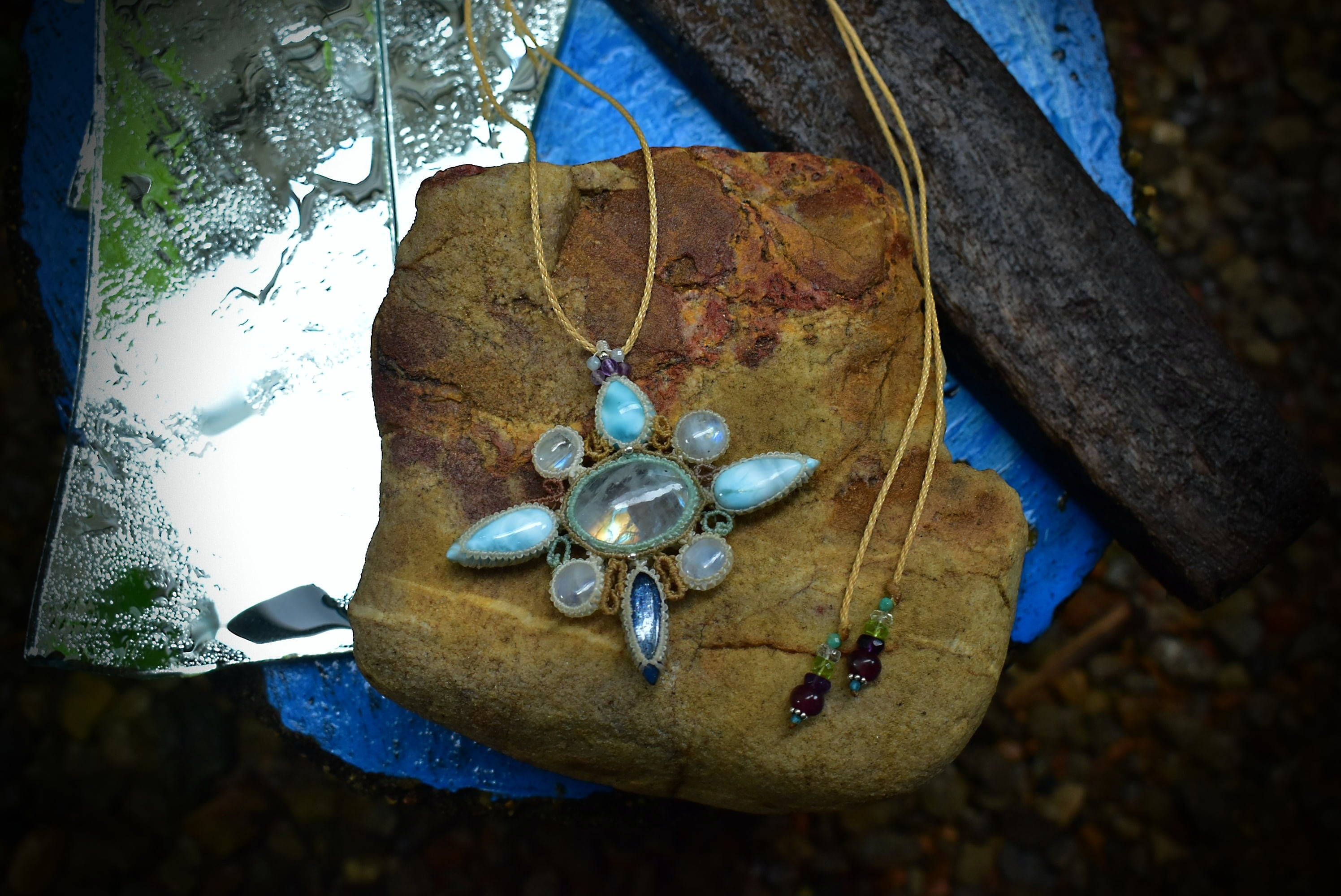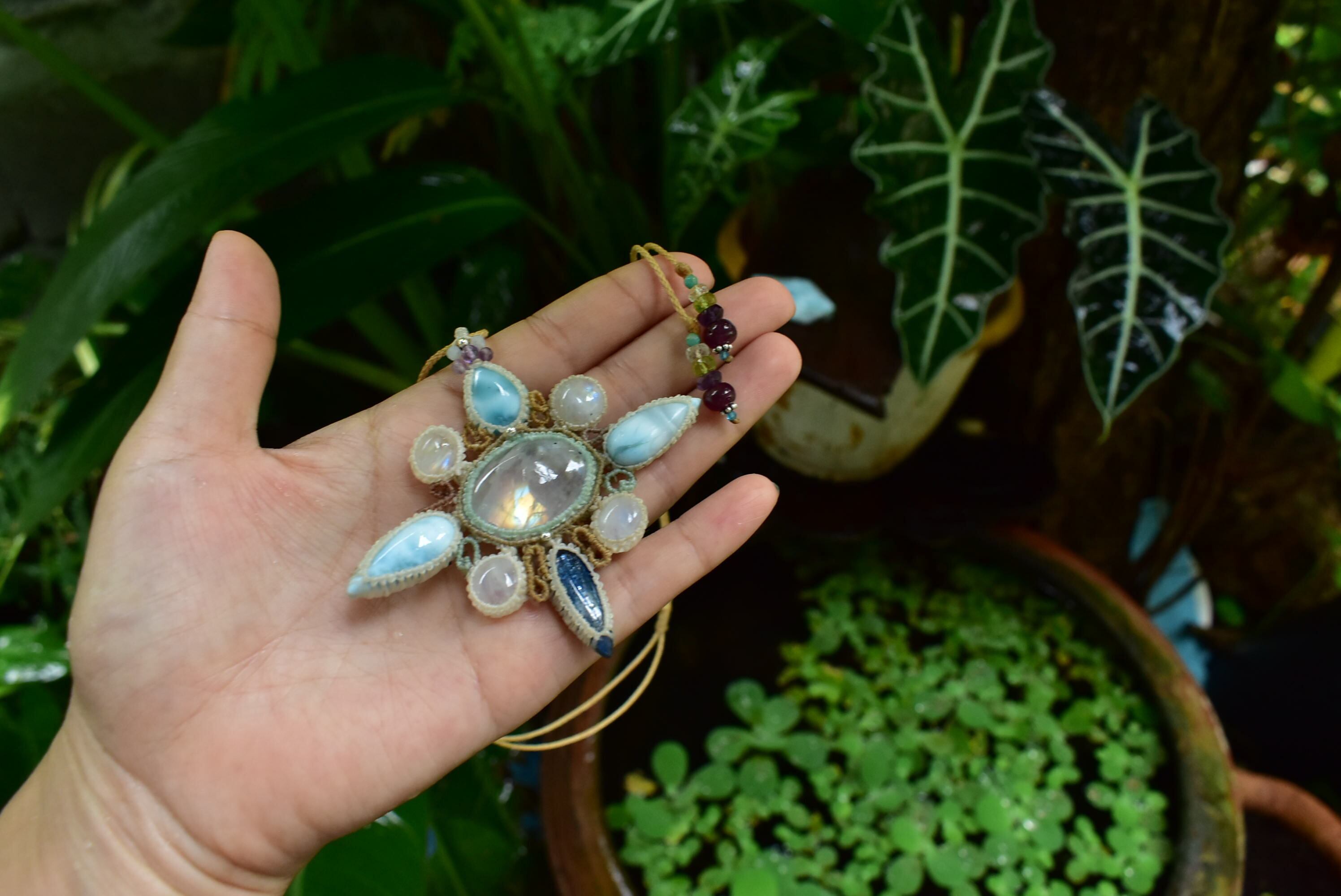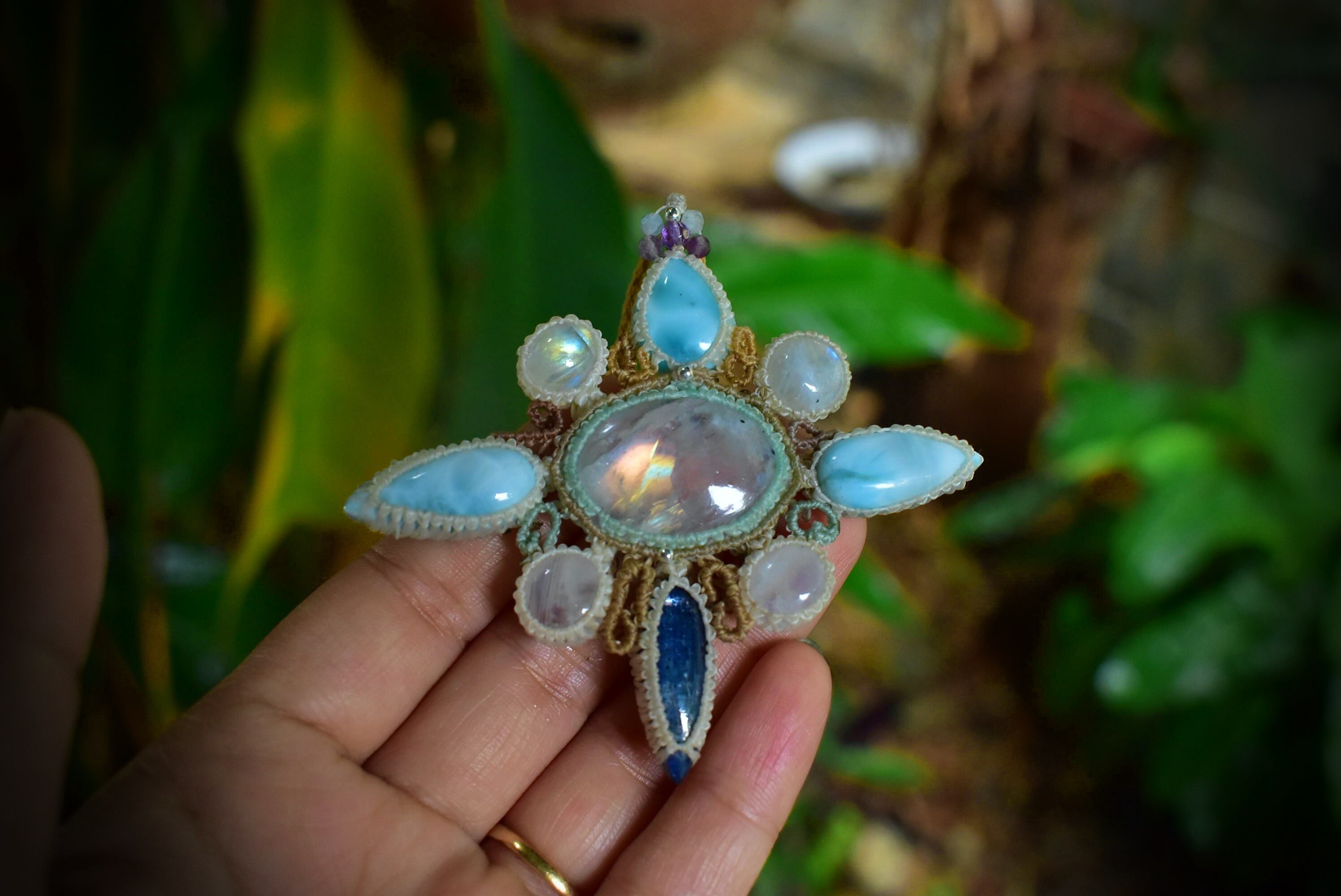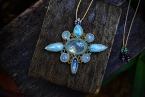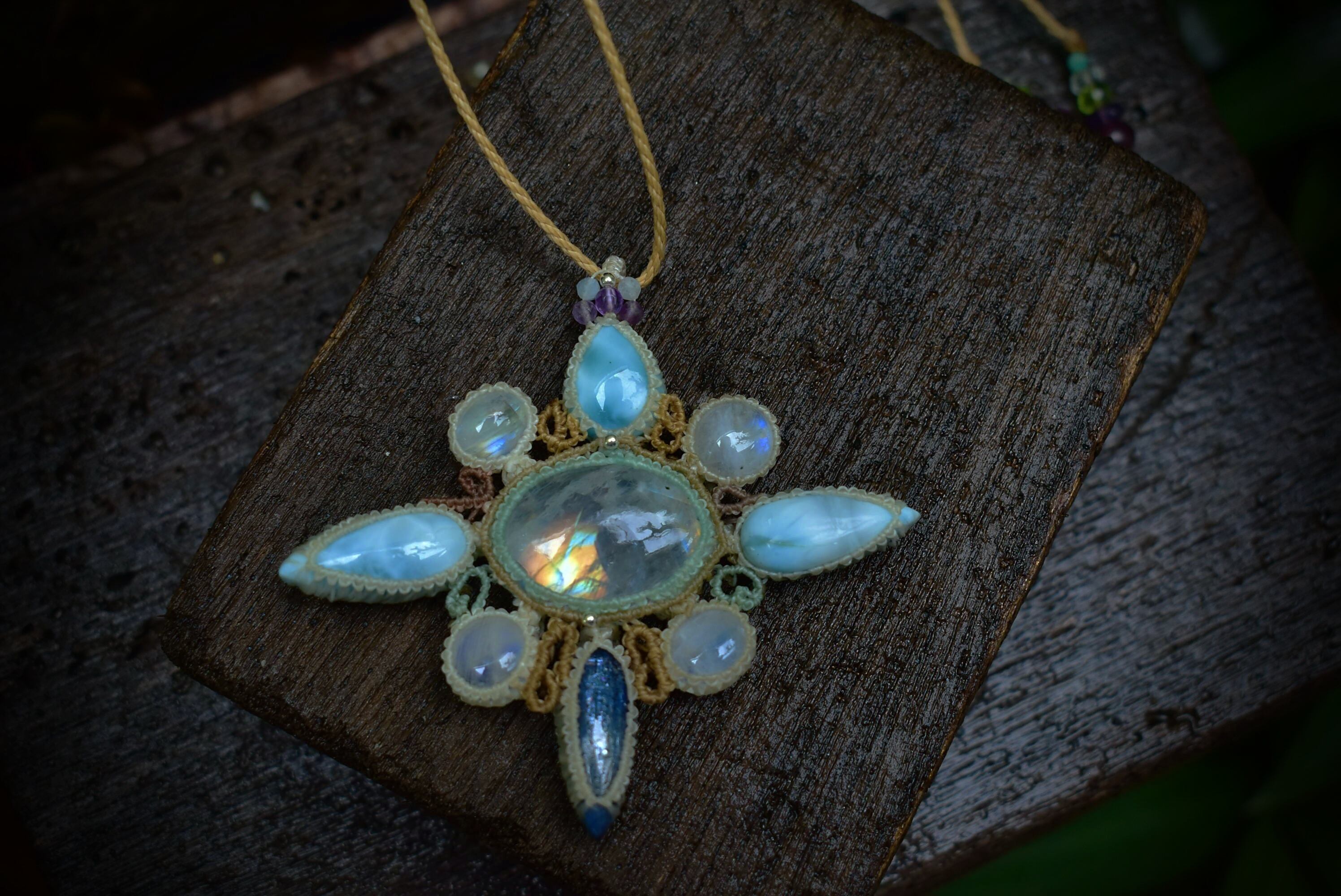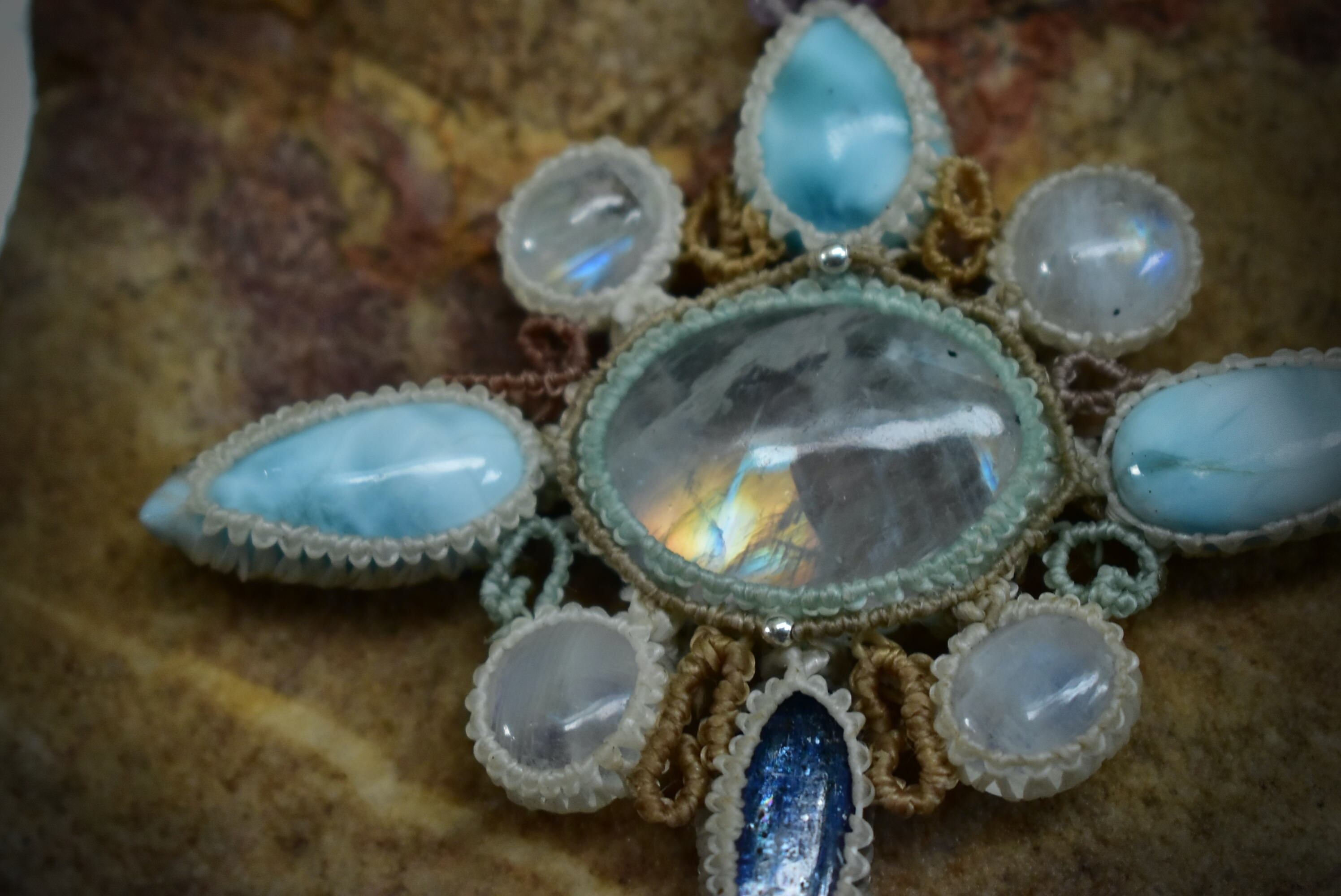 虹の花★ラリマー+ムーンストーン+カイヤナイト マクラメペンダントmoon024