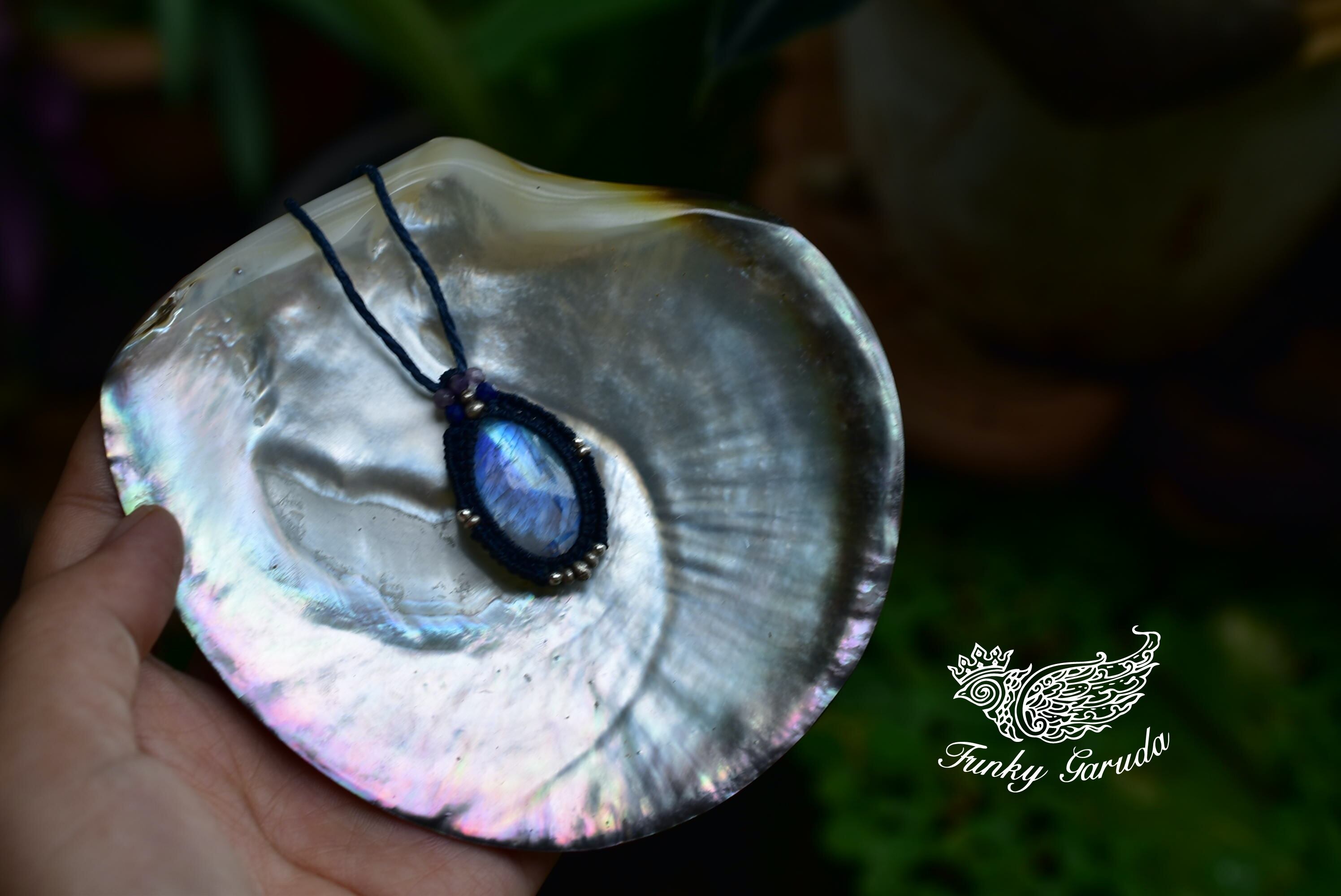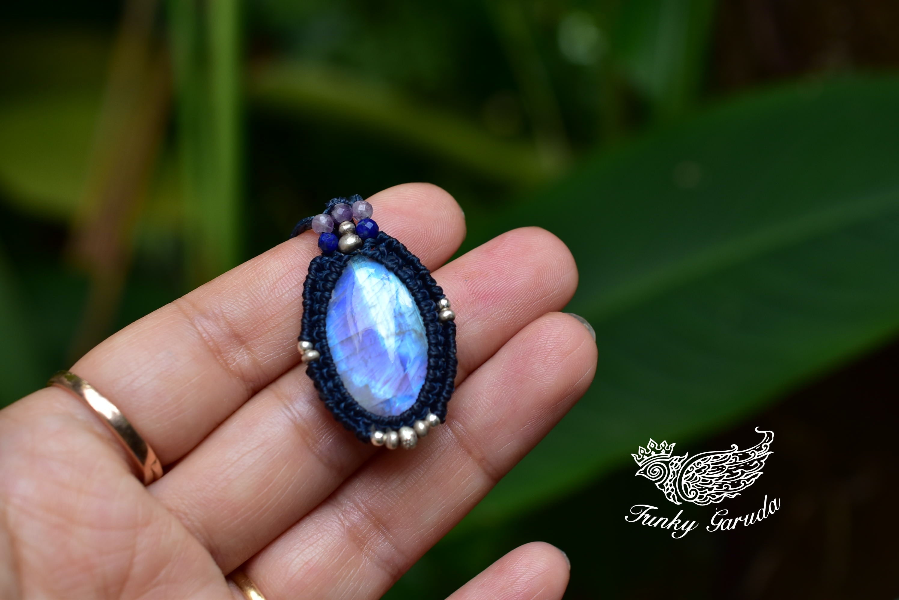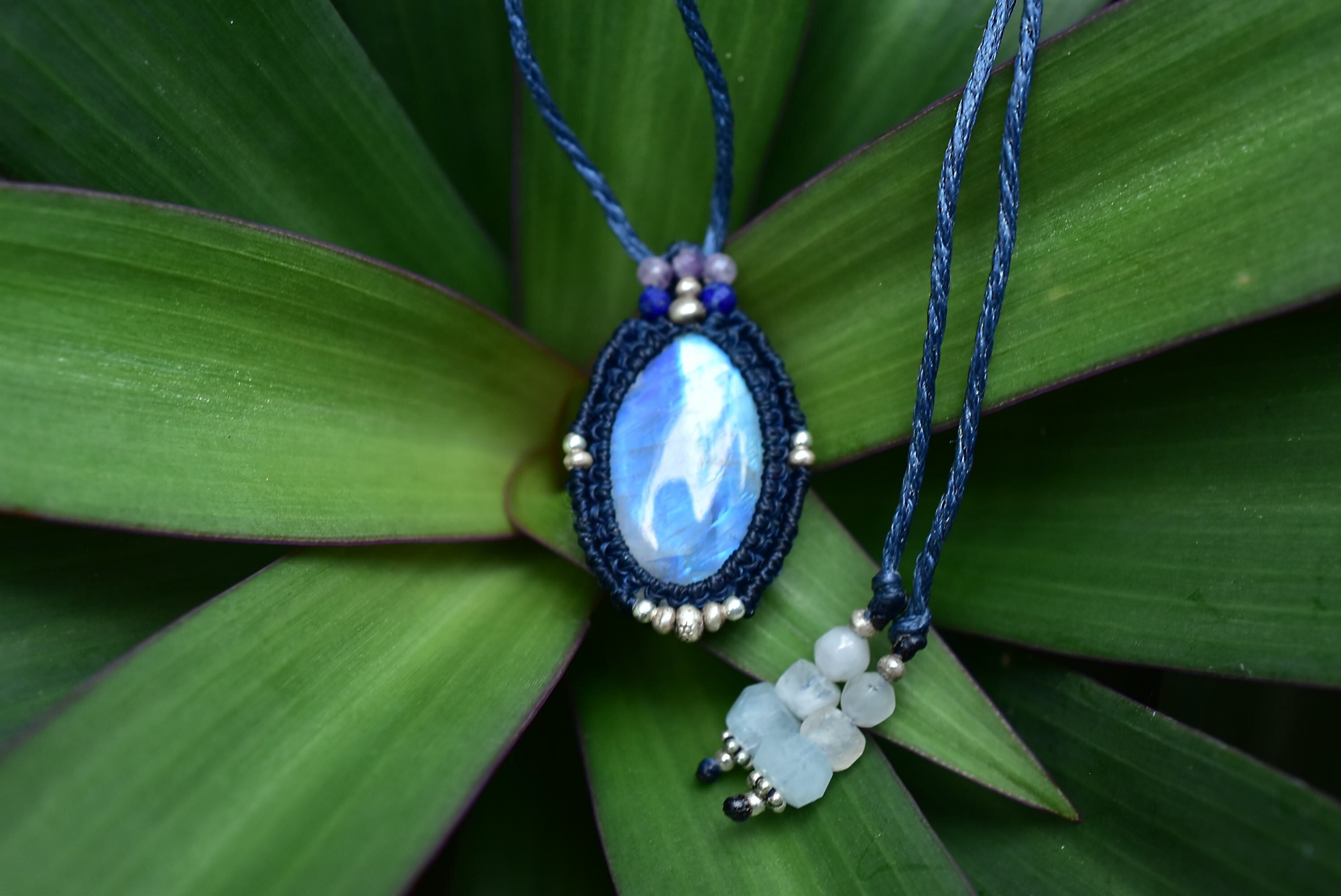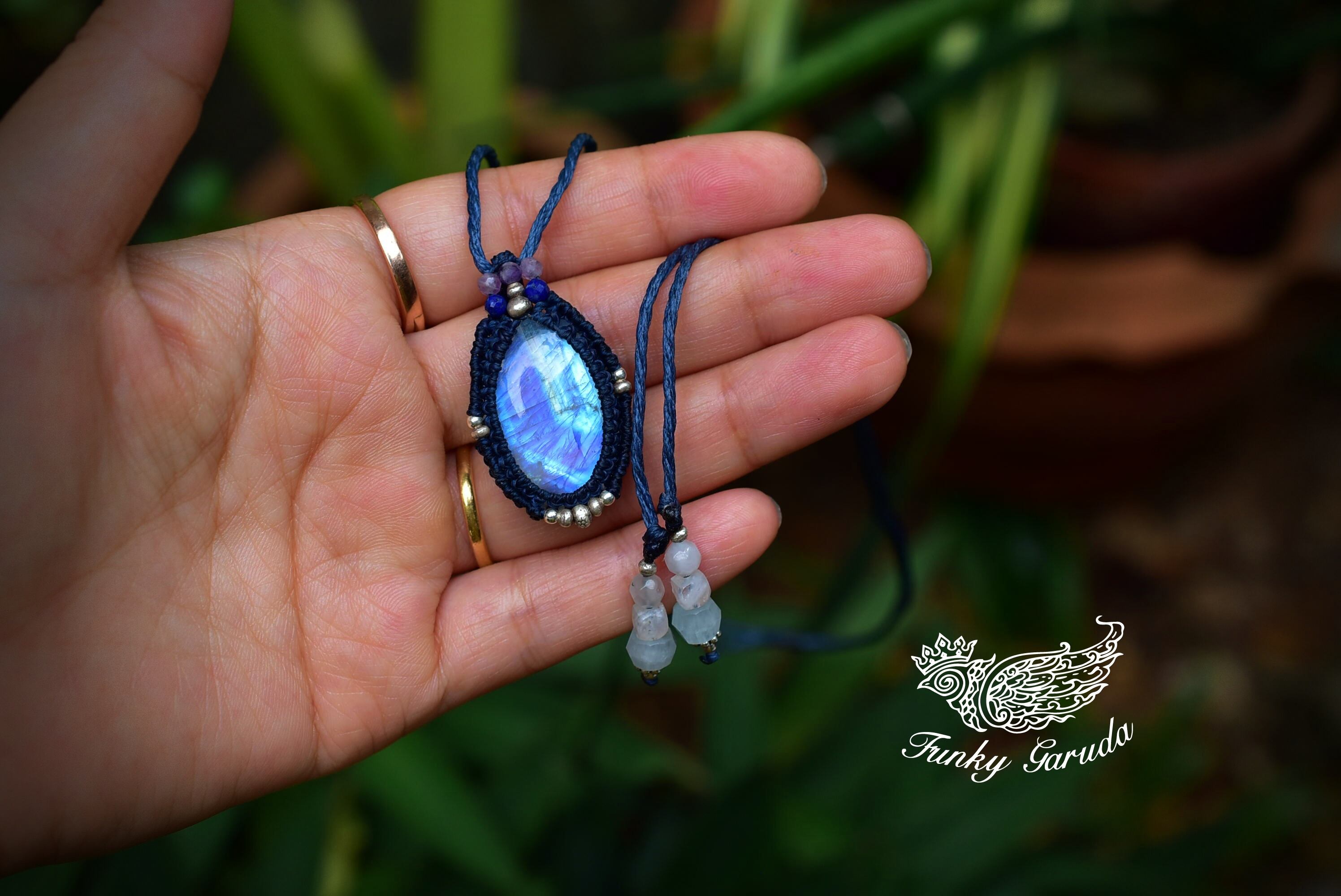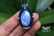高品質★ブルーレインボームーンストーンマクラメペンダント moon022