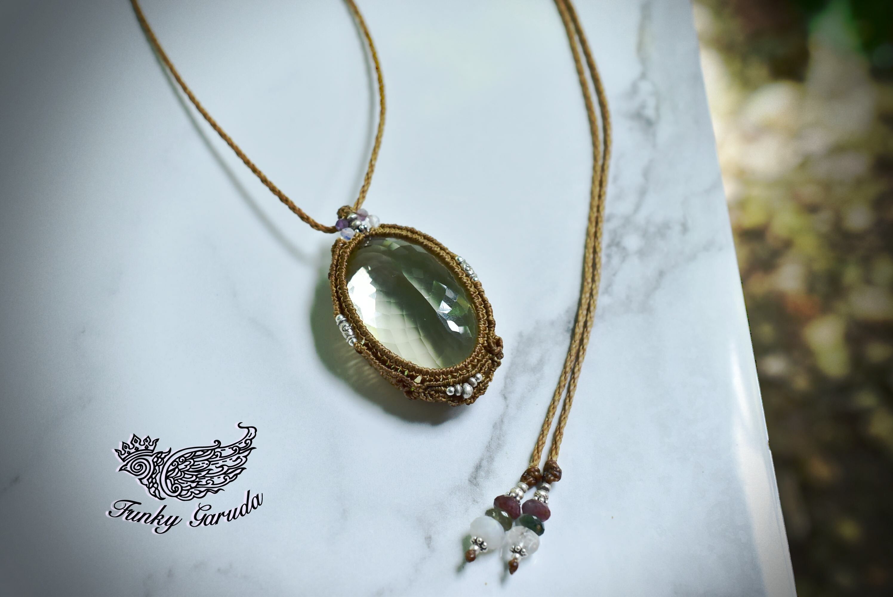異国感漂うレモンクォーツ の世界をご堪能いただける本格的なジュエリーをマクラメ編み装飾を施しました。