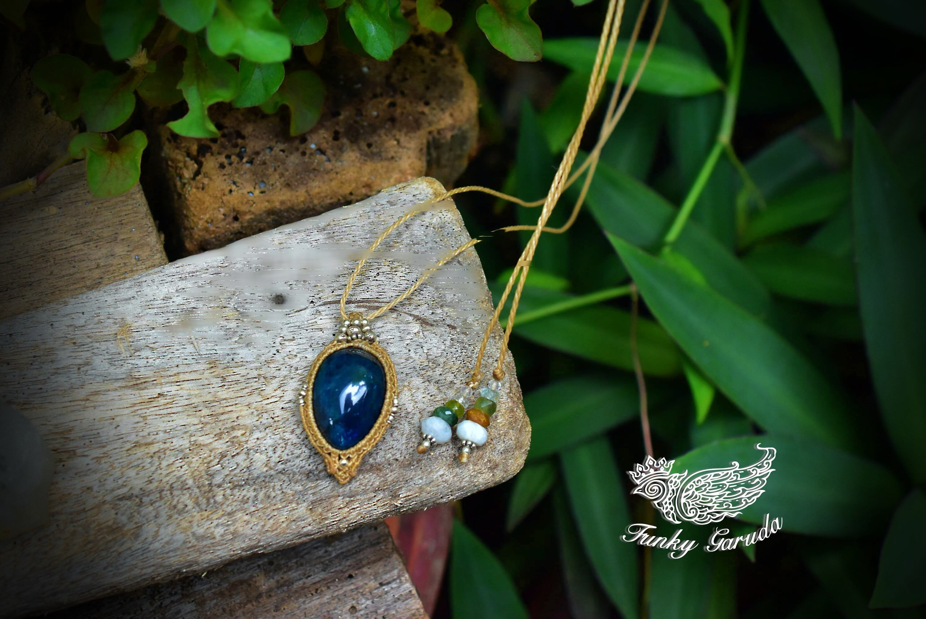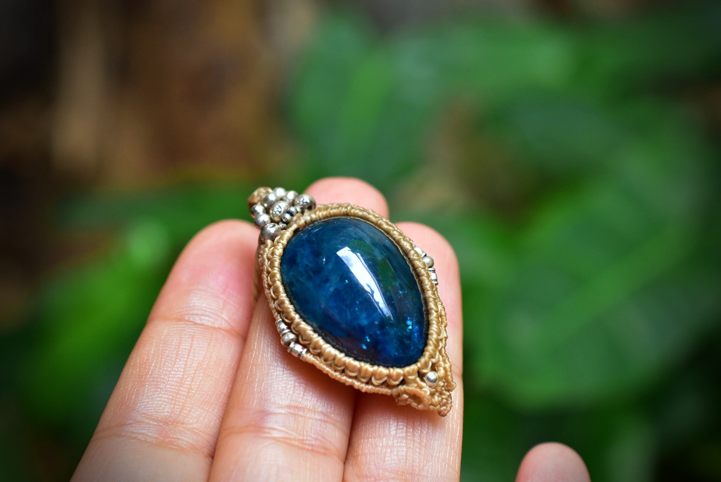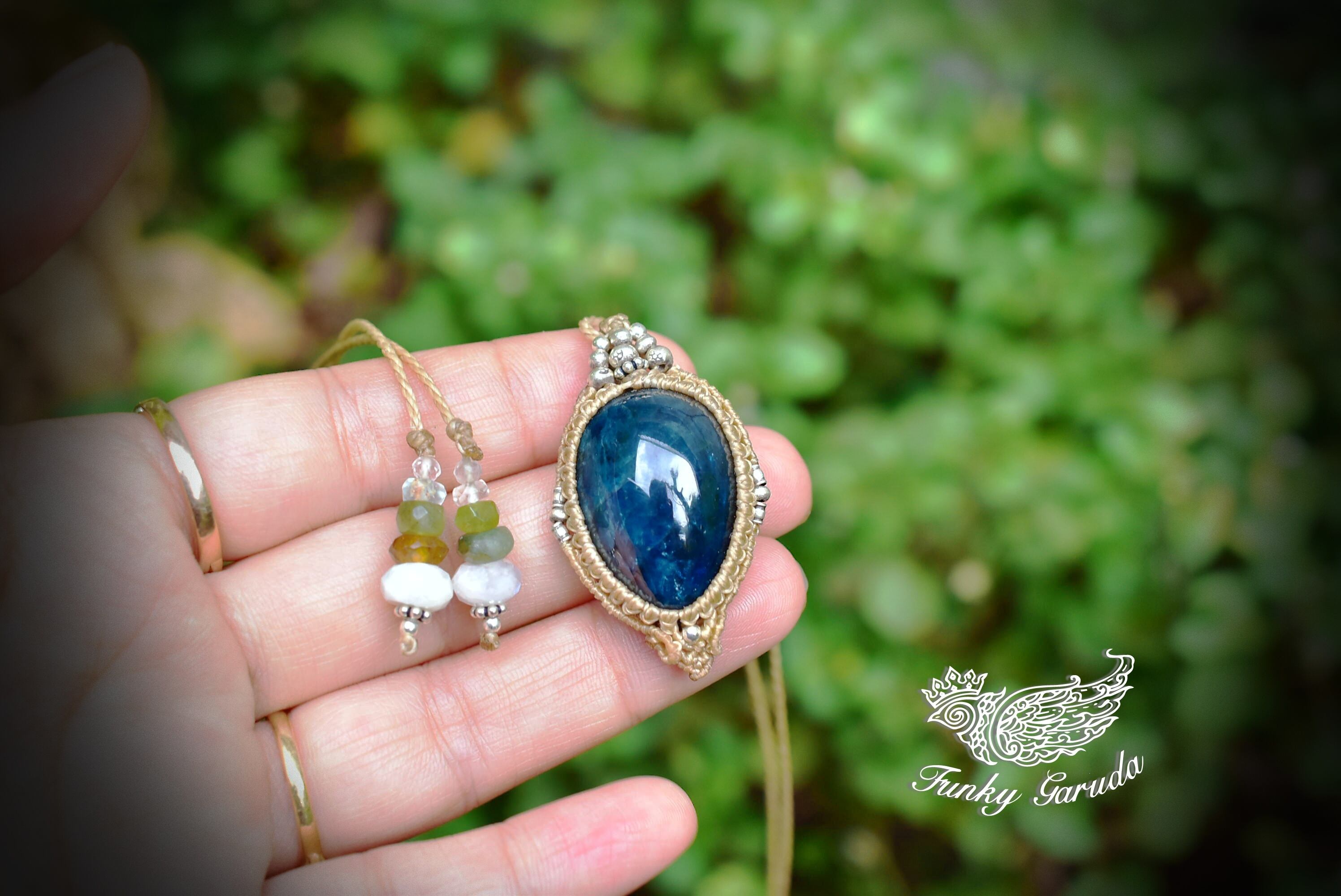 キラキラ★シラー入り★ブルーアパタイト マクラメペンダントapa005