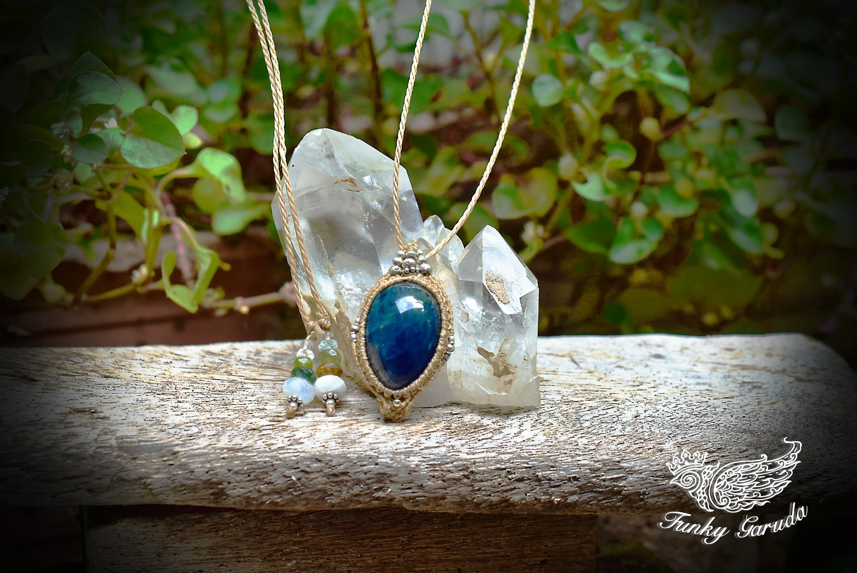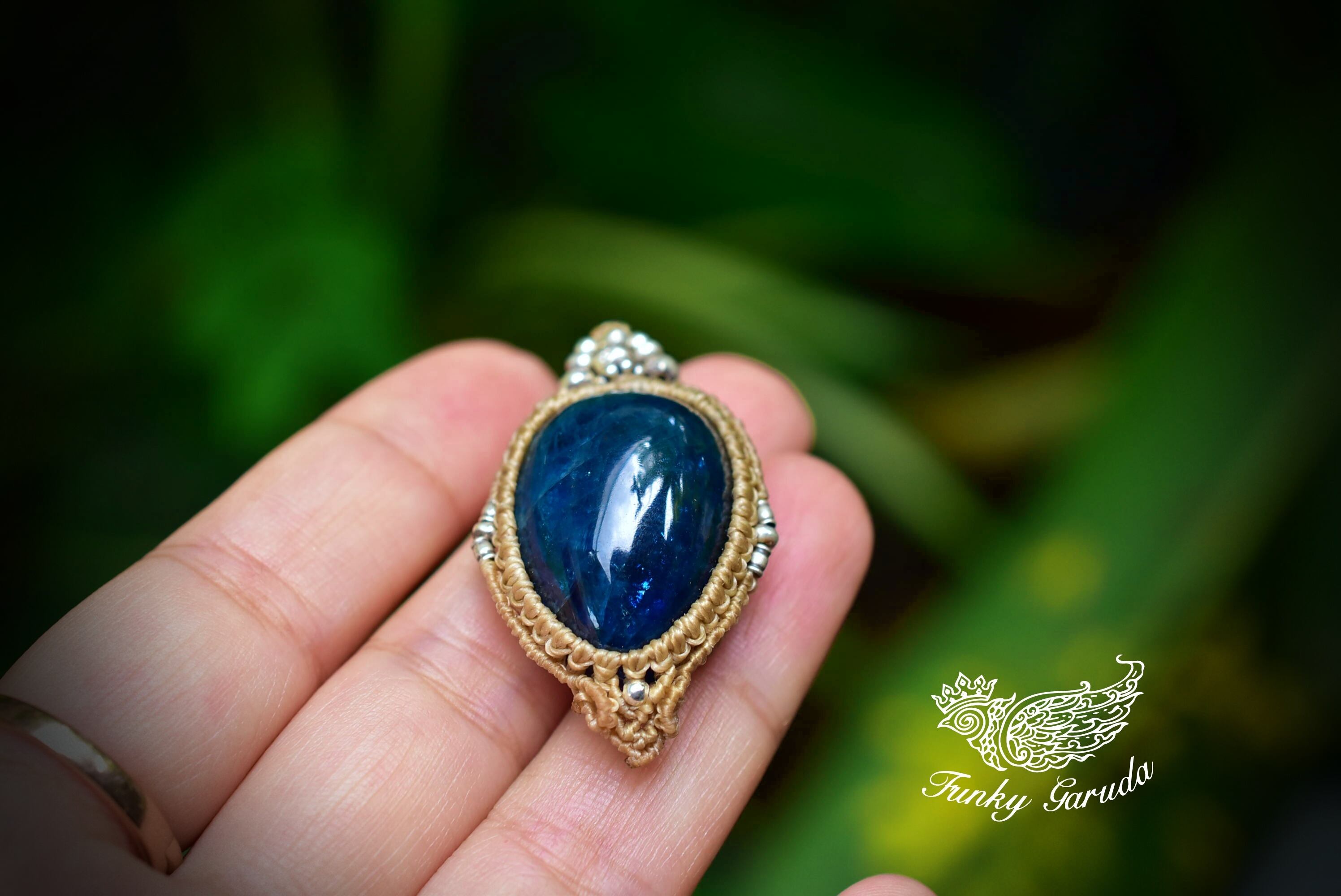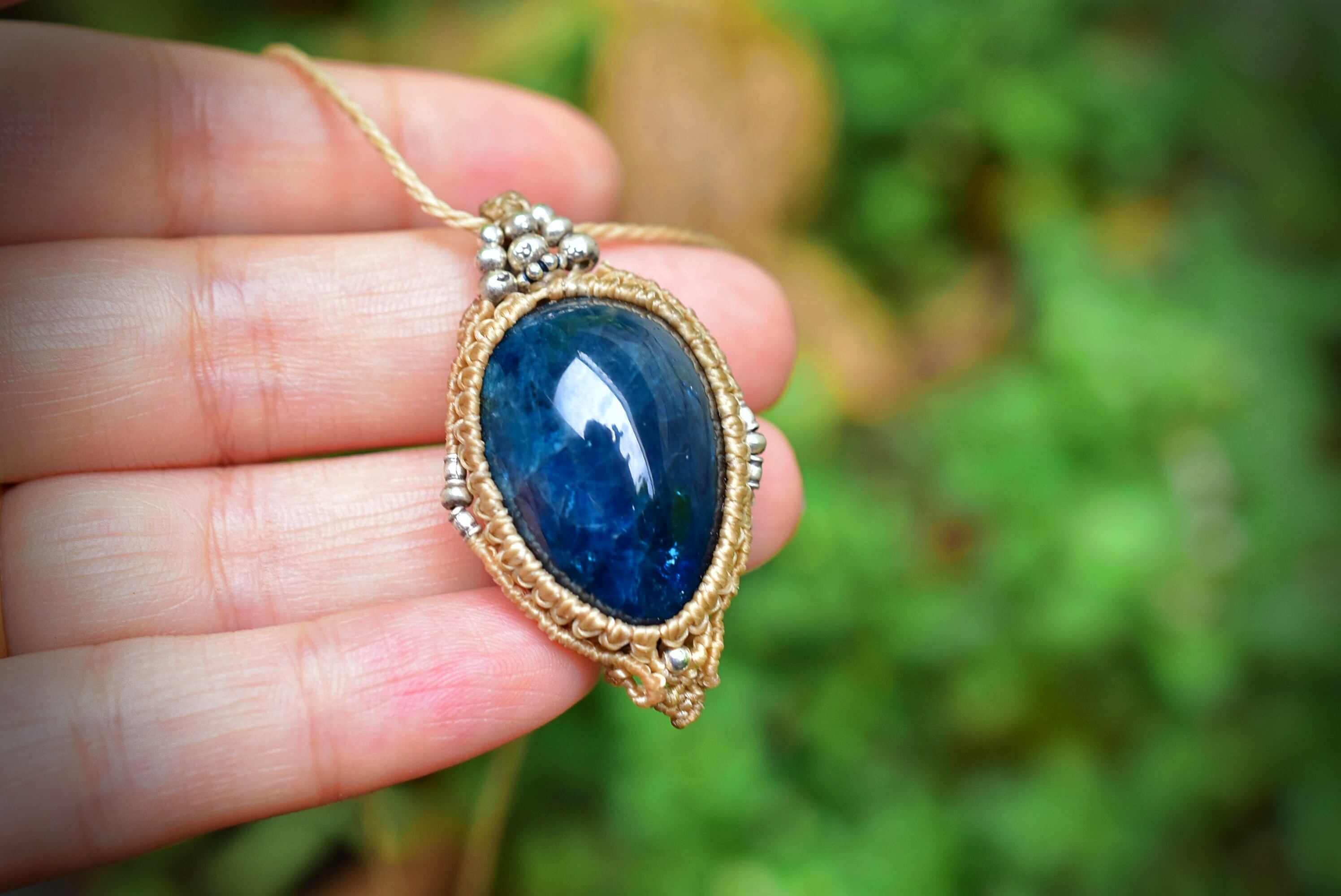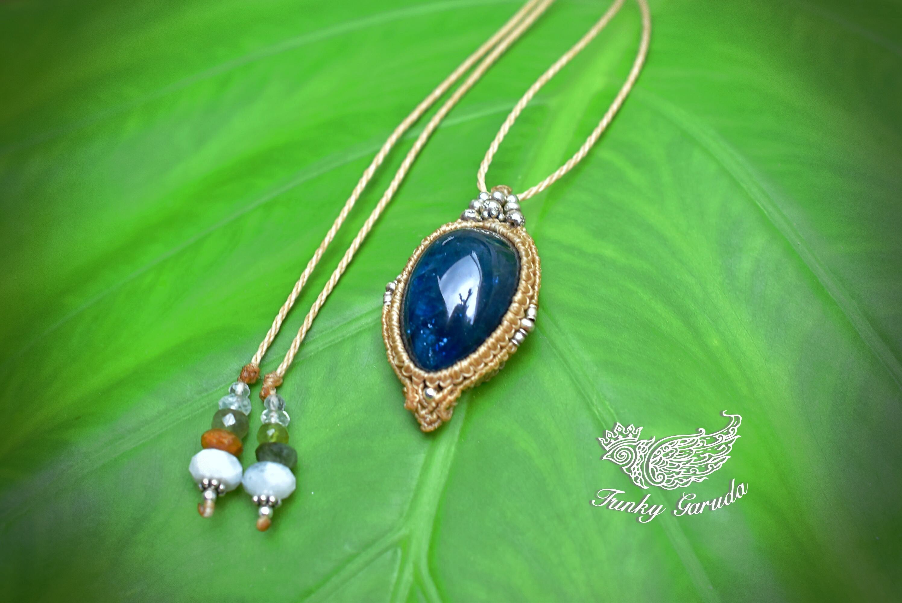 キラキラ★シラー入り★ブルーアパタイト マクラメペンダントapa005