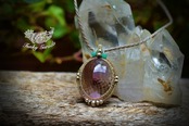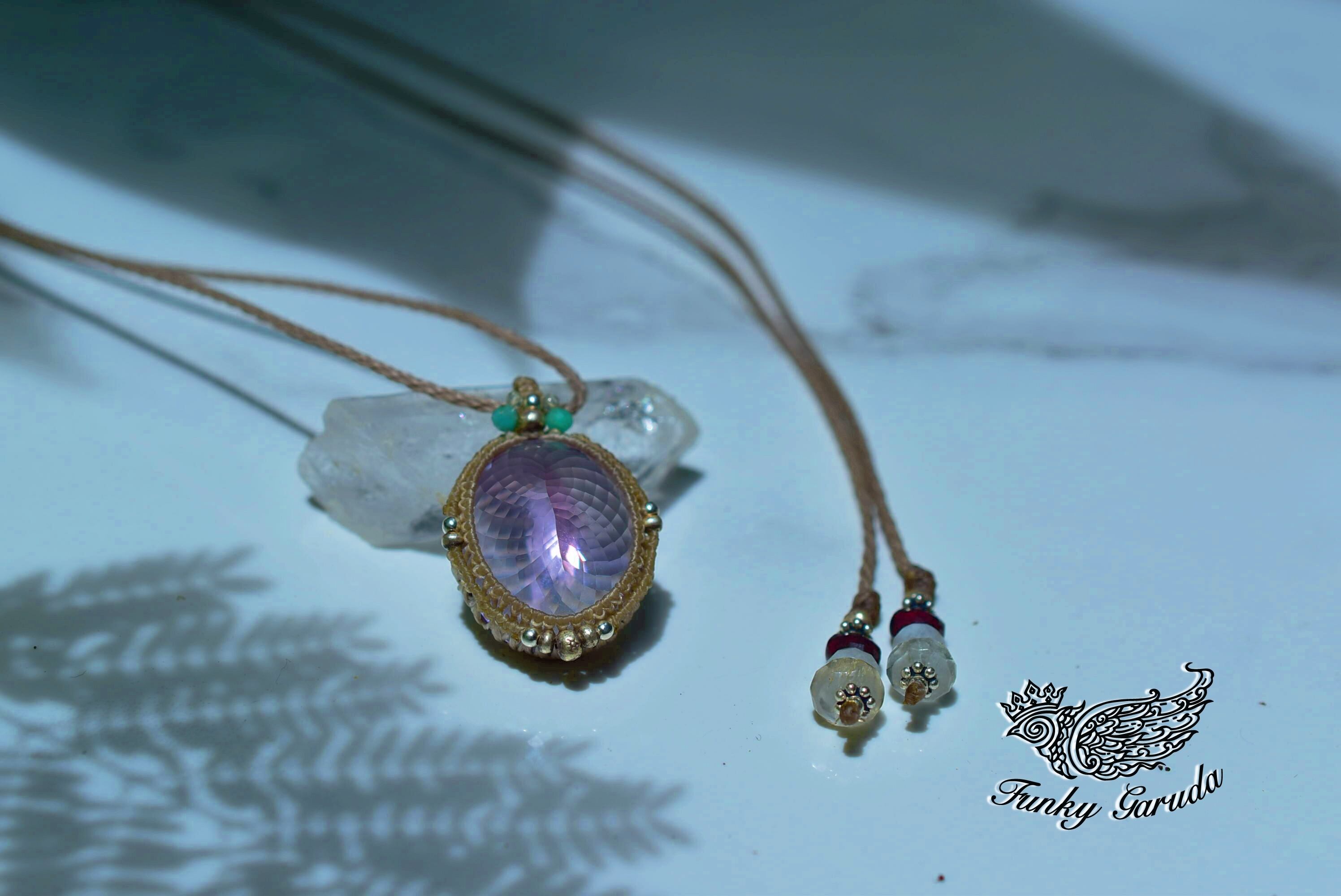 優しいピンクパープルカラーに繊細なファセットカットが施された宝石アメトリン。