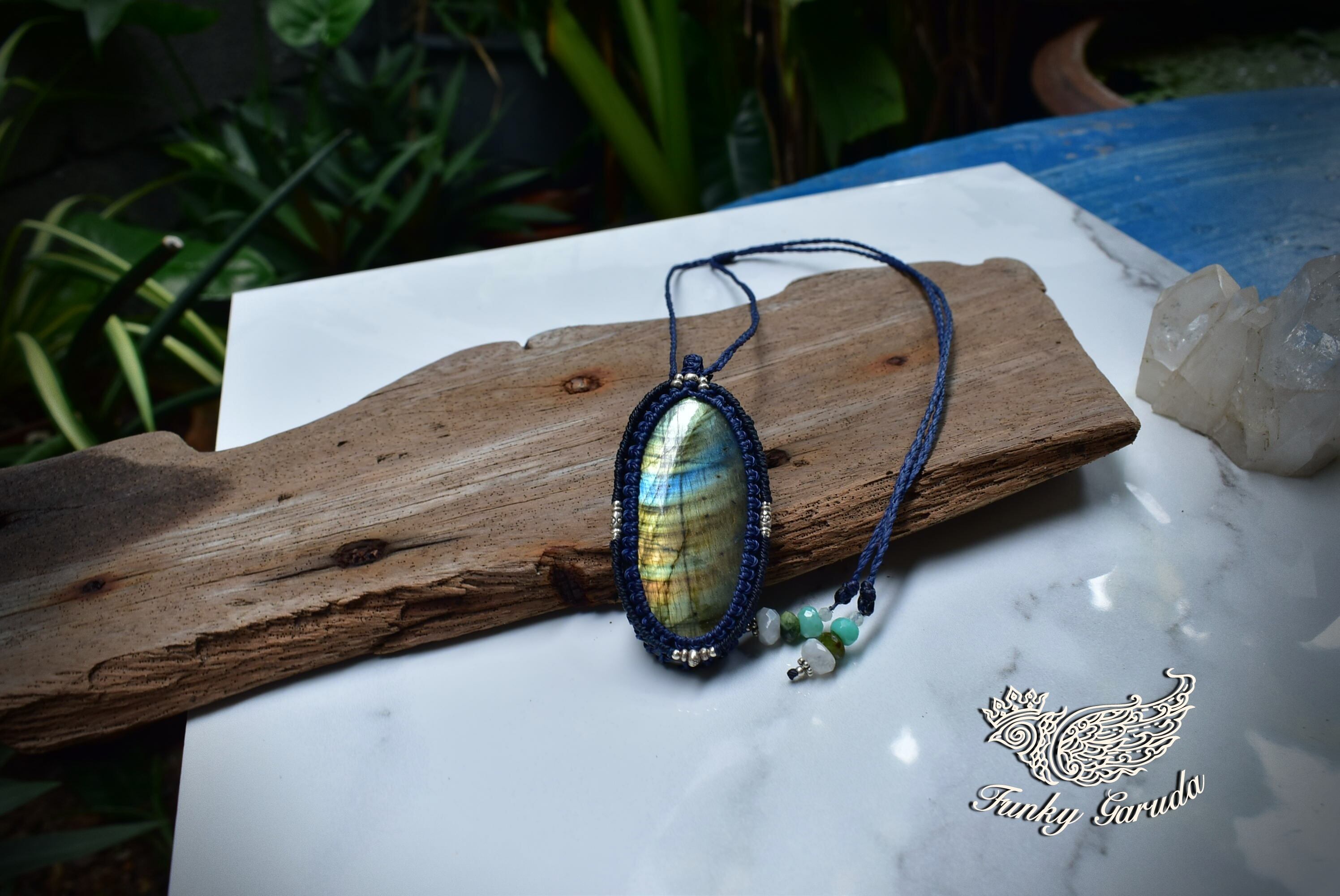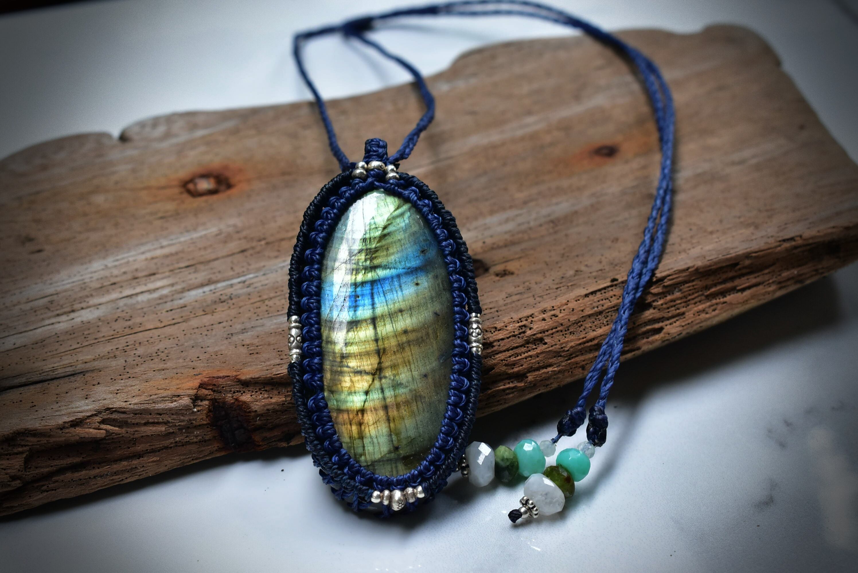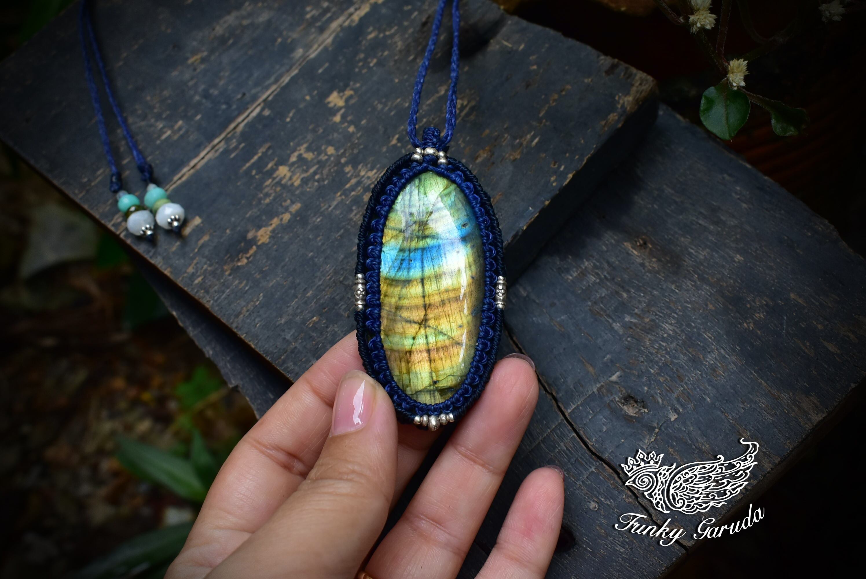 レインボーラブラドライト マクラメペンダント labb023