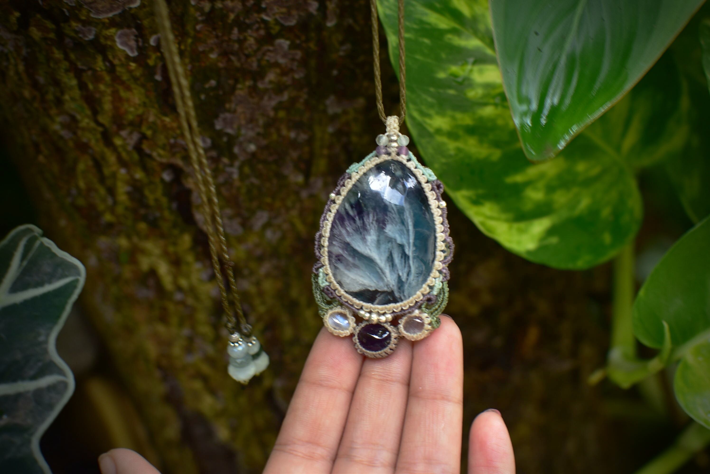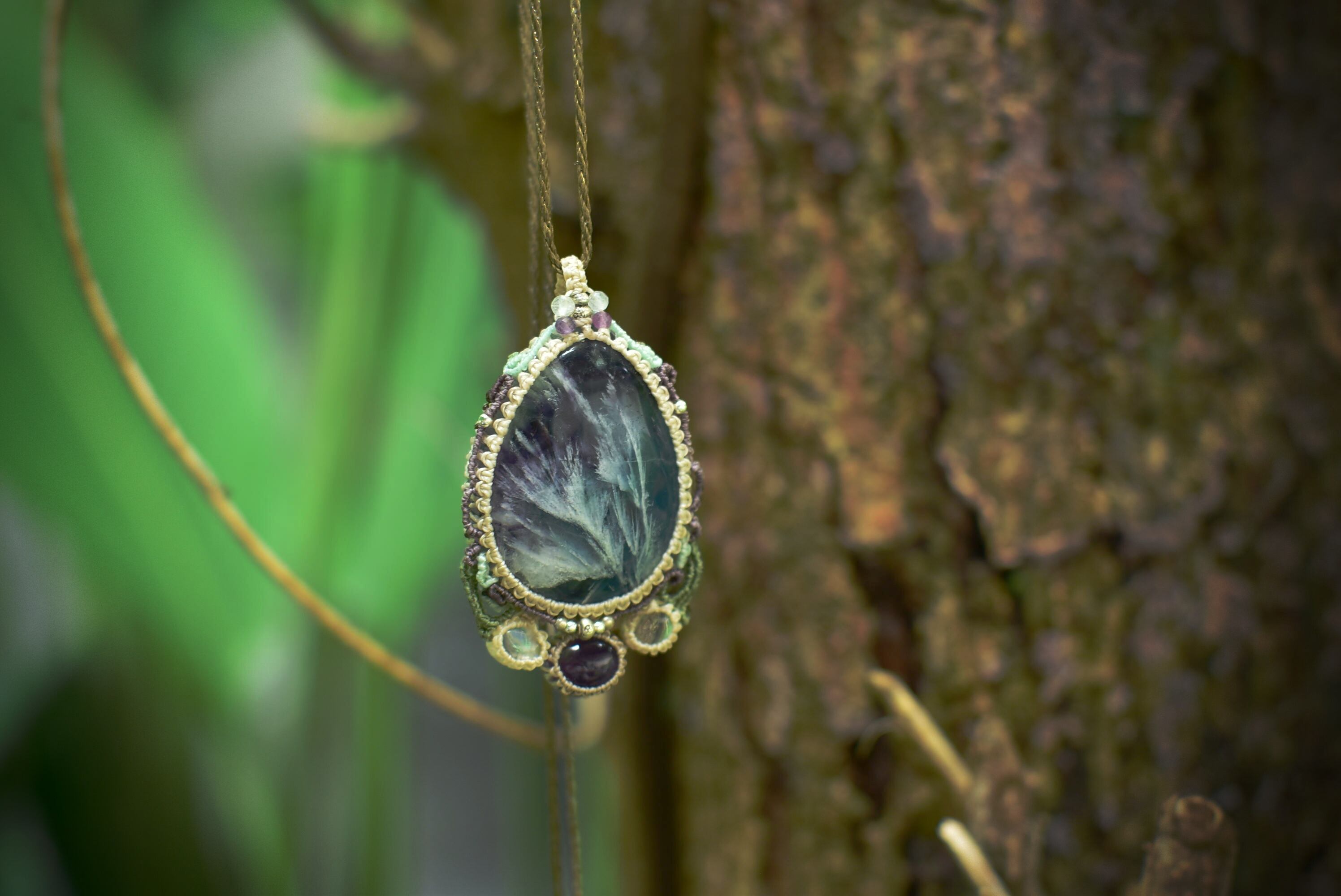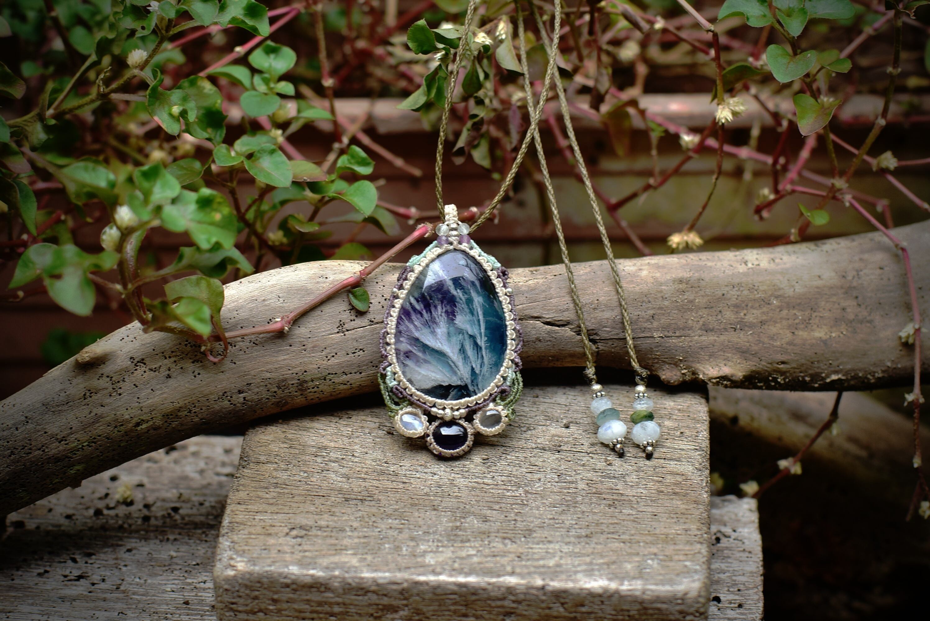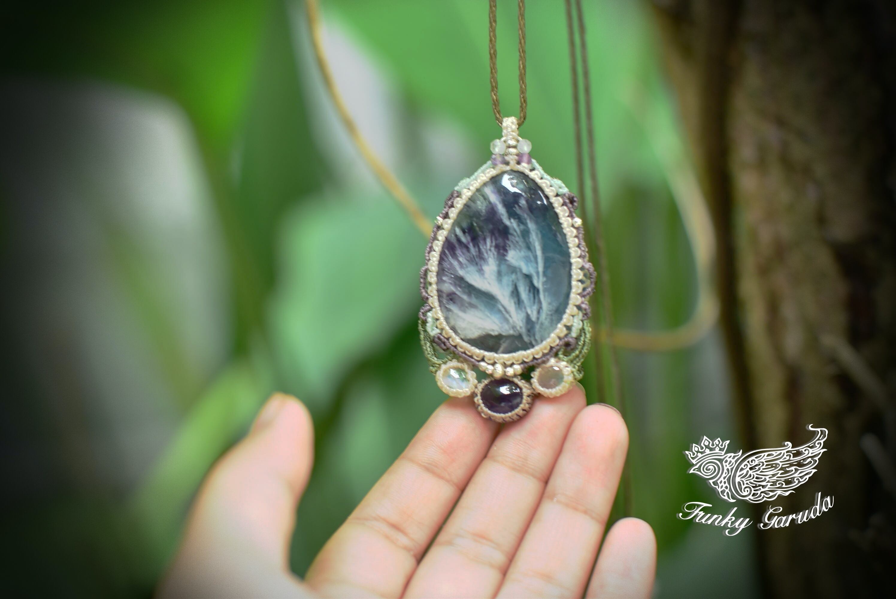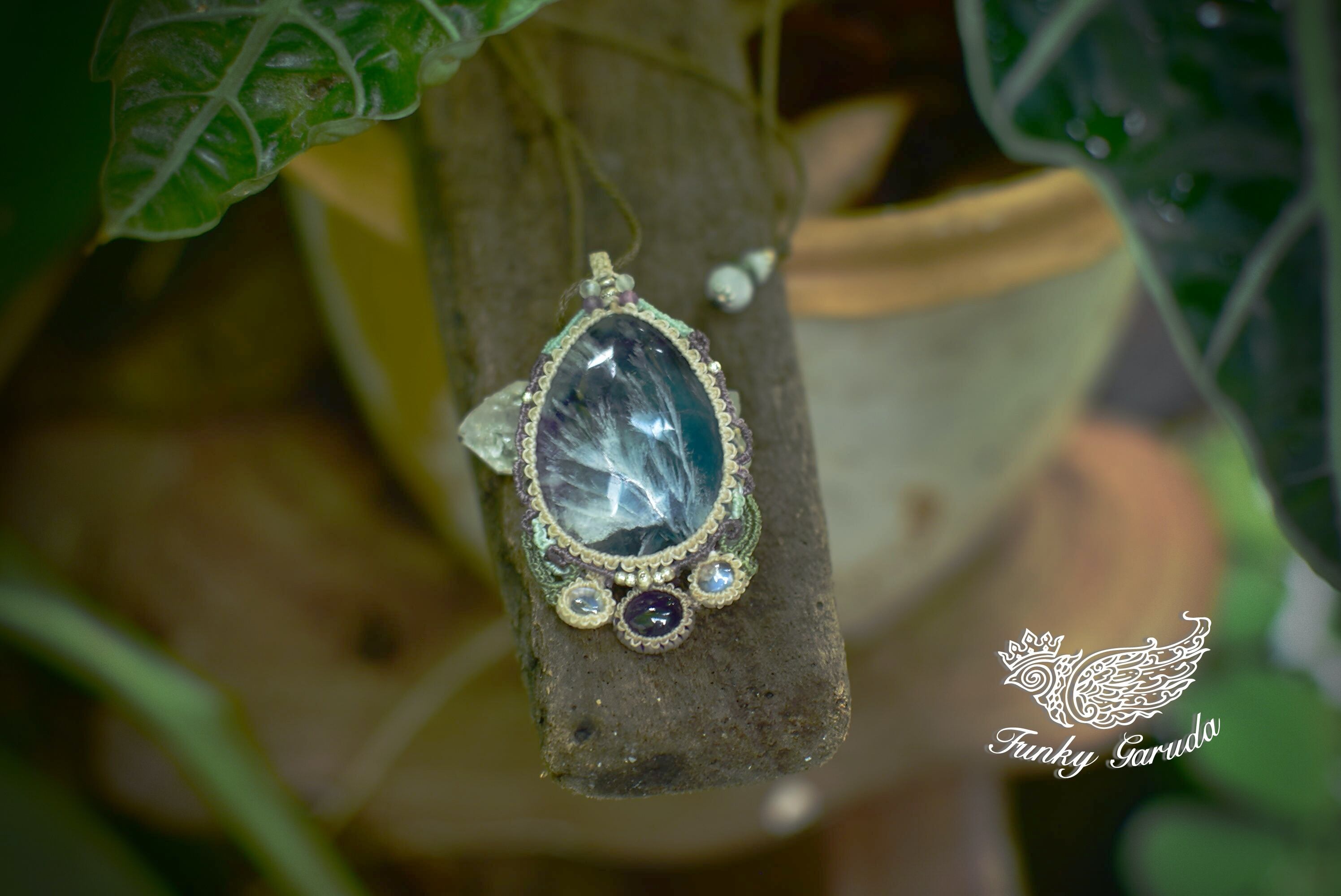 美しき羽根模様★エンジェルフェザーフローライト マクラメペンダントflo010