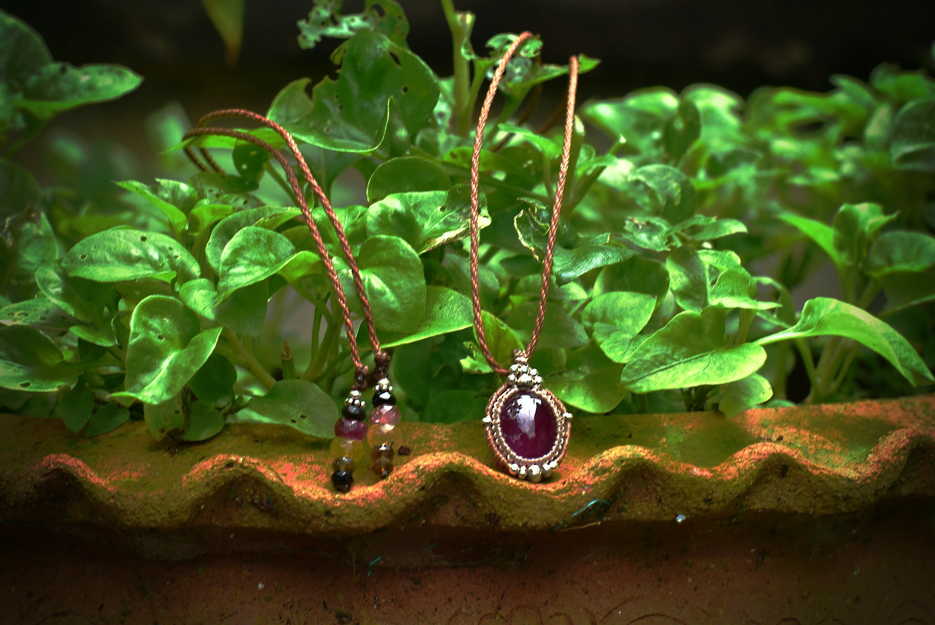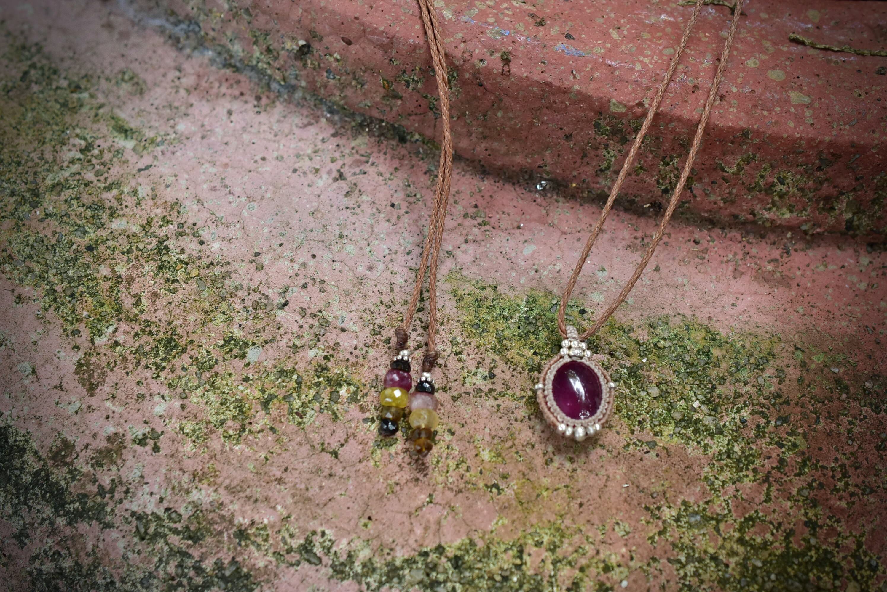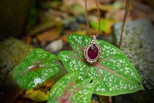 つるんと研磨が施されている愛らしいルビーにカレンシルバー92.5ビーズをアクセントに仕上げたペンダントです。