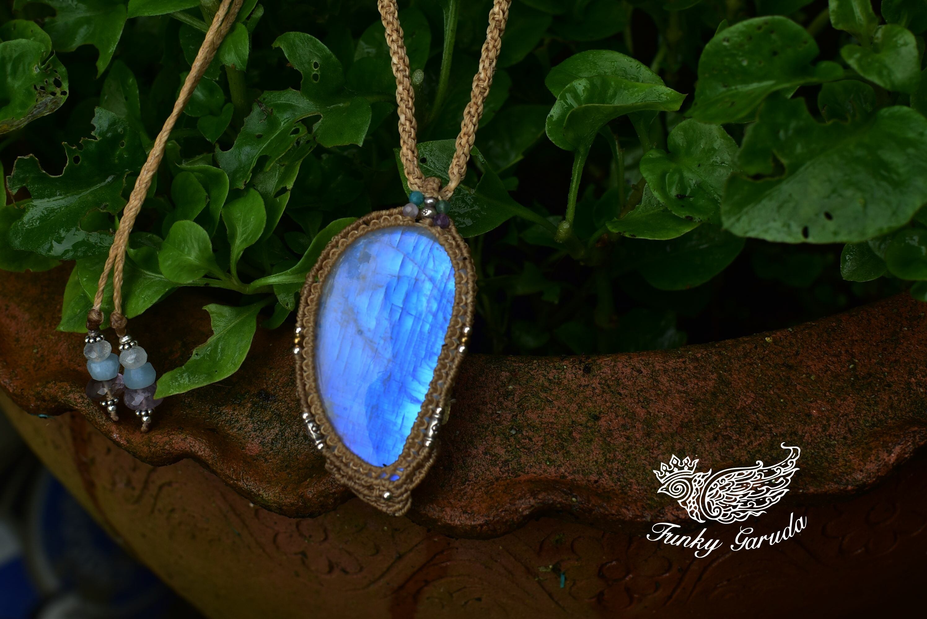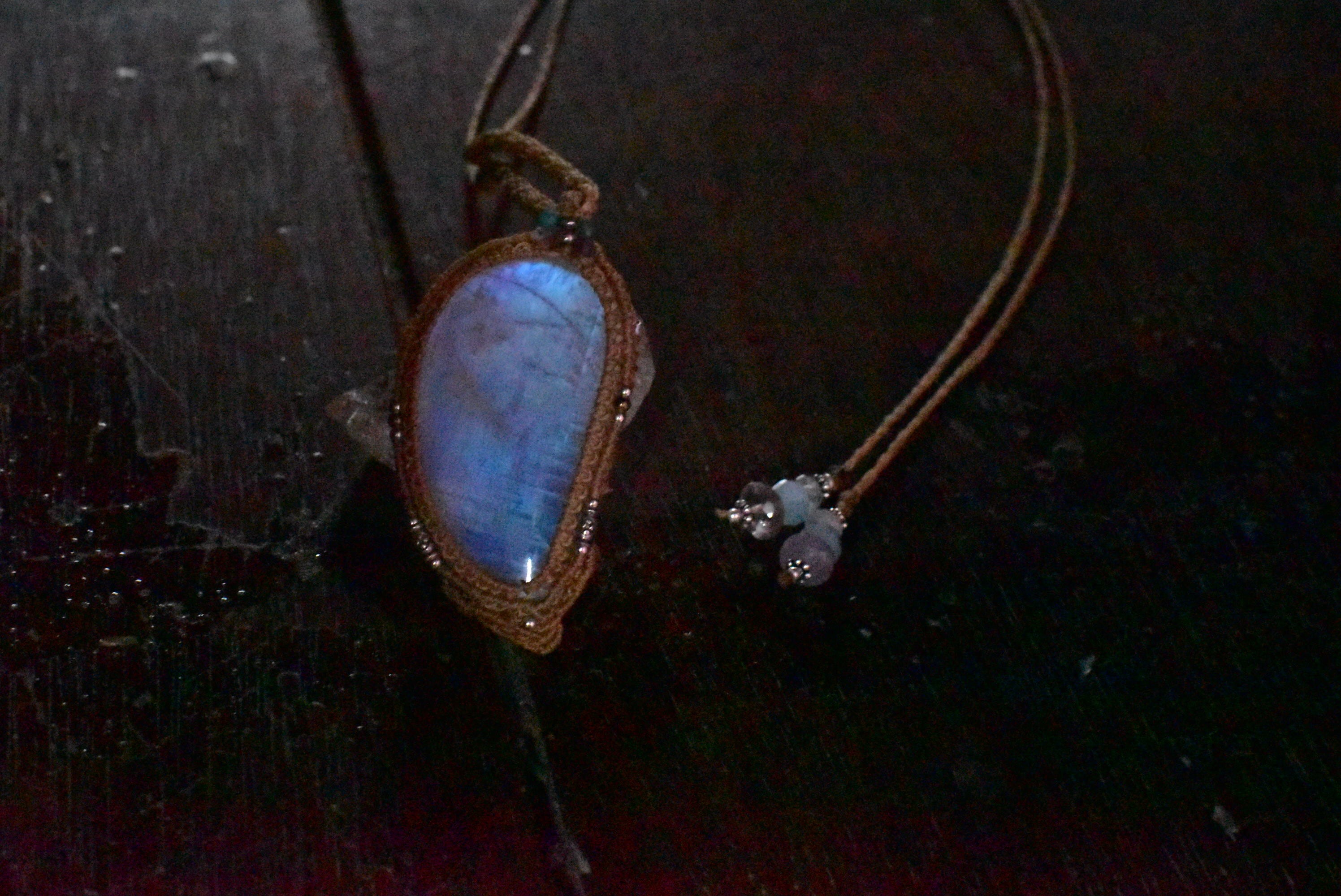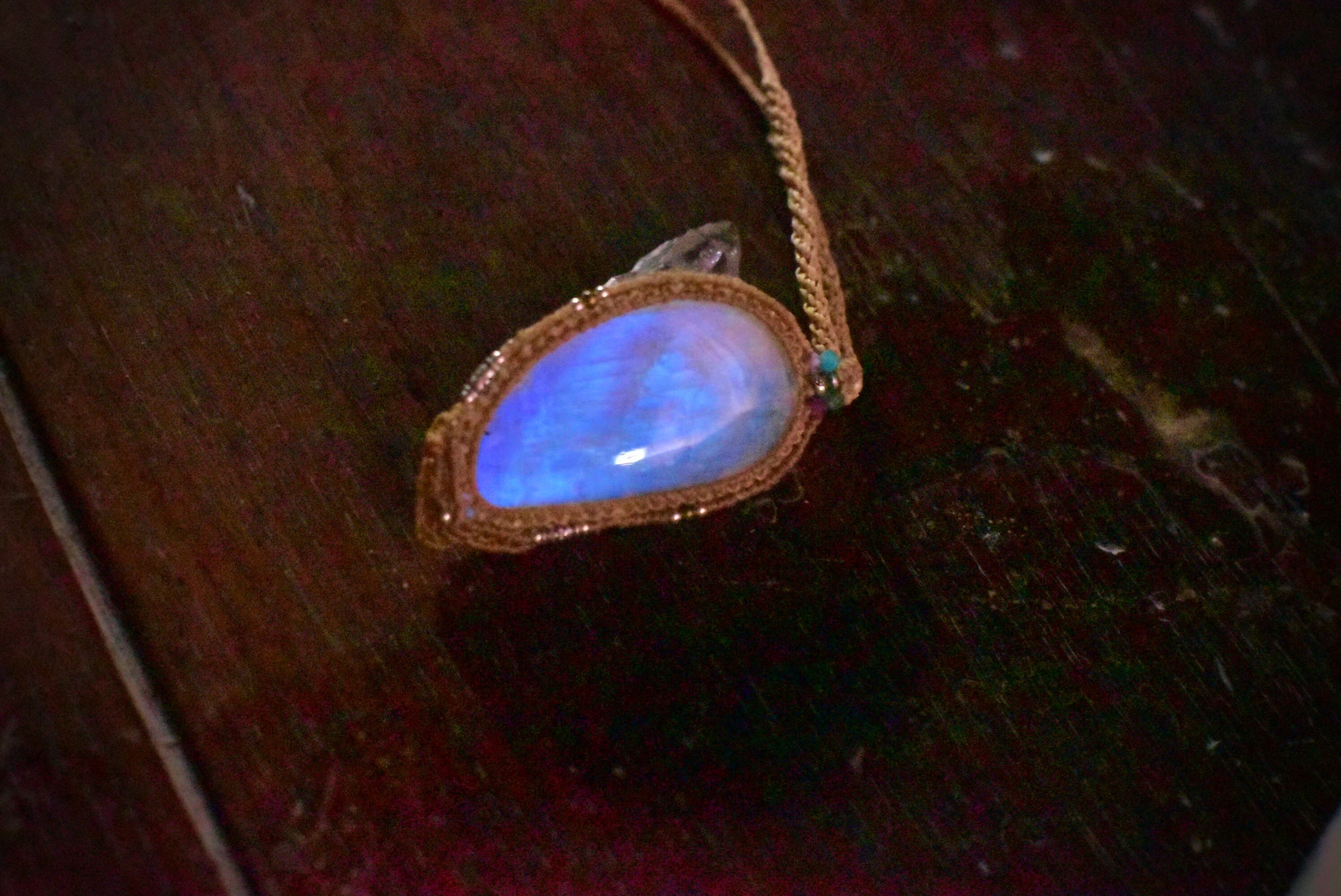 月のしずく★大粒高品質★ムーンストーン マクラメペンダントmoon020