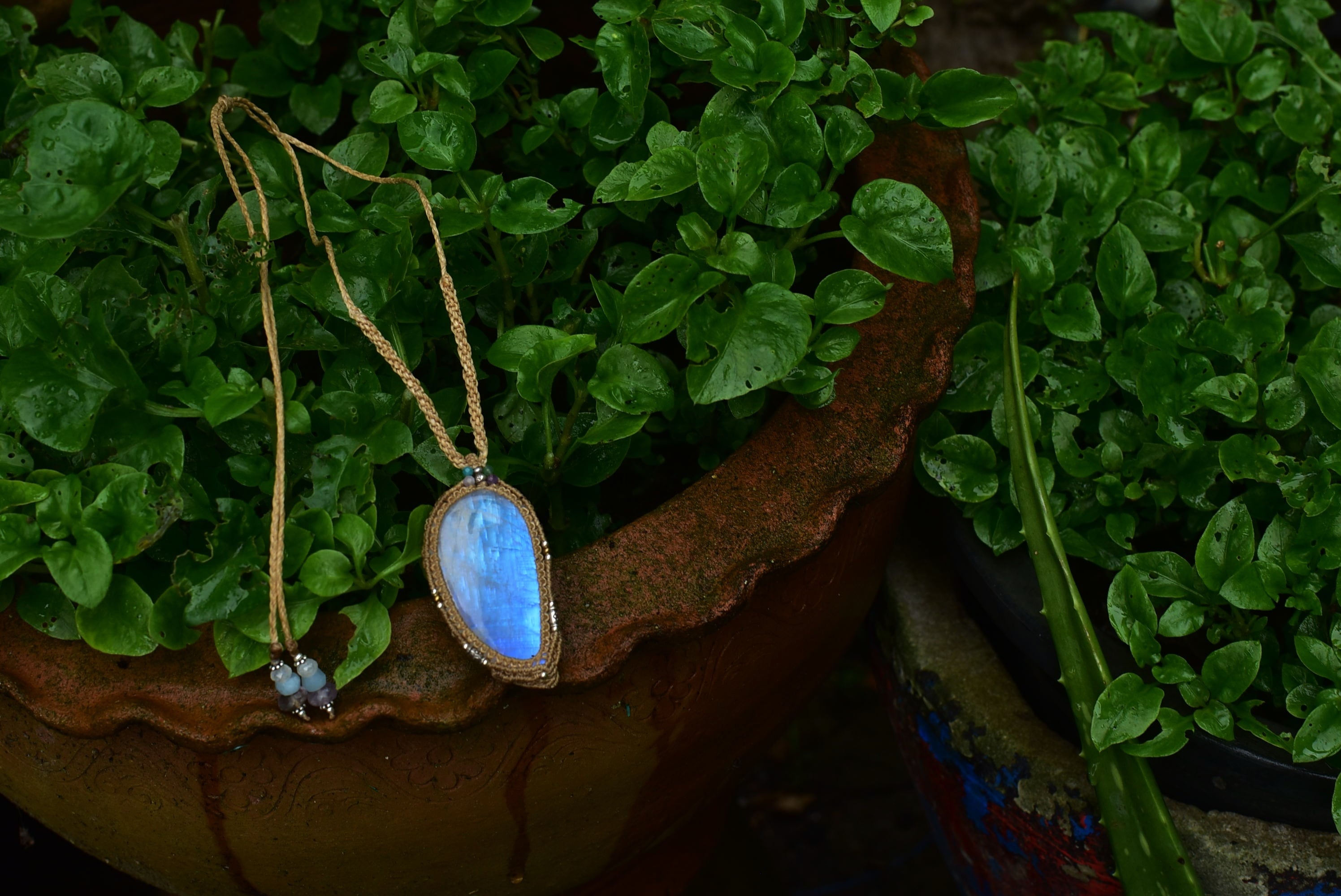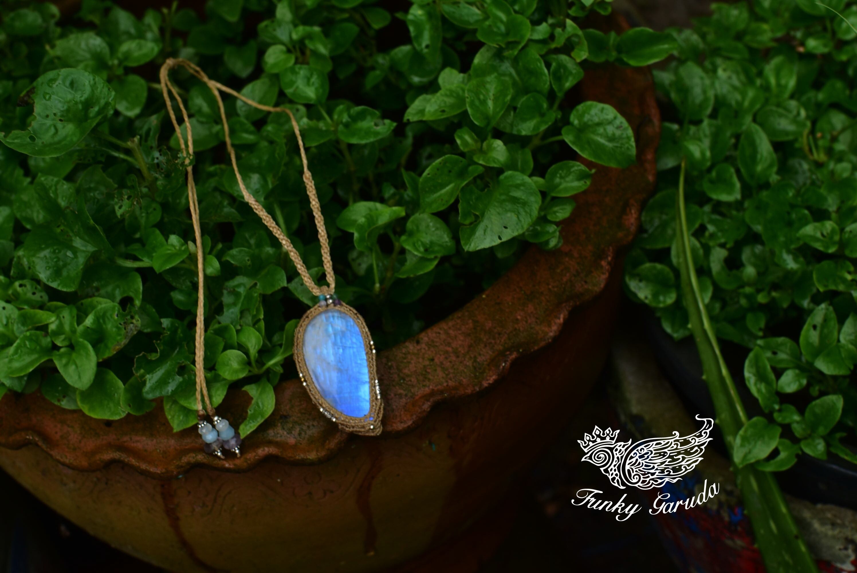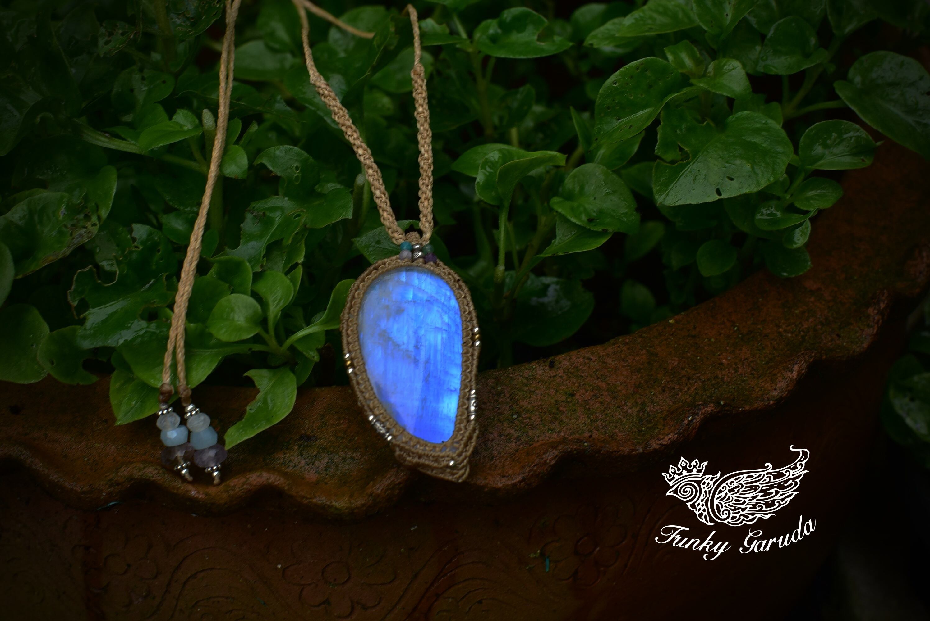 月のしずく★大粒高品質★ムーンストーン マクラメペンダントmoon020