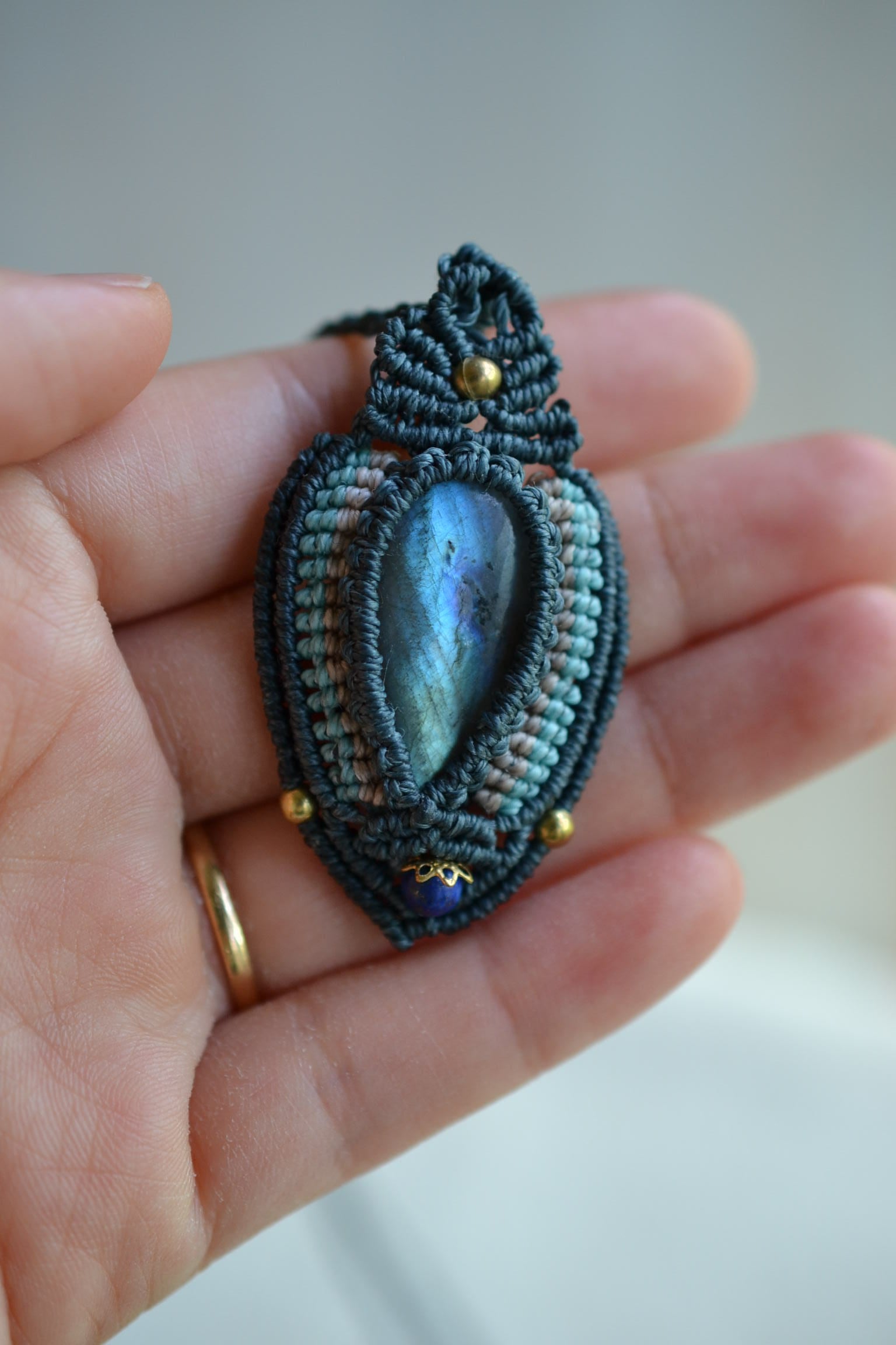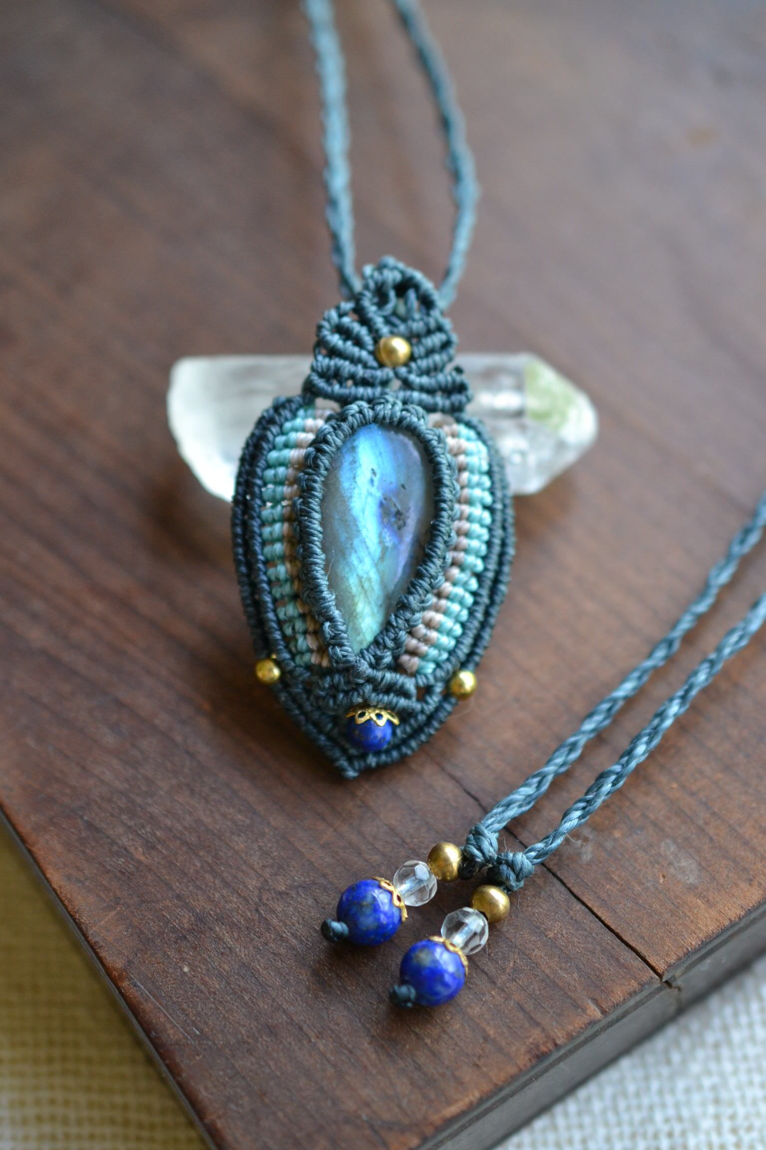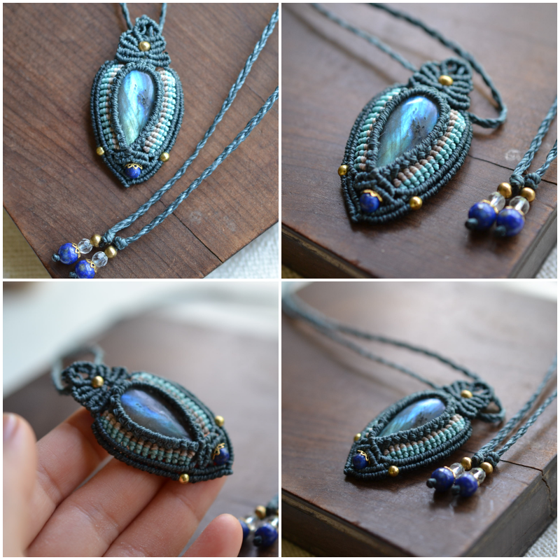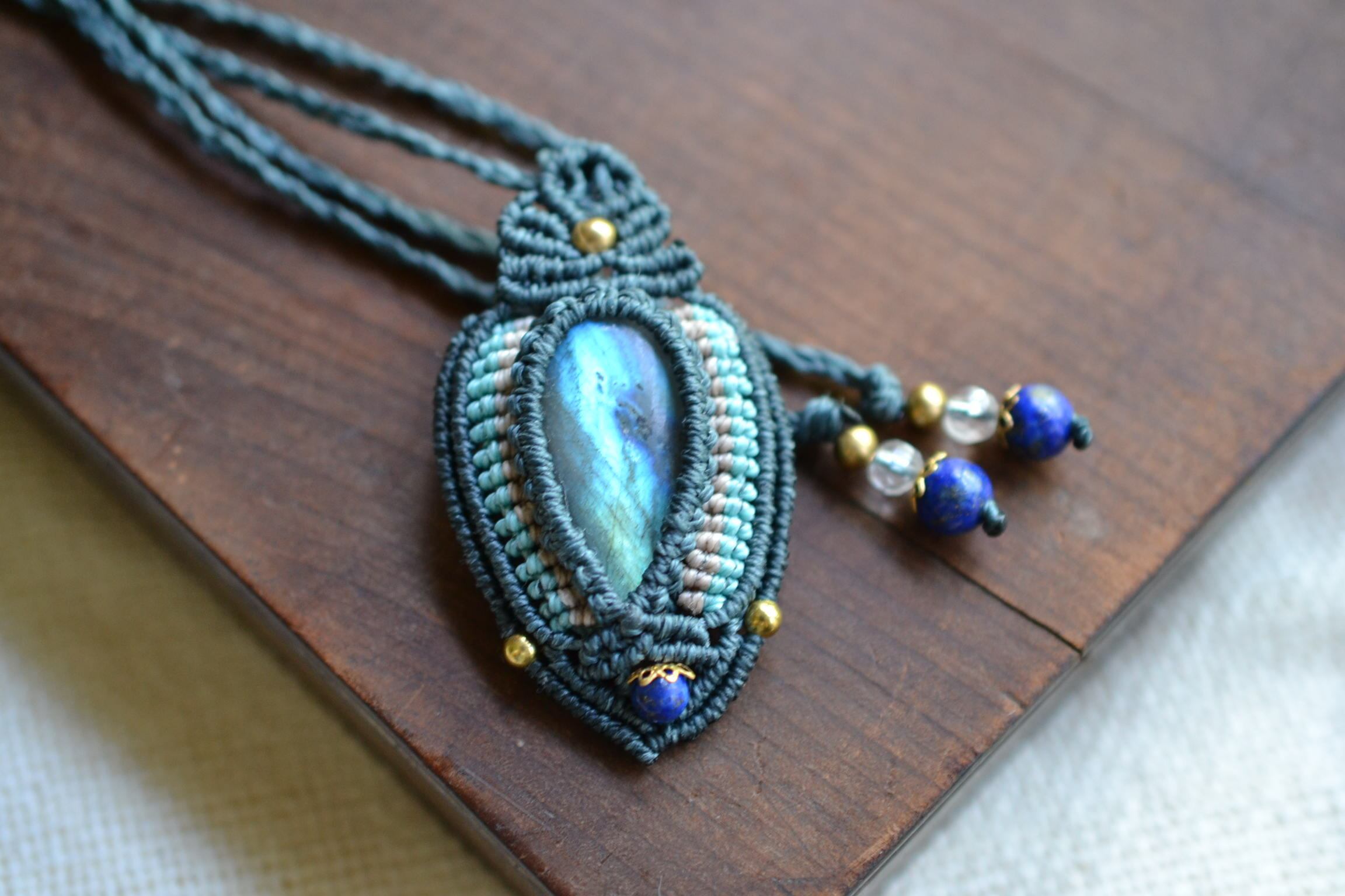 しずく★レインボーラブラドライトマクラメペンダントlabb005