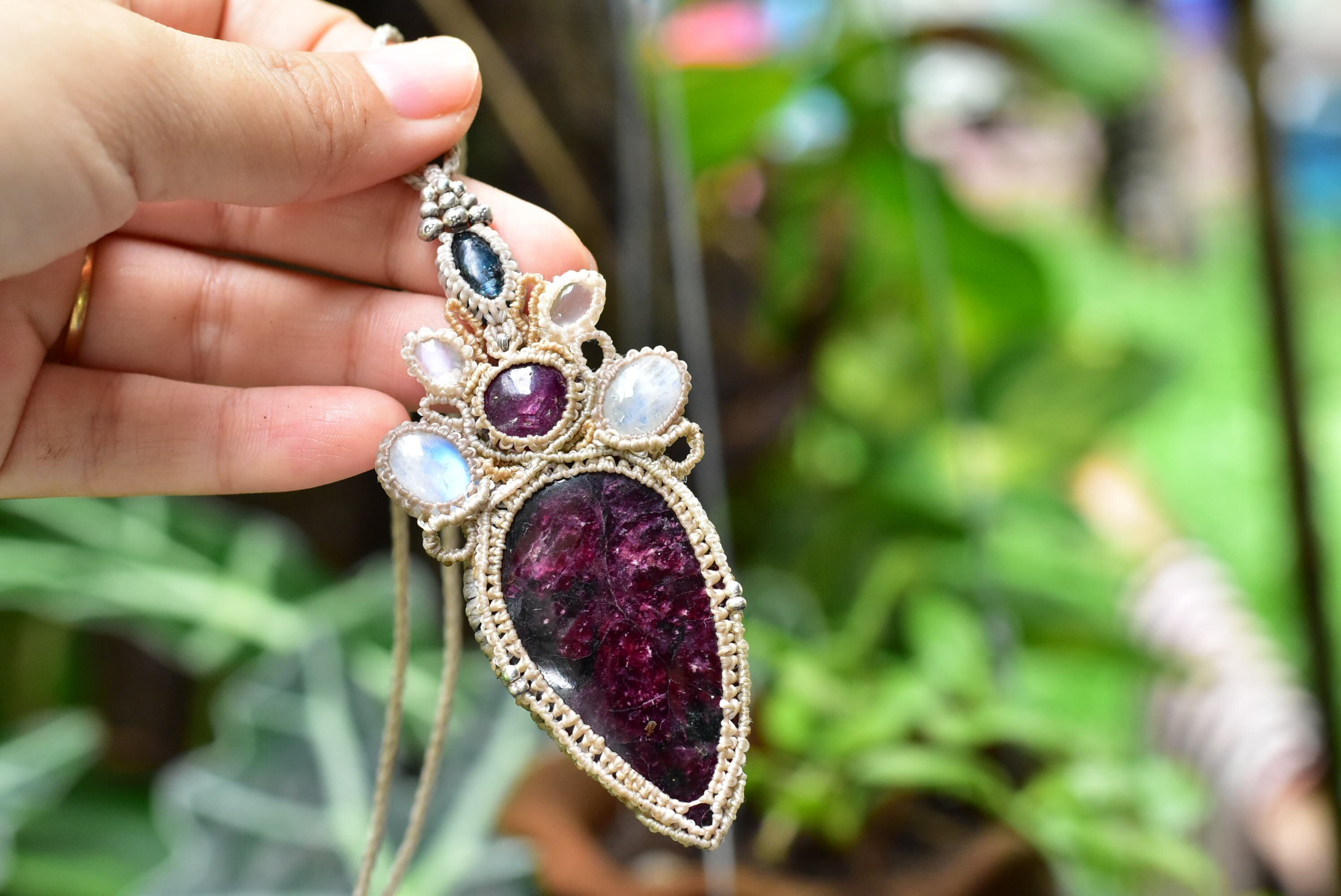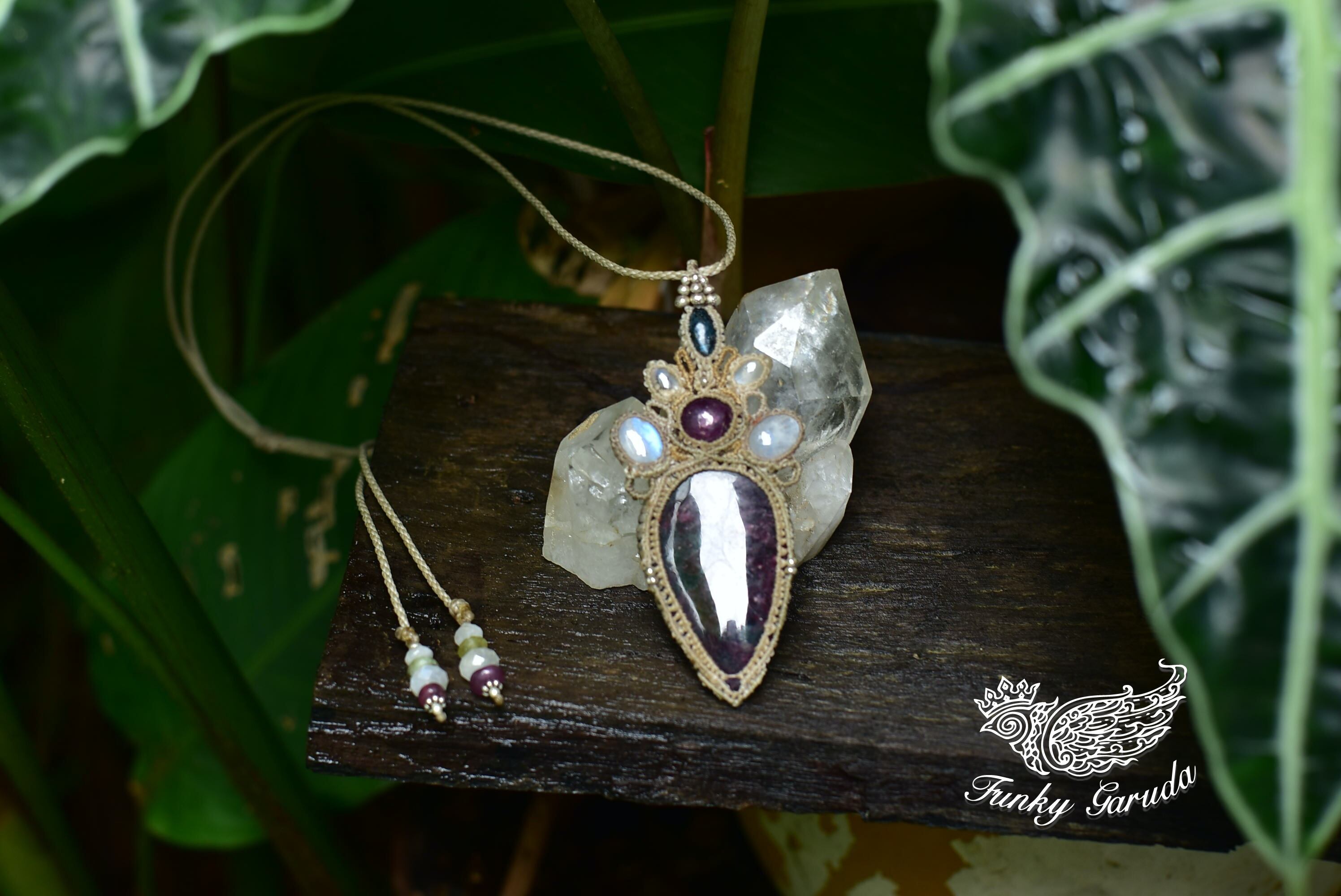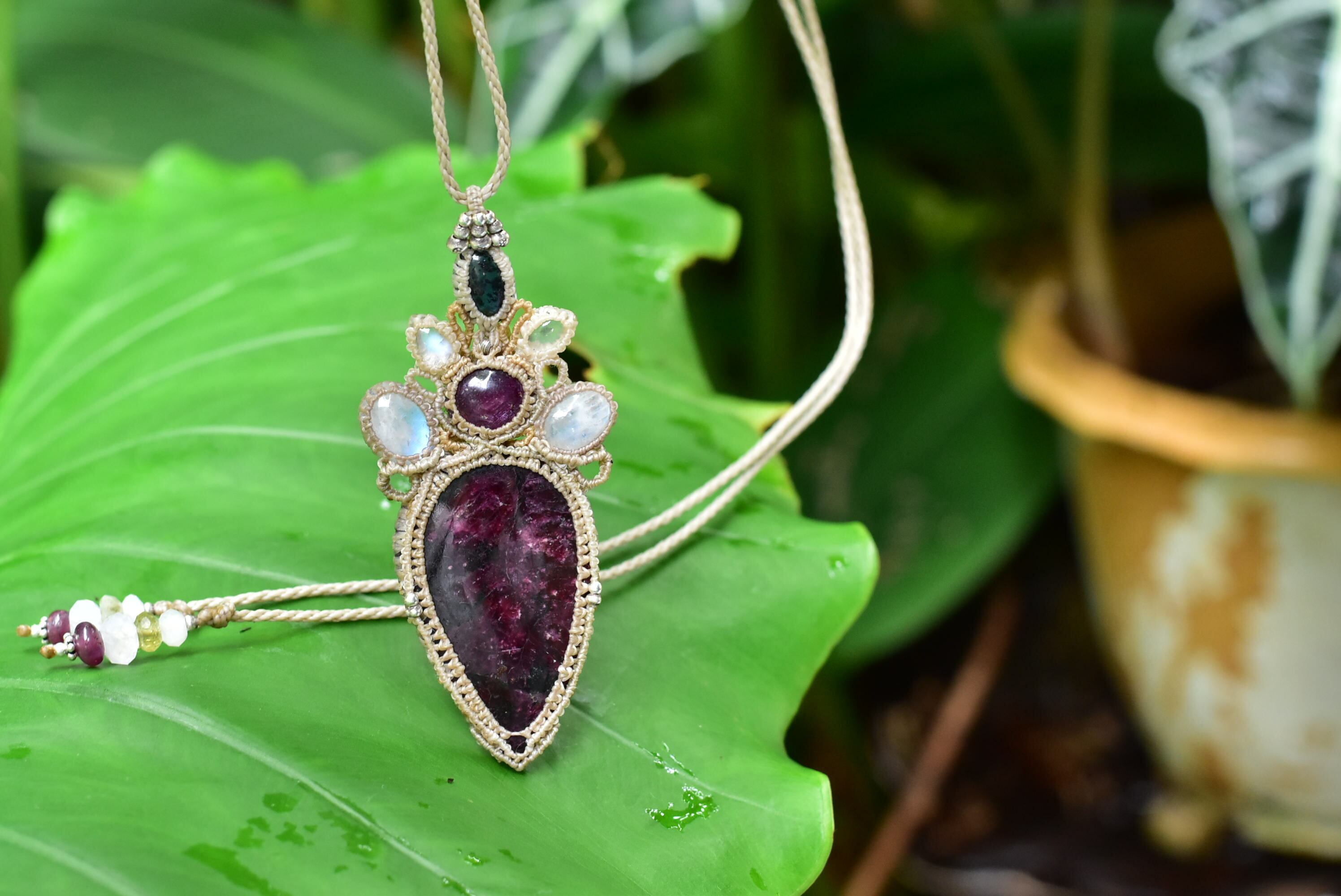 ディープスタールビー★ユーディアライトと小粒宝石 マクラメペンダントud002