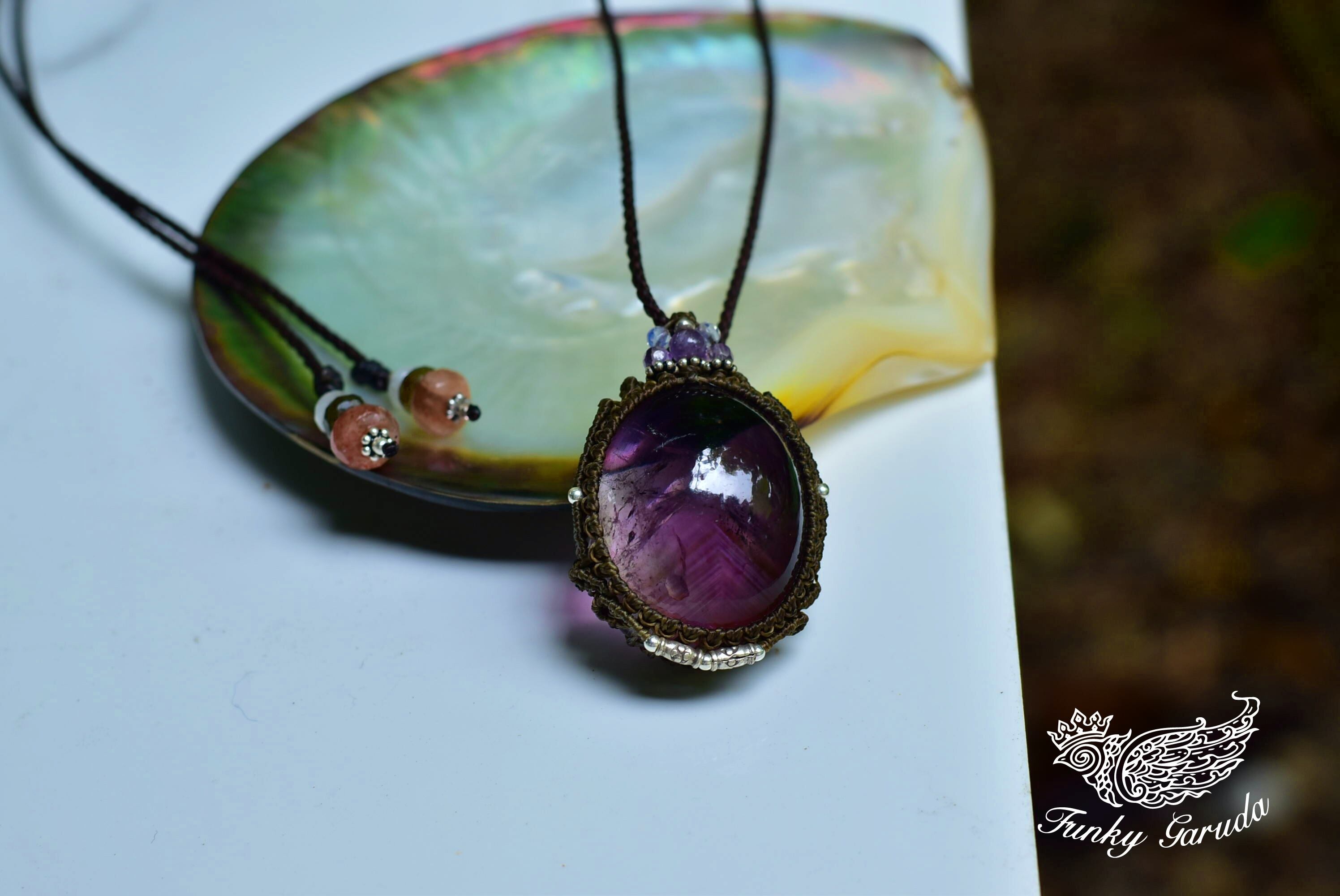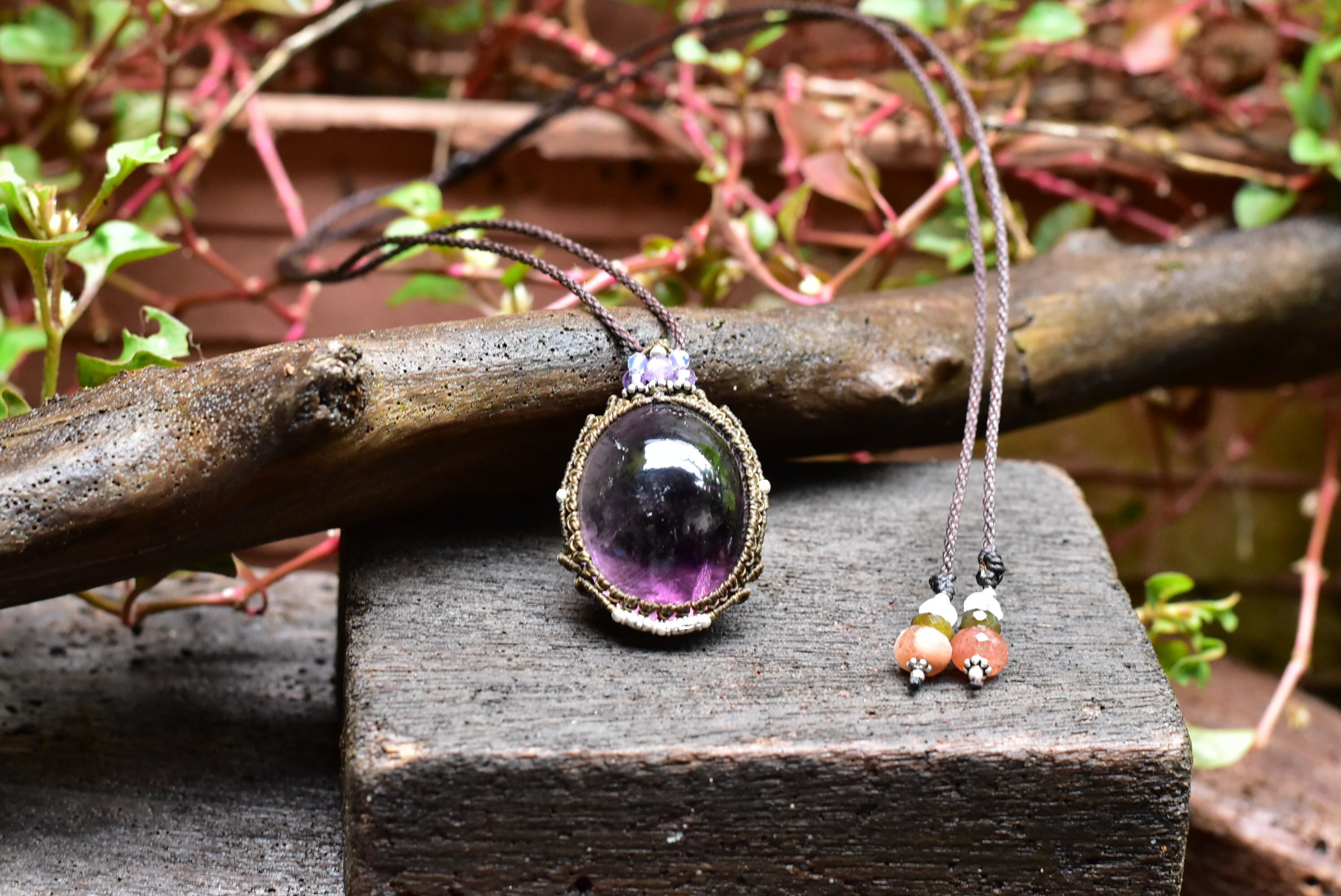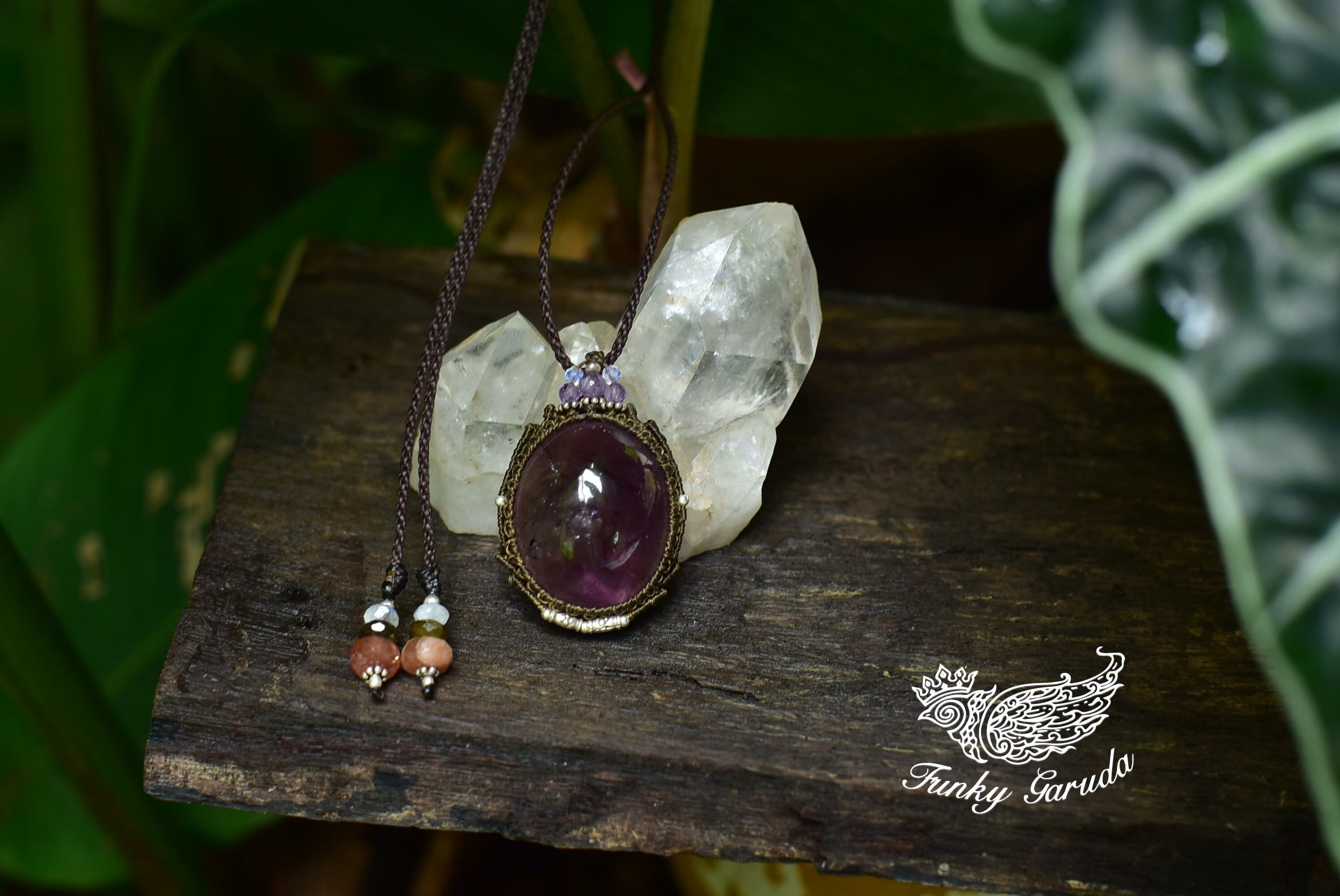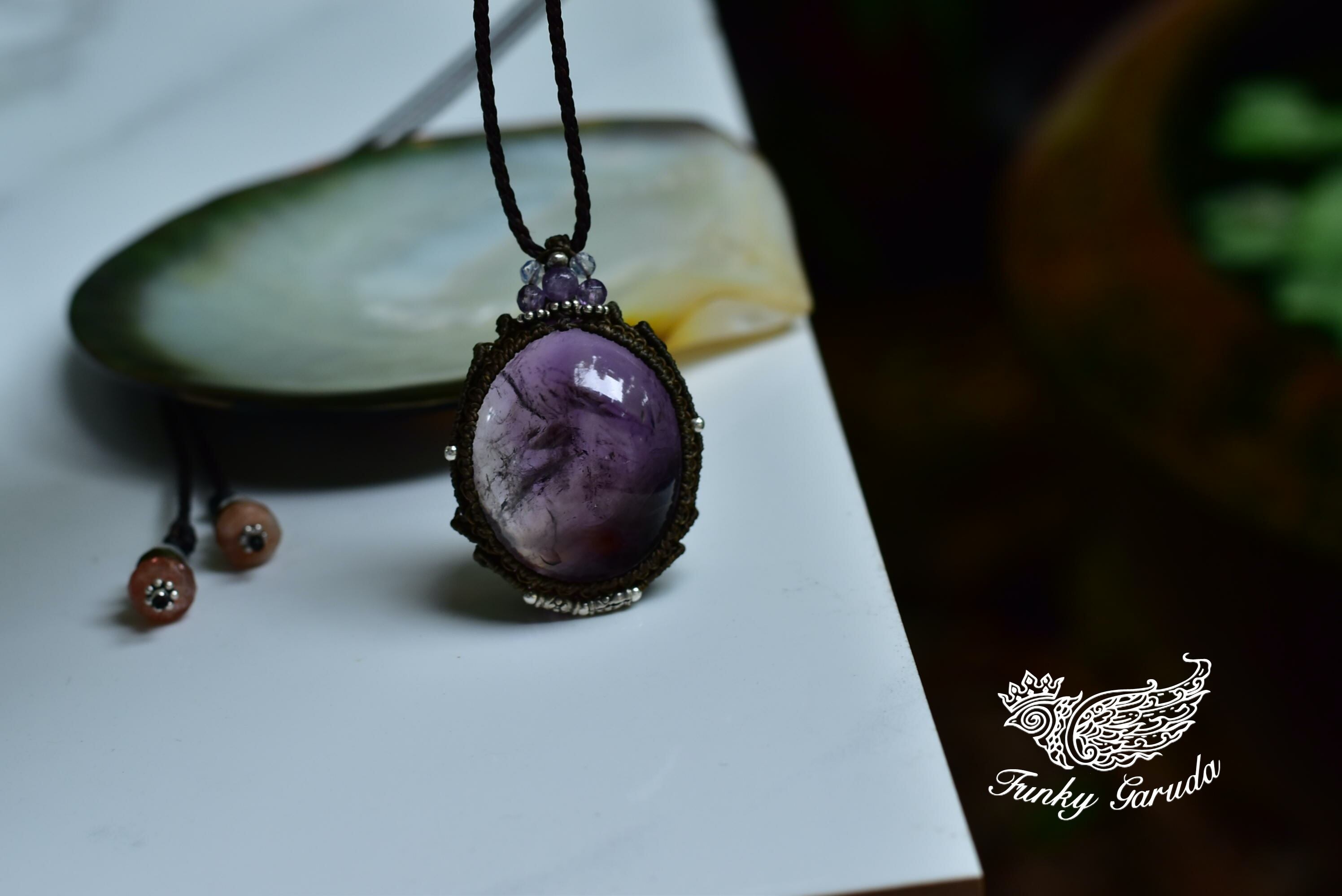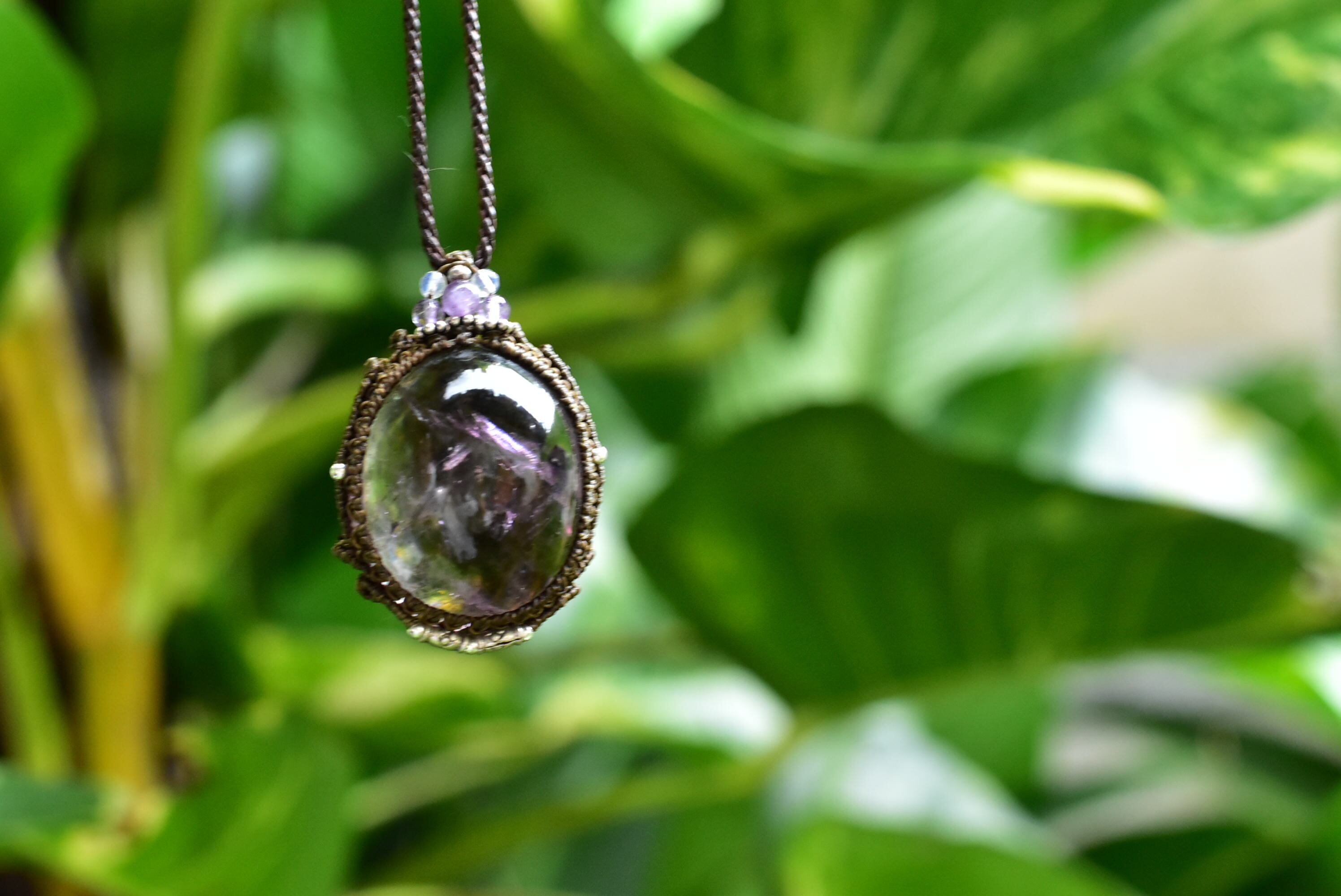 130ct★ハッキリお山★ぷっくり高品質★ファントムアメジスト マクラメペンダントame010