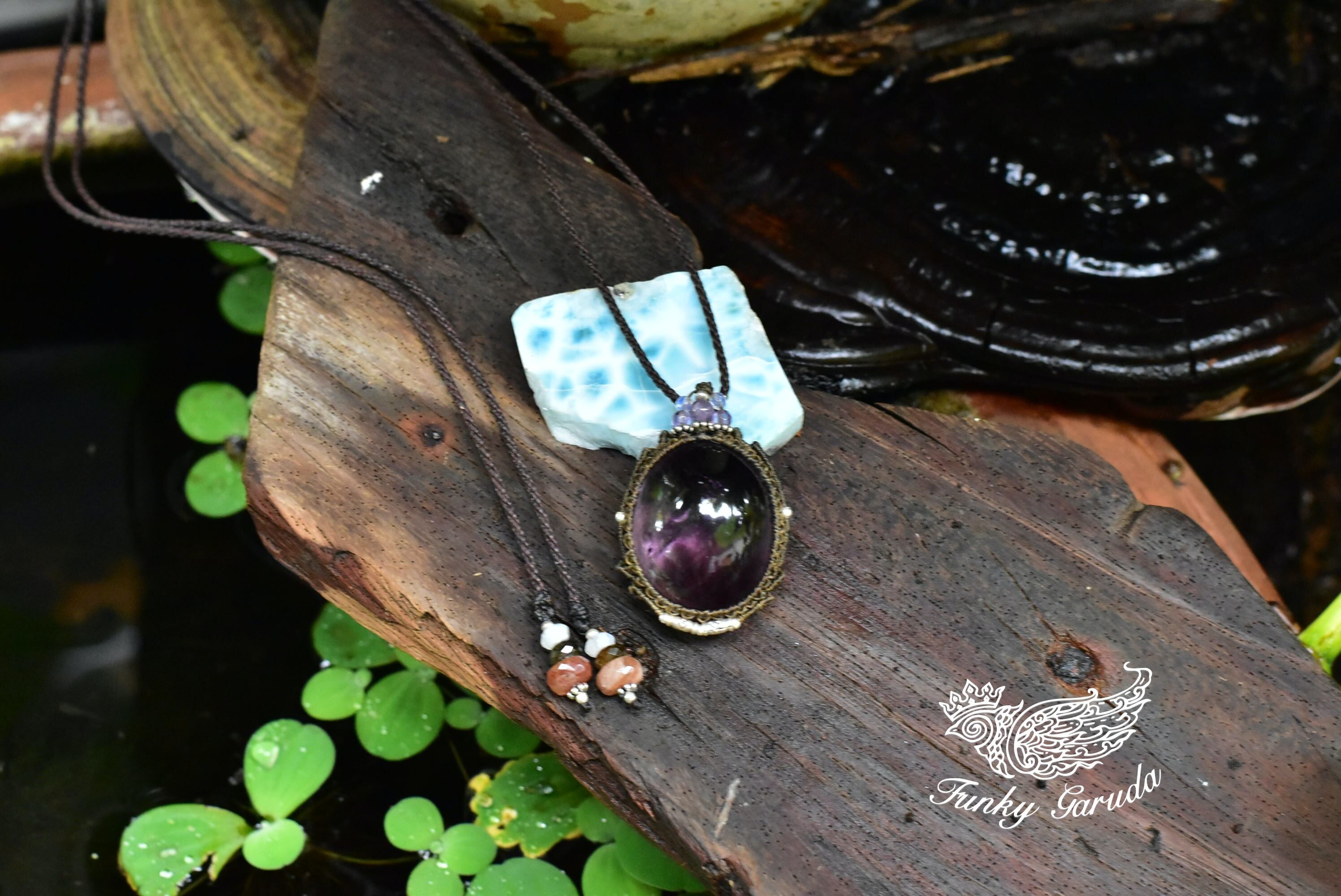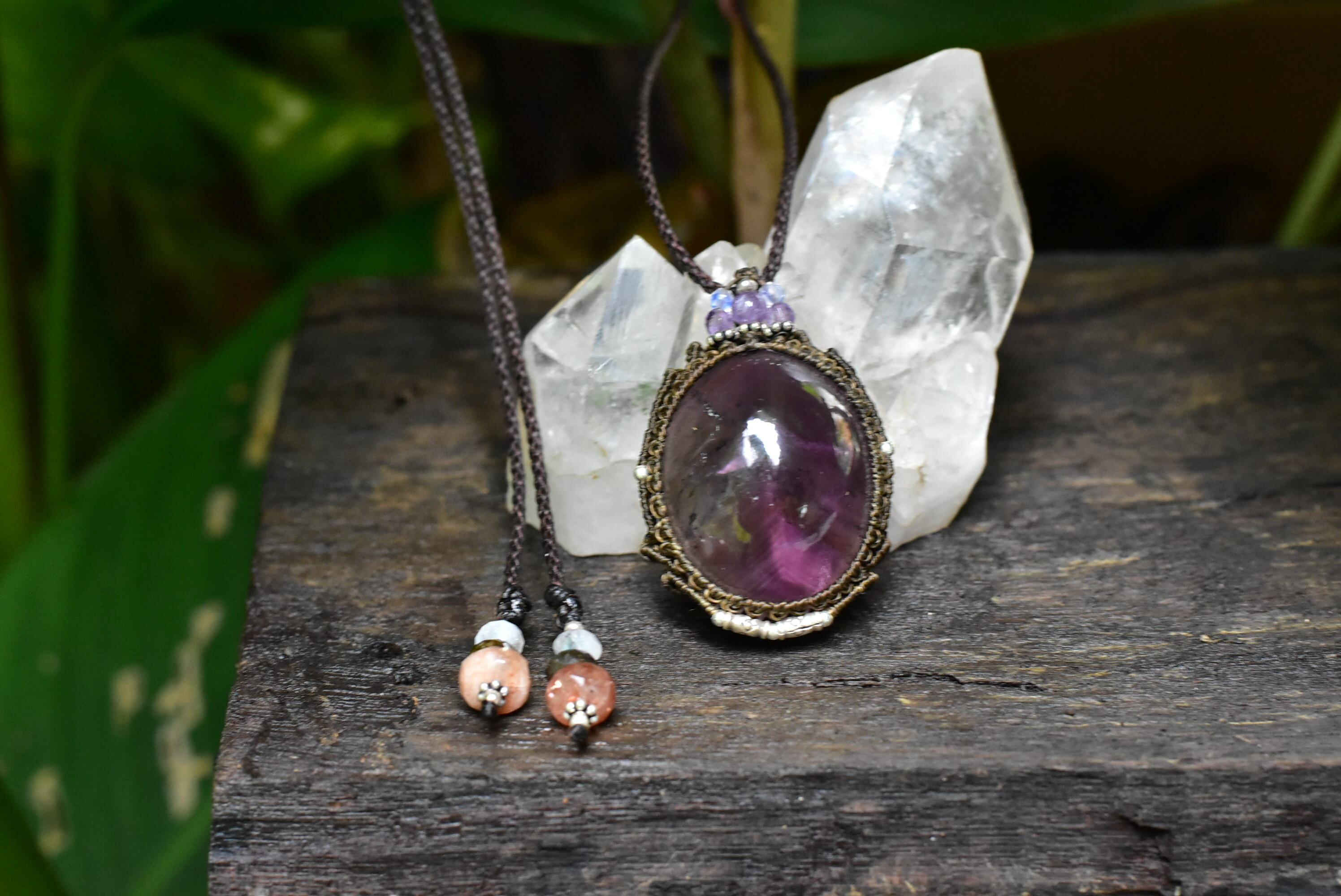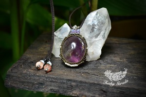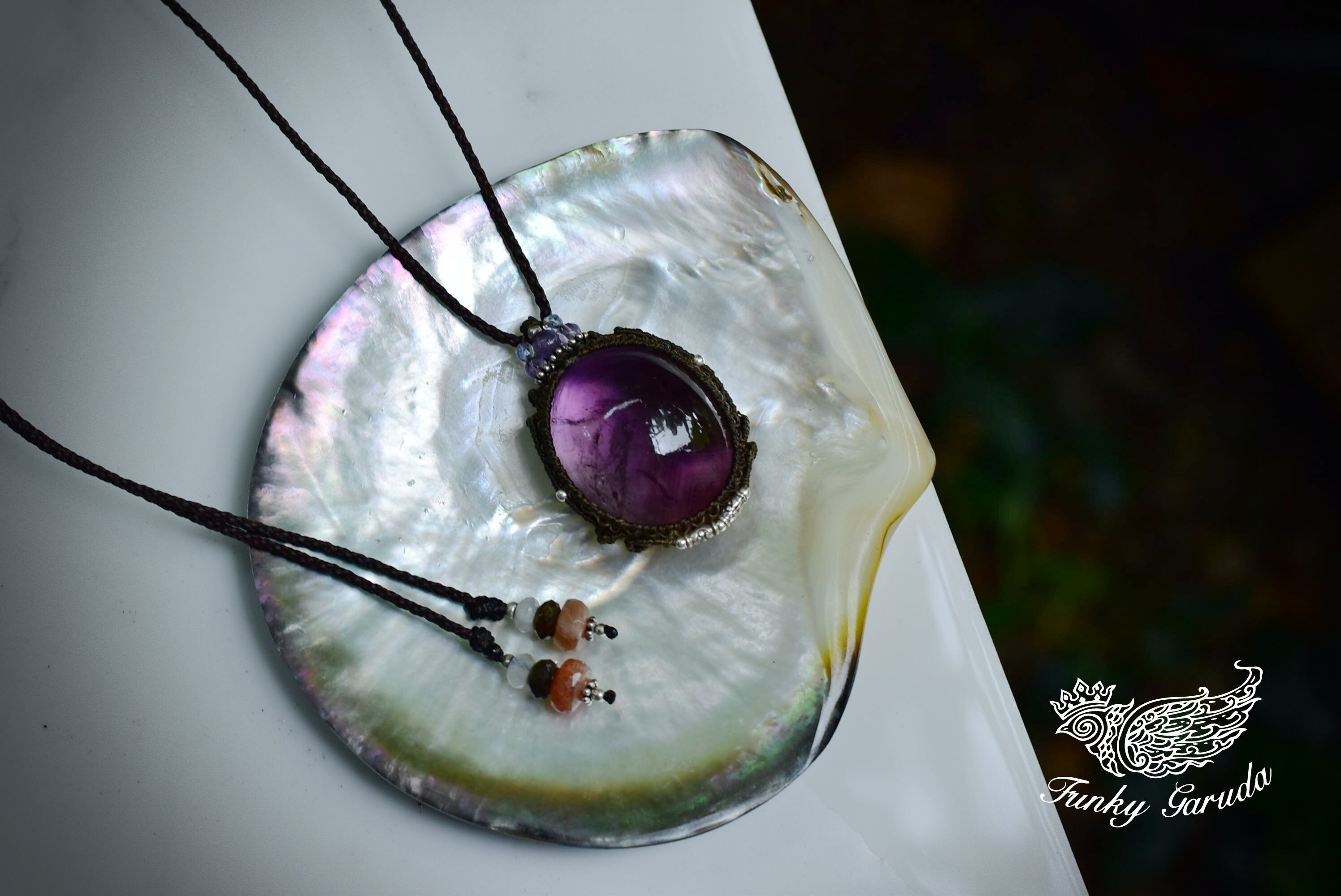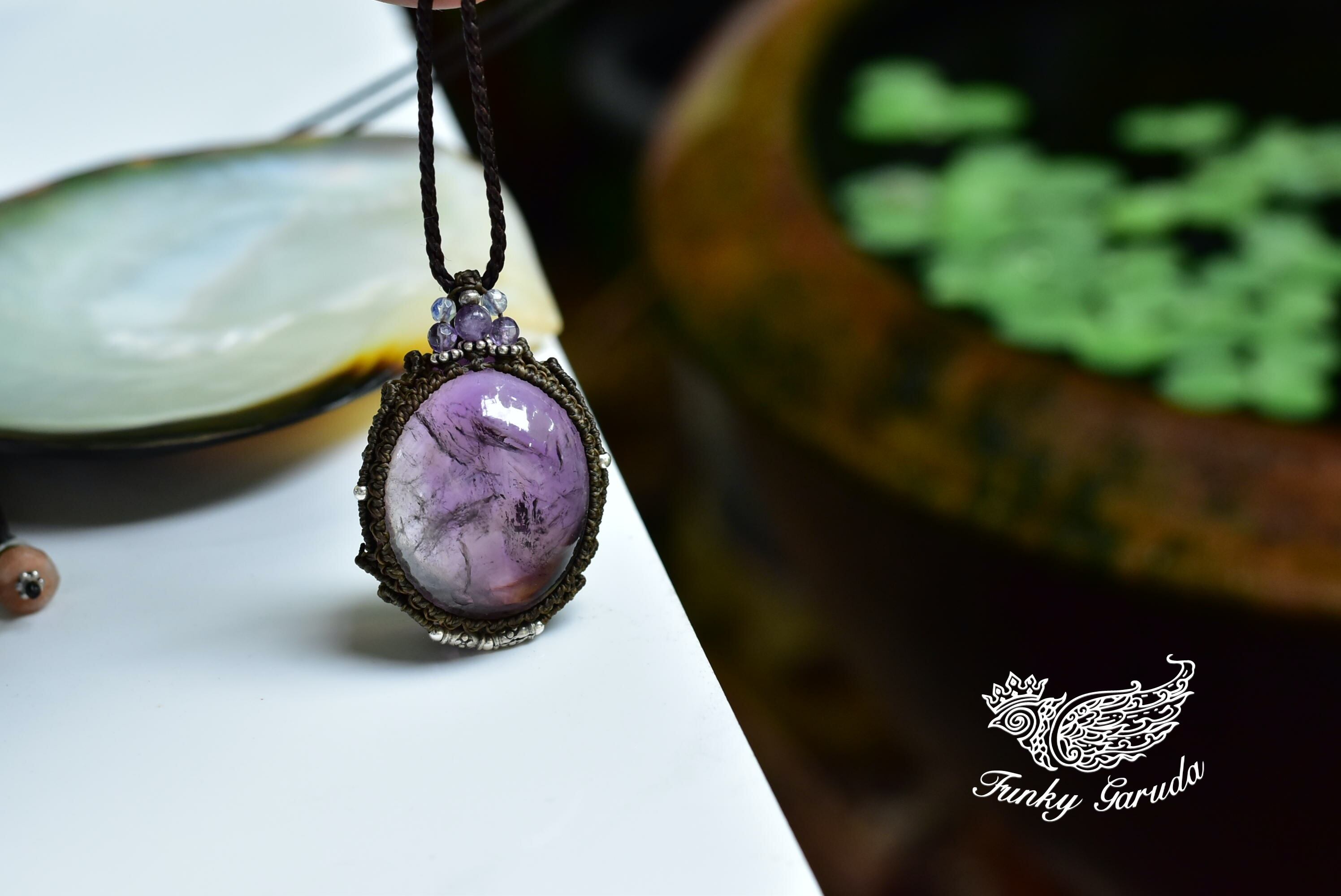 130ct★ハッキリお山★ぷっくり高品質★ファントムアメジスト マクラメペンダントame010