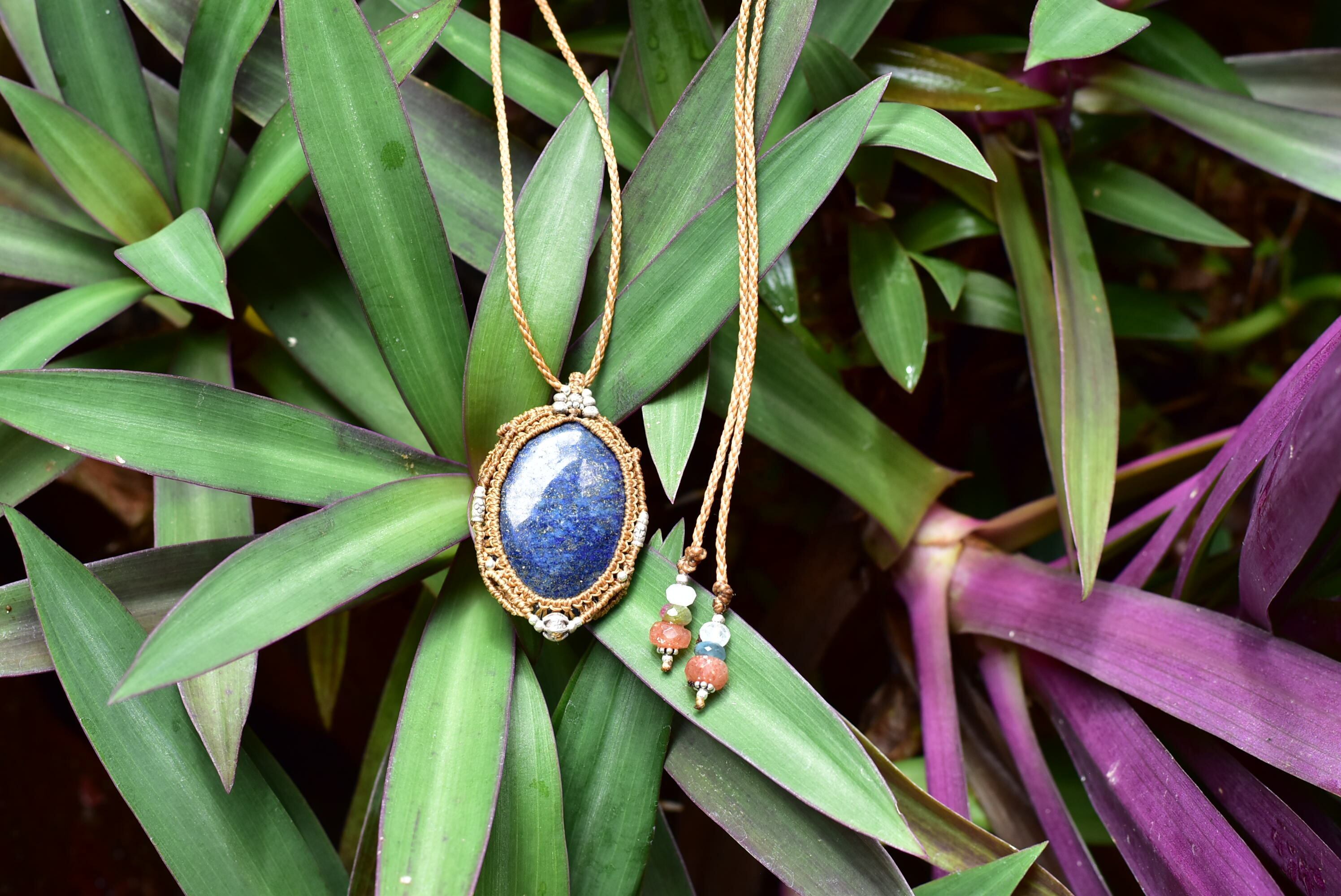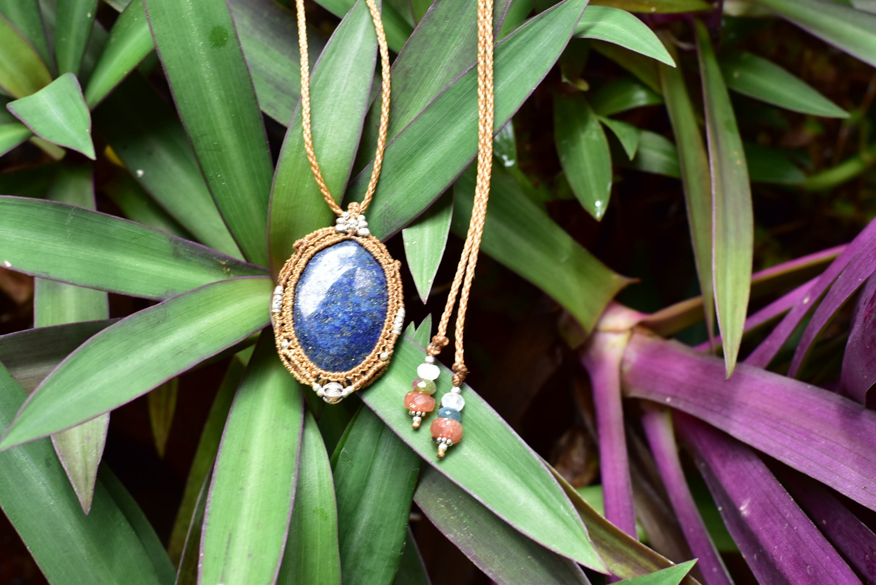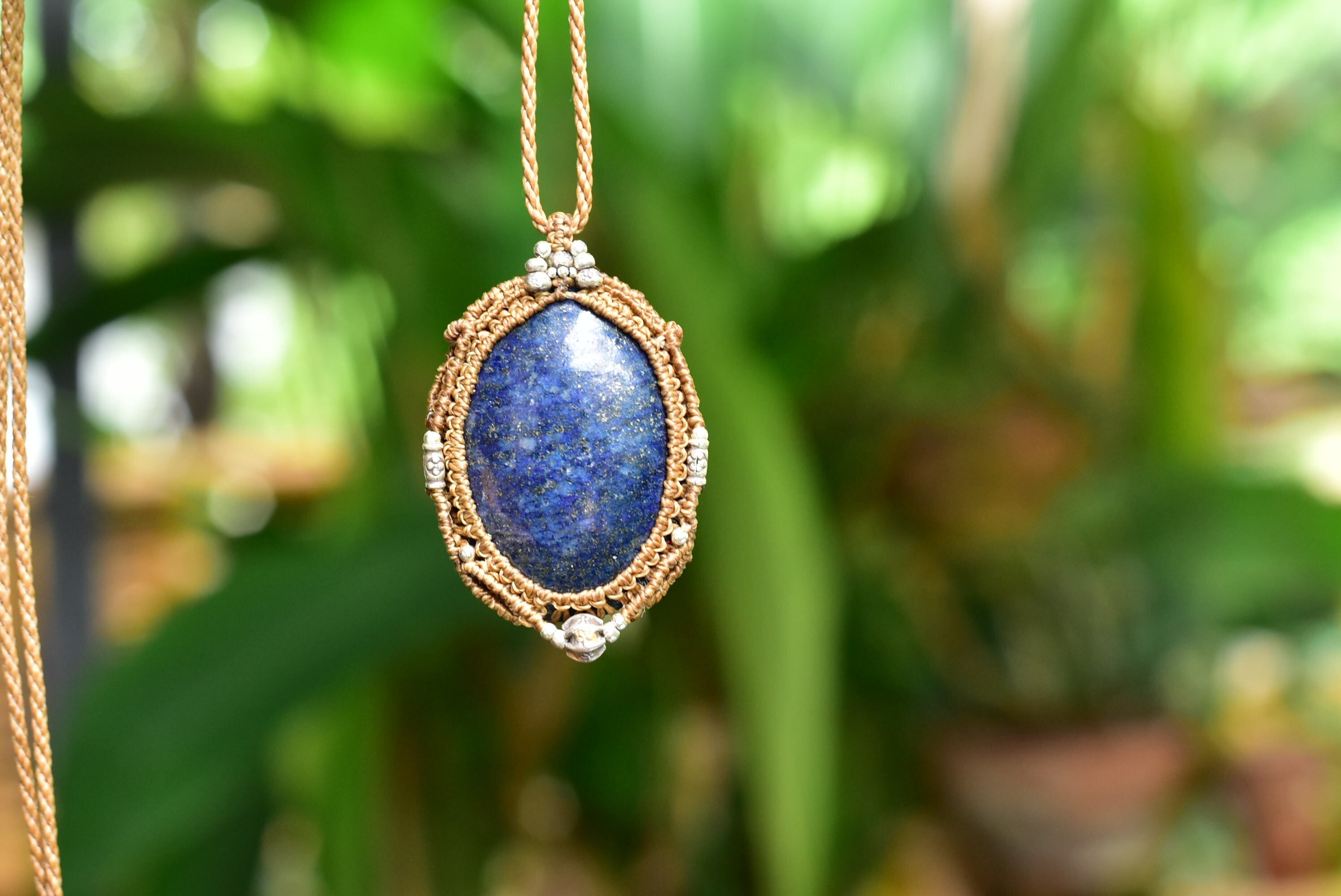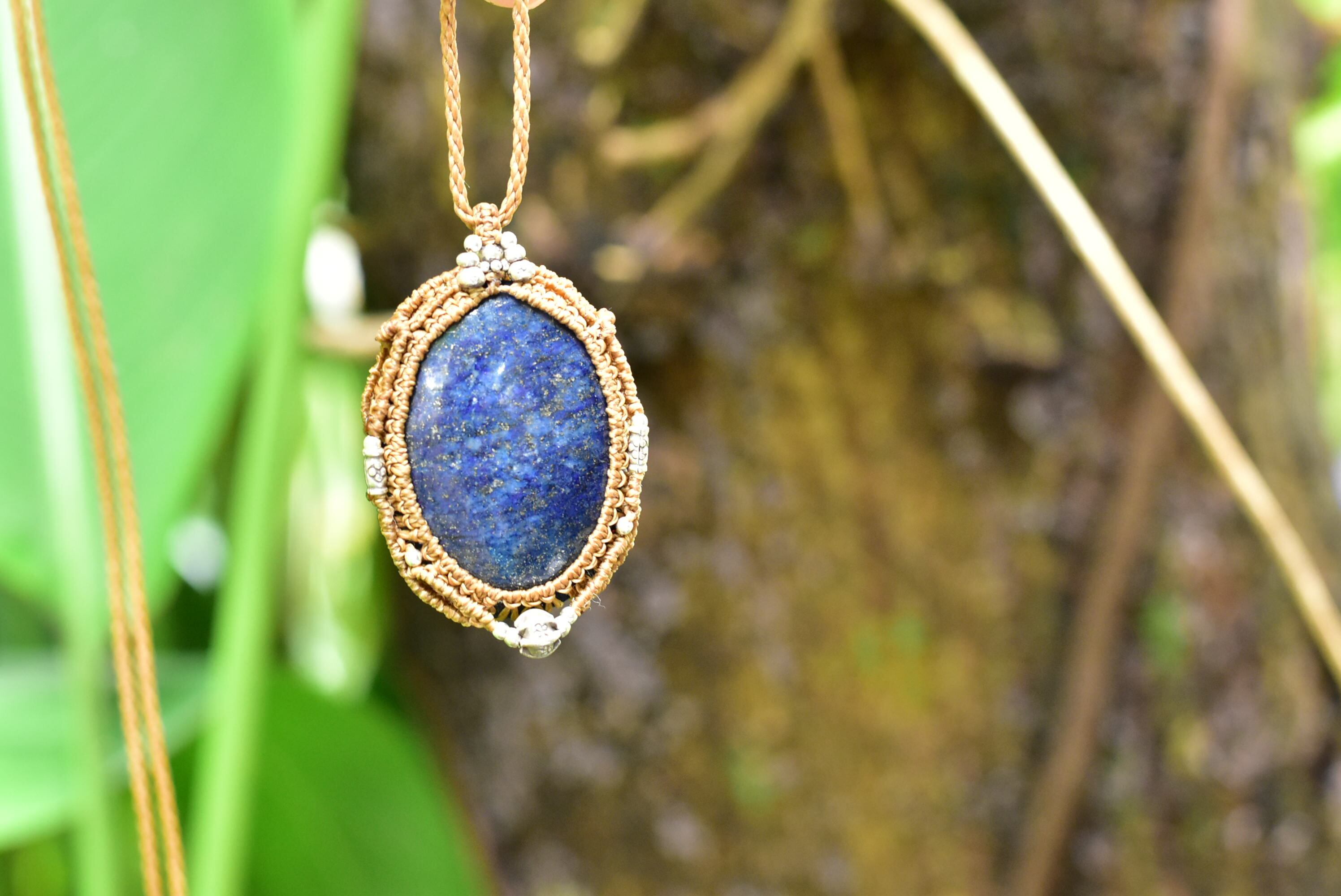 アフガン★ディープブルー★中粒★ラピスラズリ マクラメペンダントlapi007