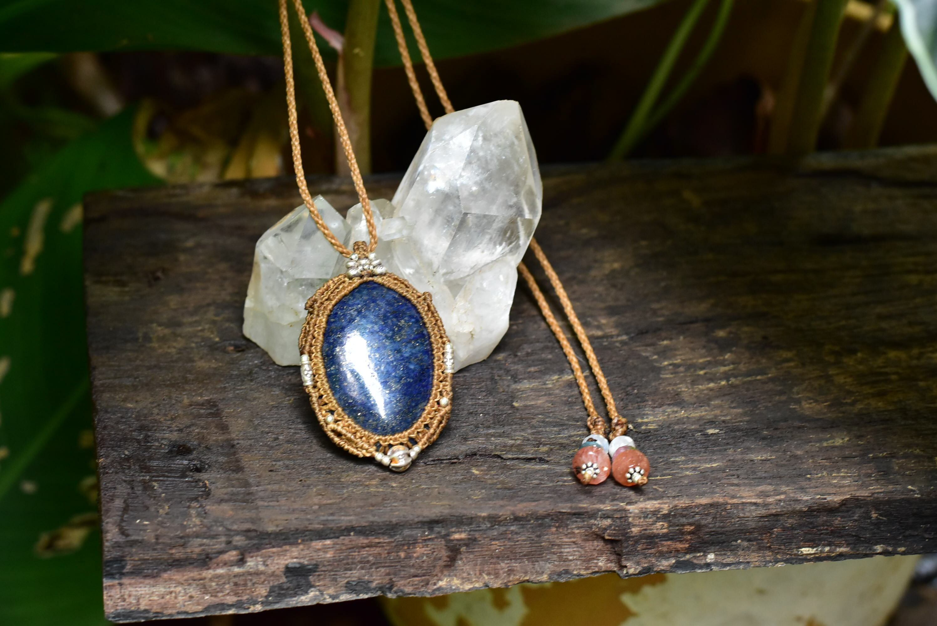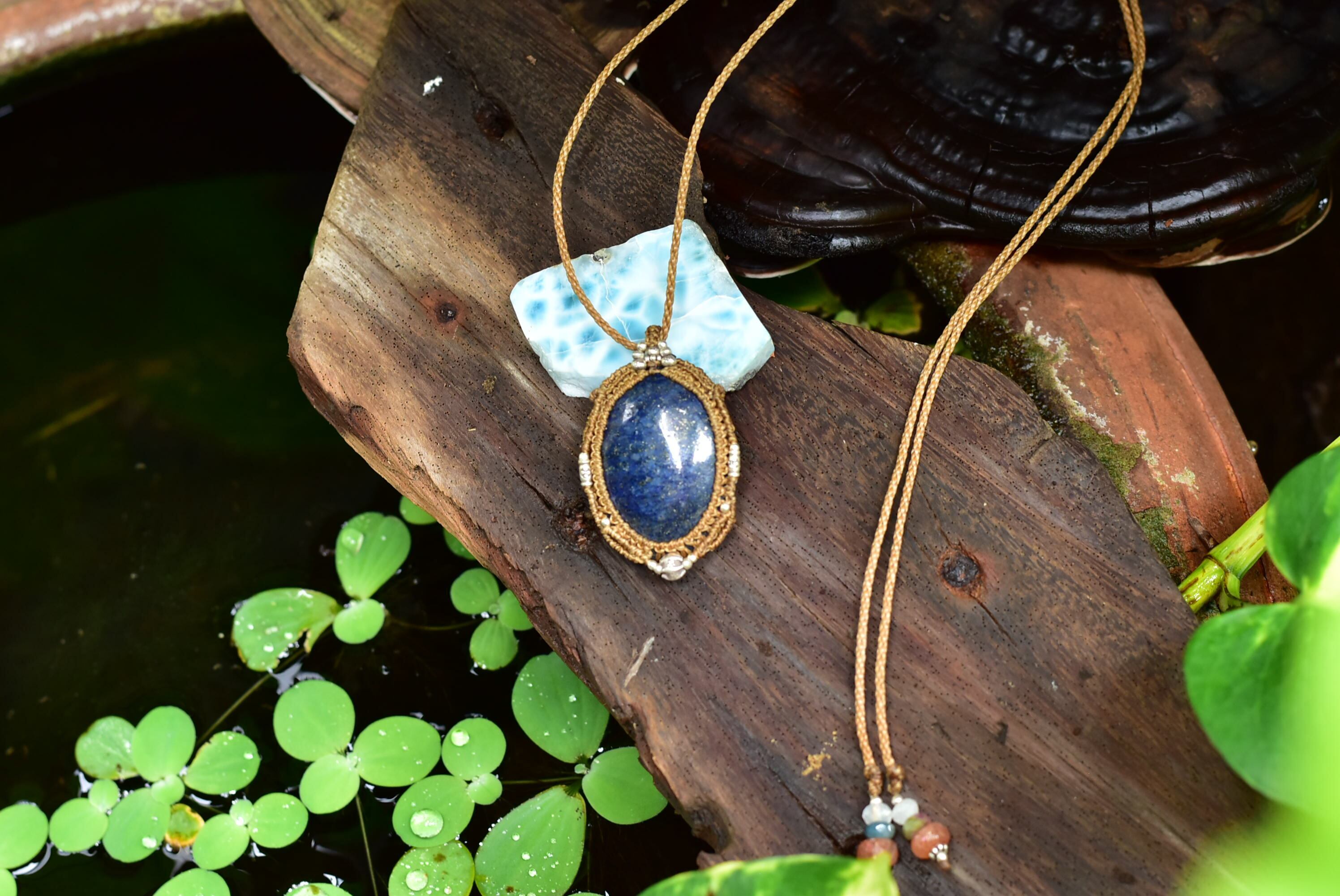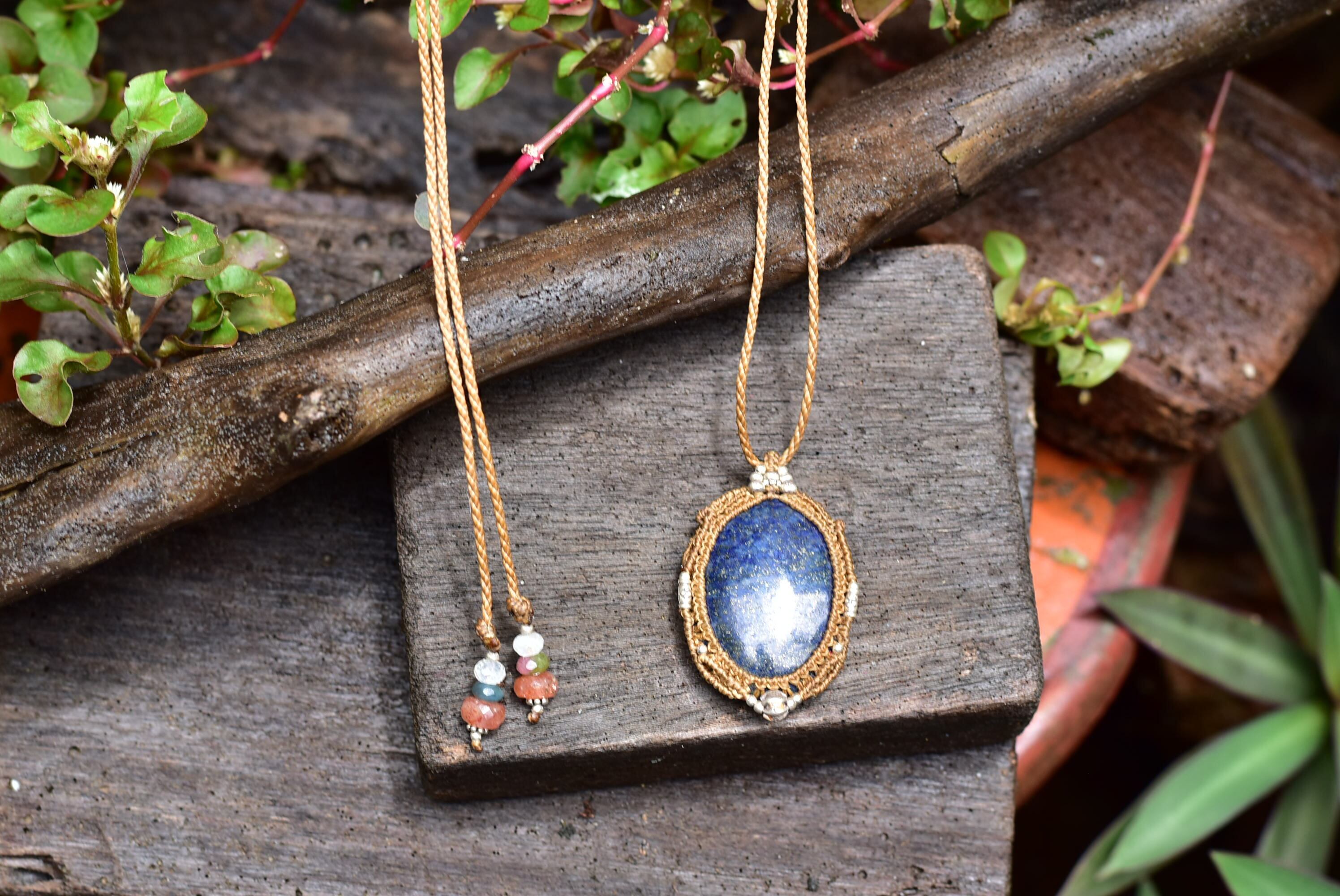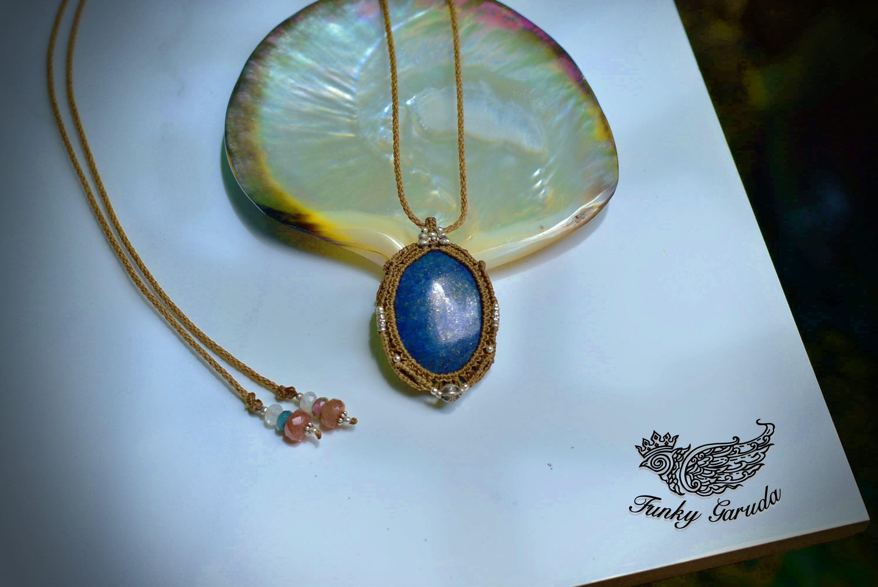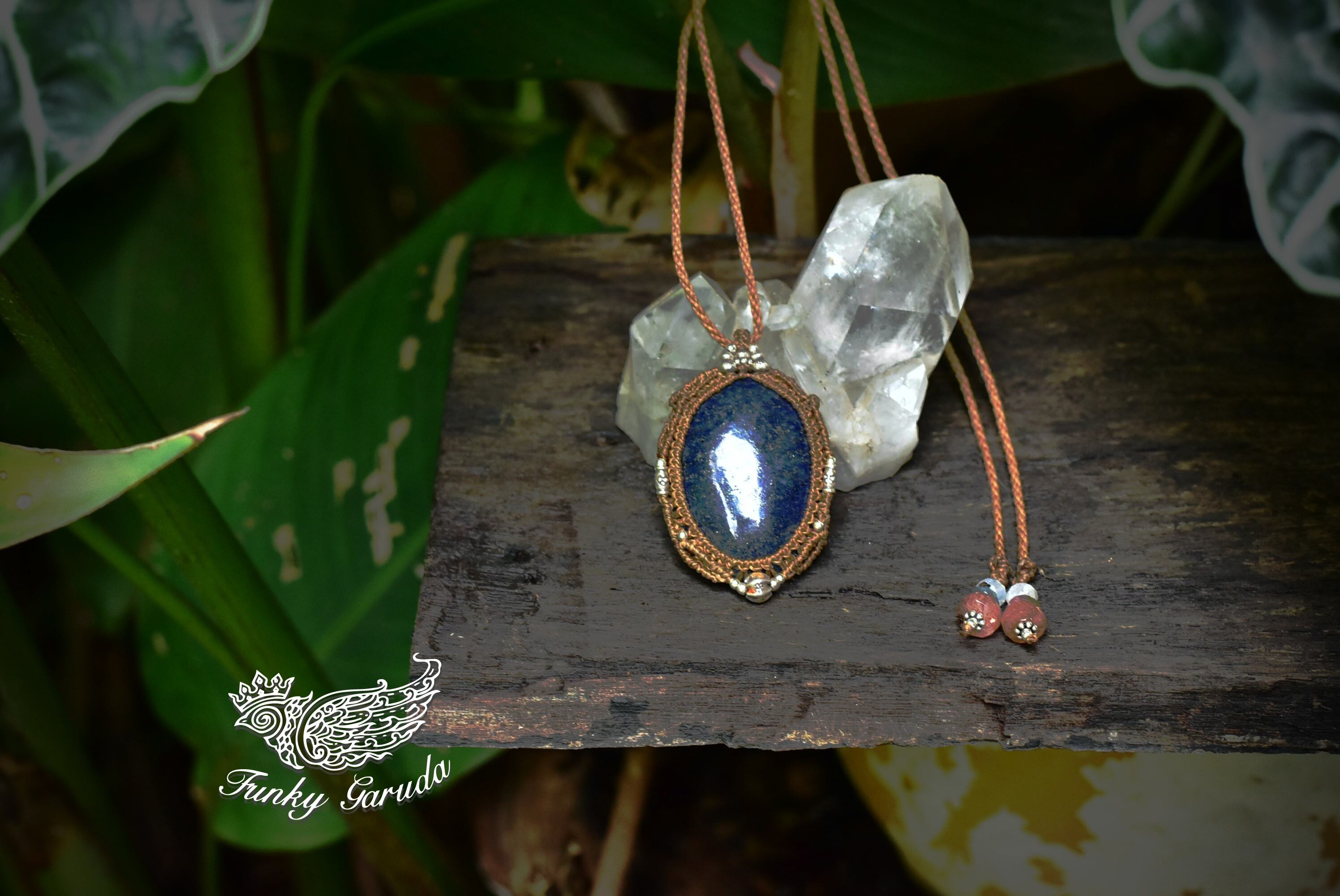 アフガン★ディープブルー★中粒★ラピスラズリ マクラメペンダントlapi007