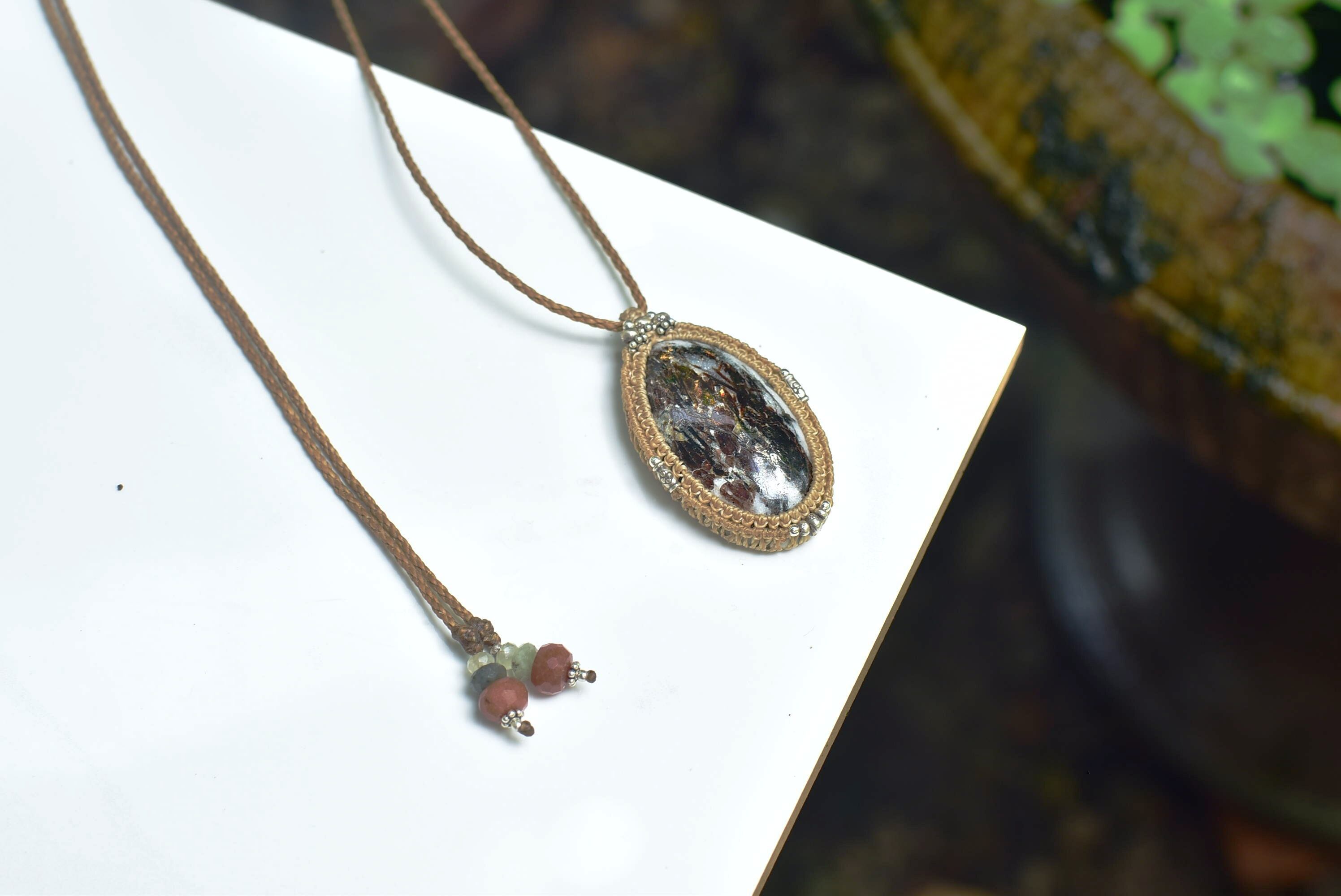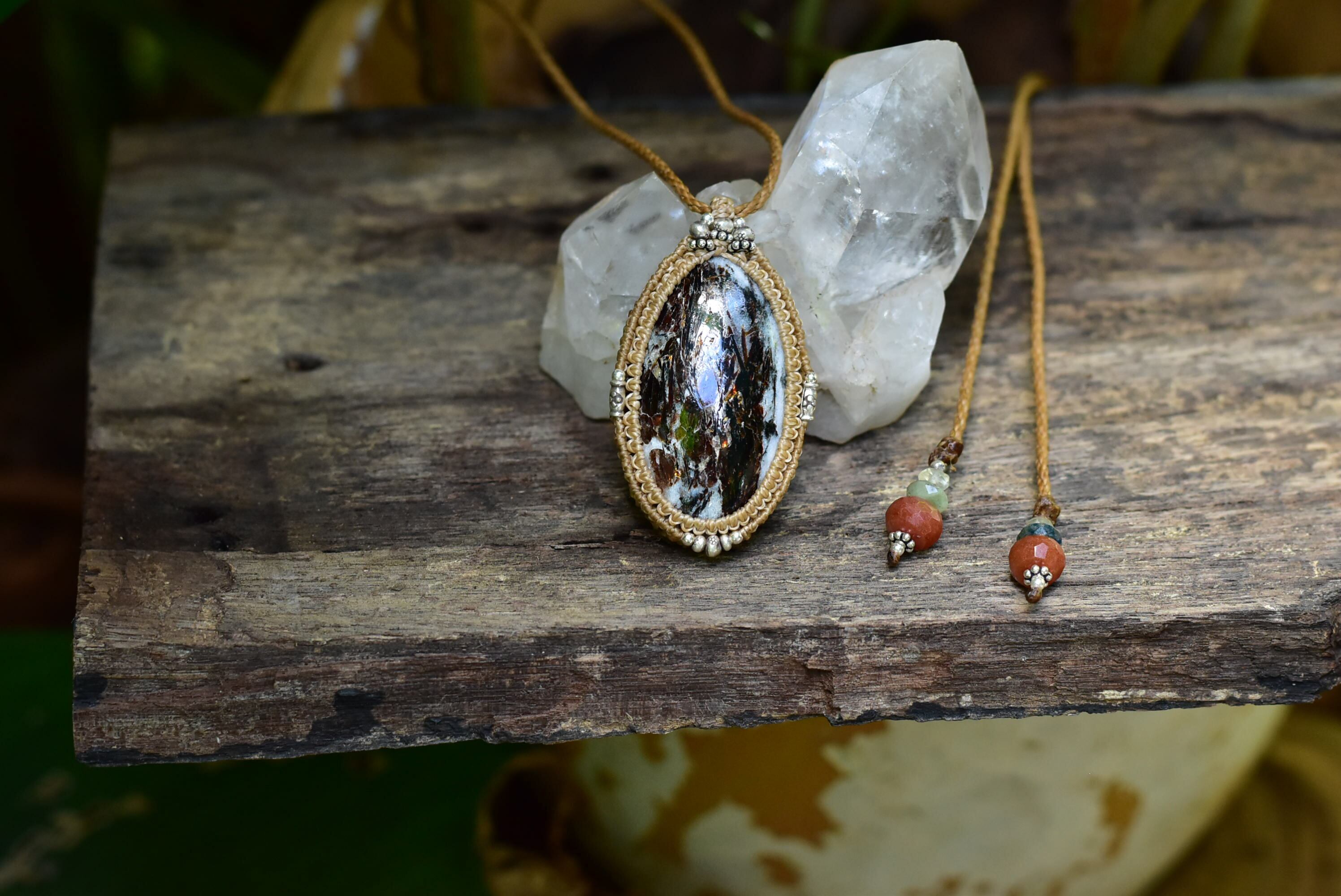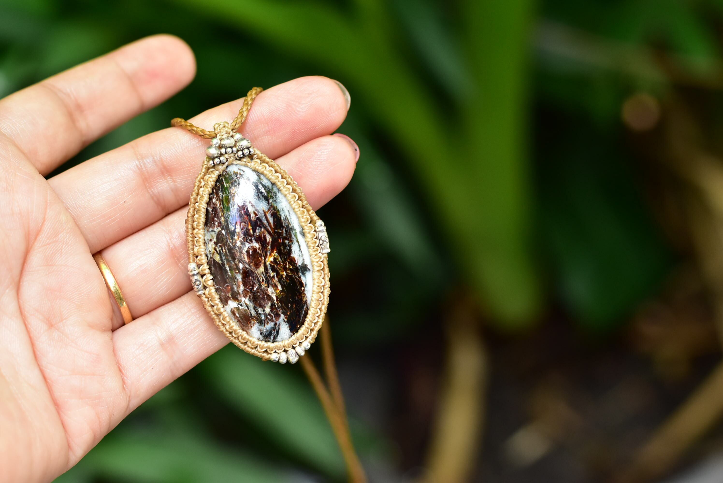 この色彩を美しく出してくれるピースを手にすることができましたのでシンプルにマクラメ編みペンダントに仕上げました。