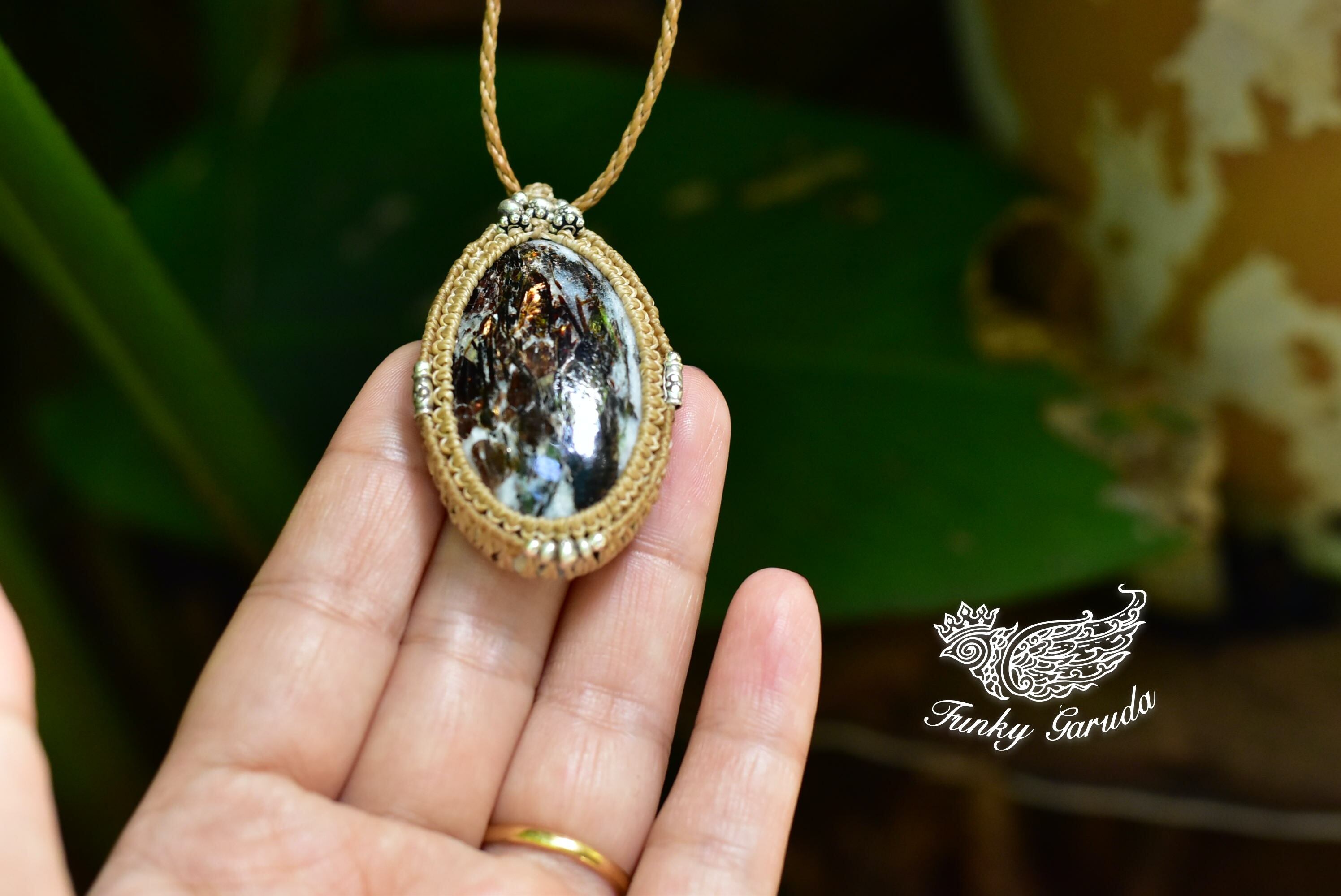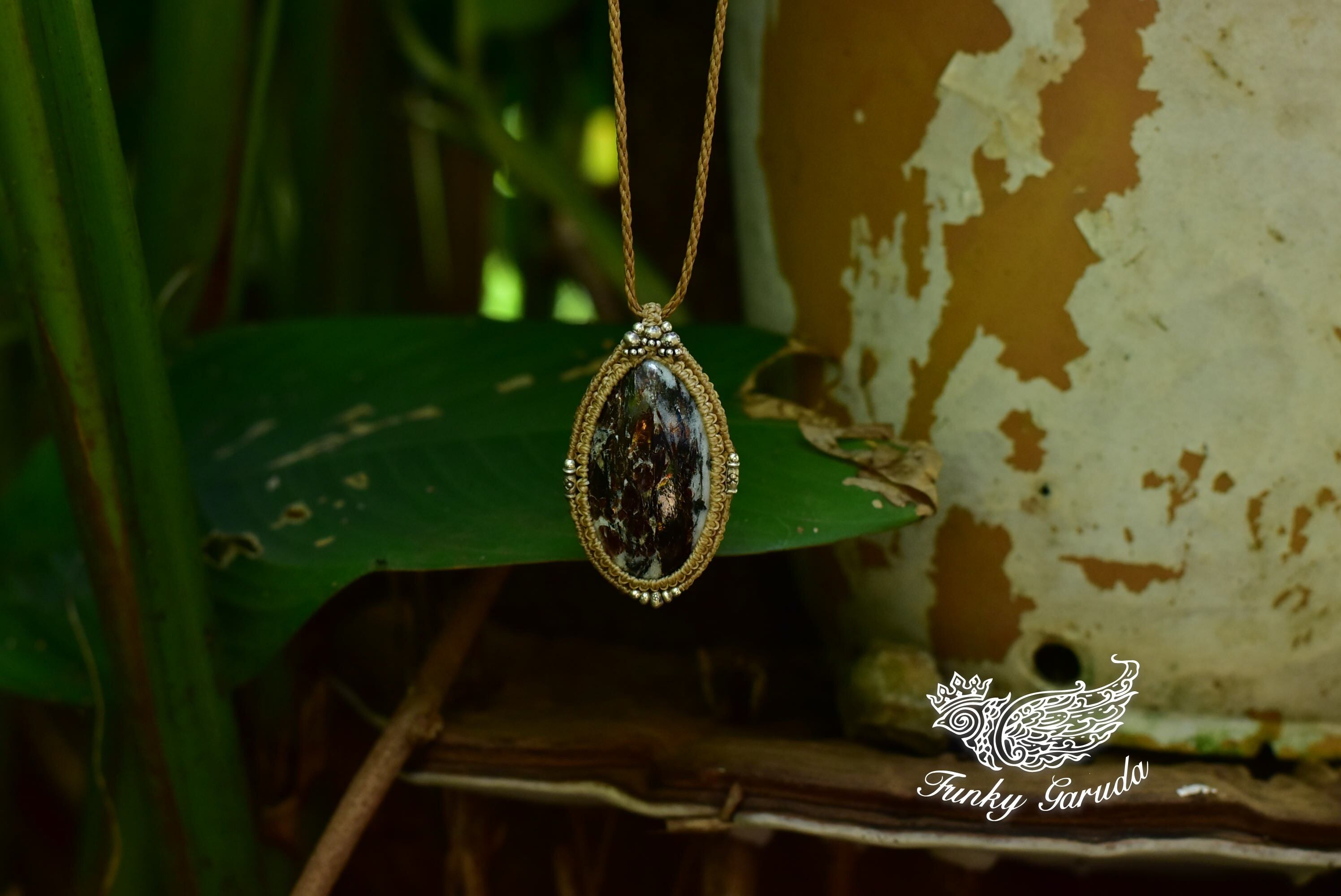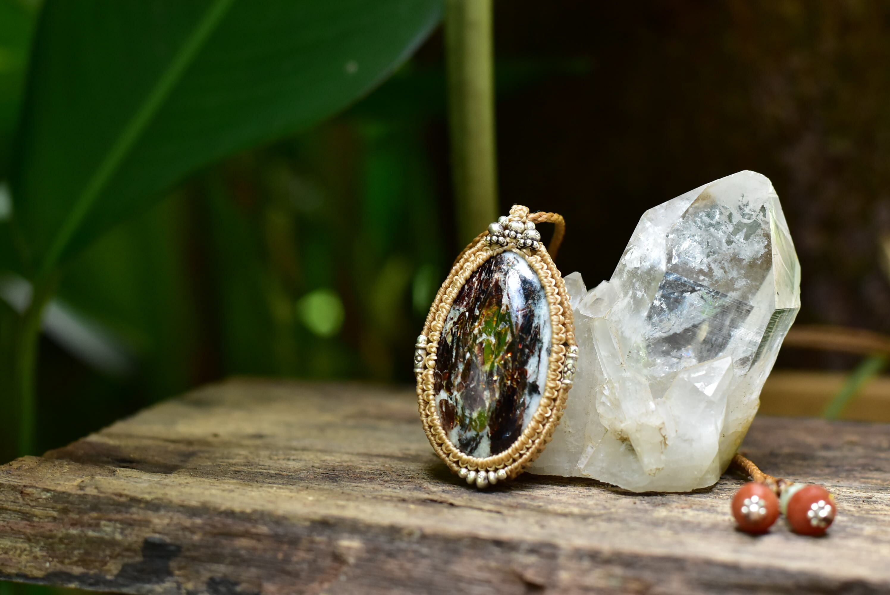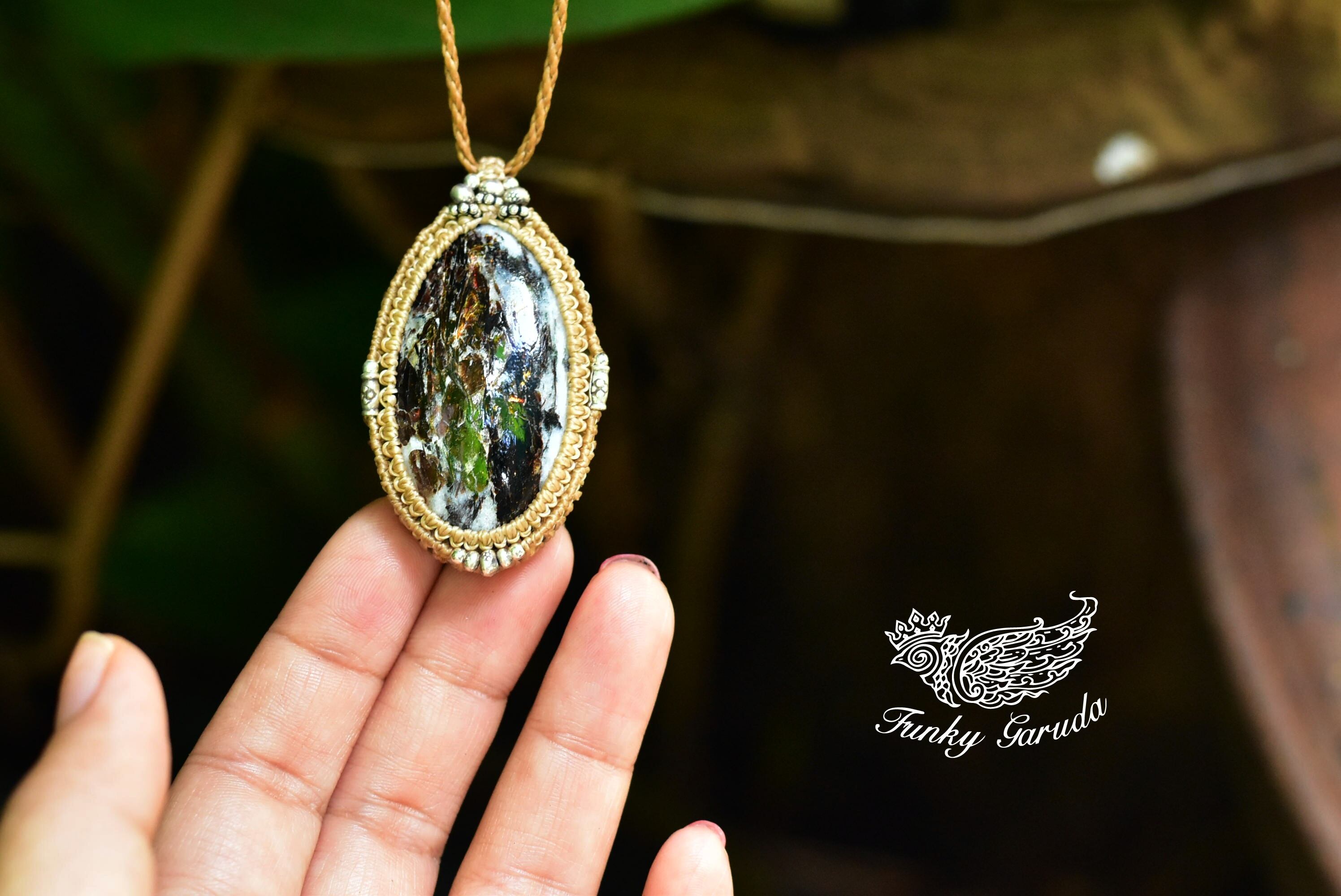 この色彩を美しく出してくれるピースを手にすることができましたのでシンプルにマクラメ編みペンダントに仕上げました。