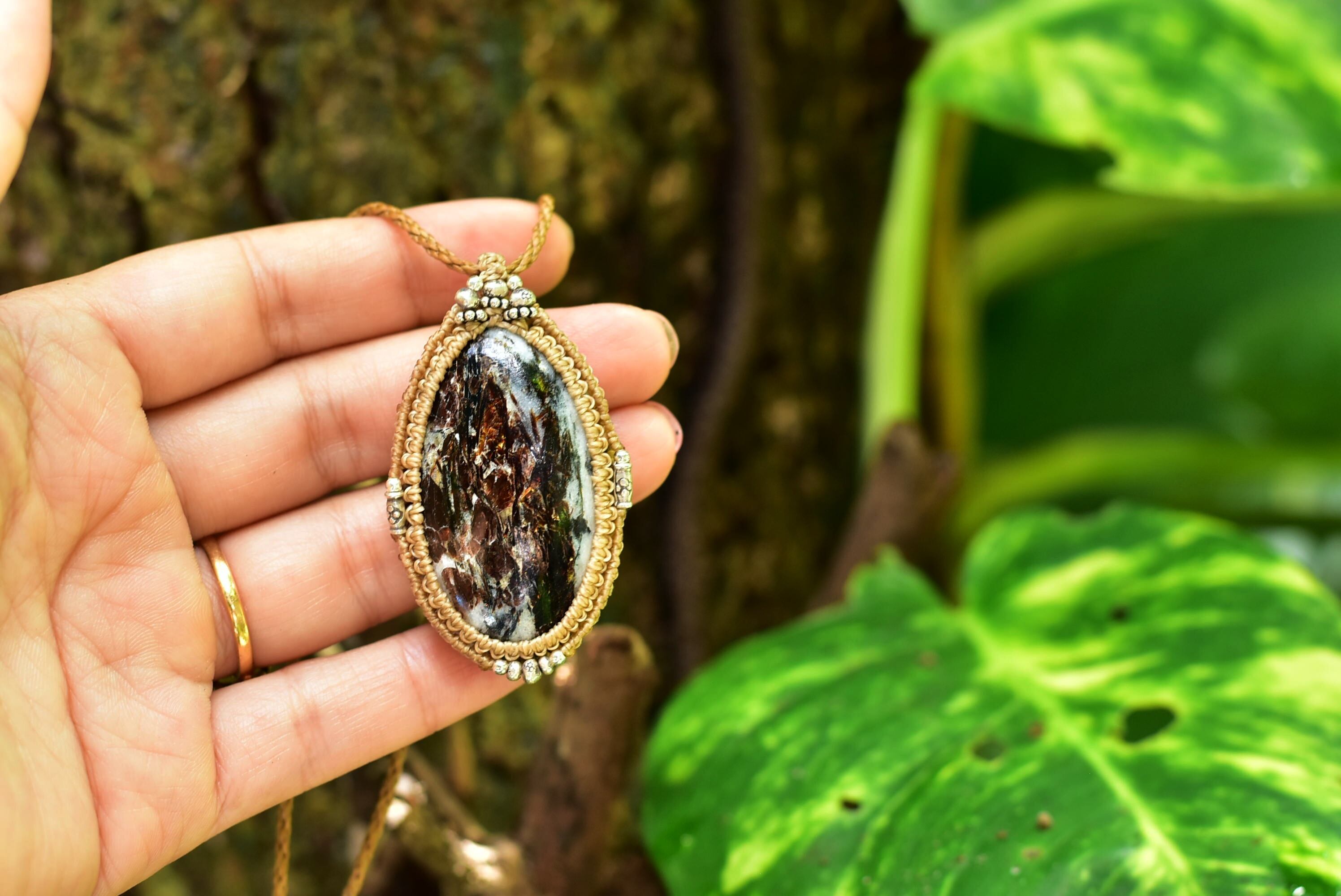 燃える炎山★アストロフィライト マクラメペンダントasu002