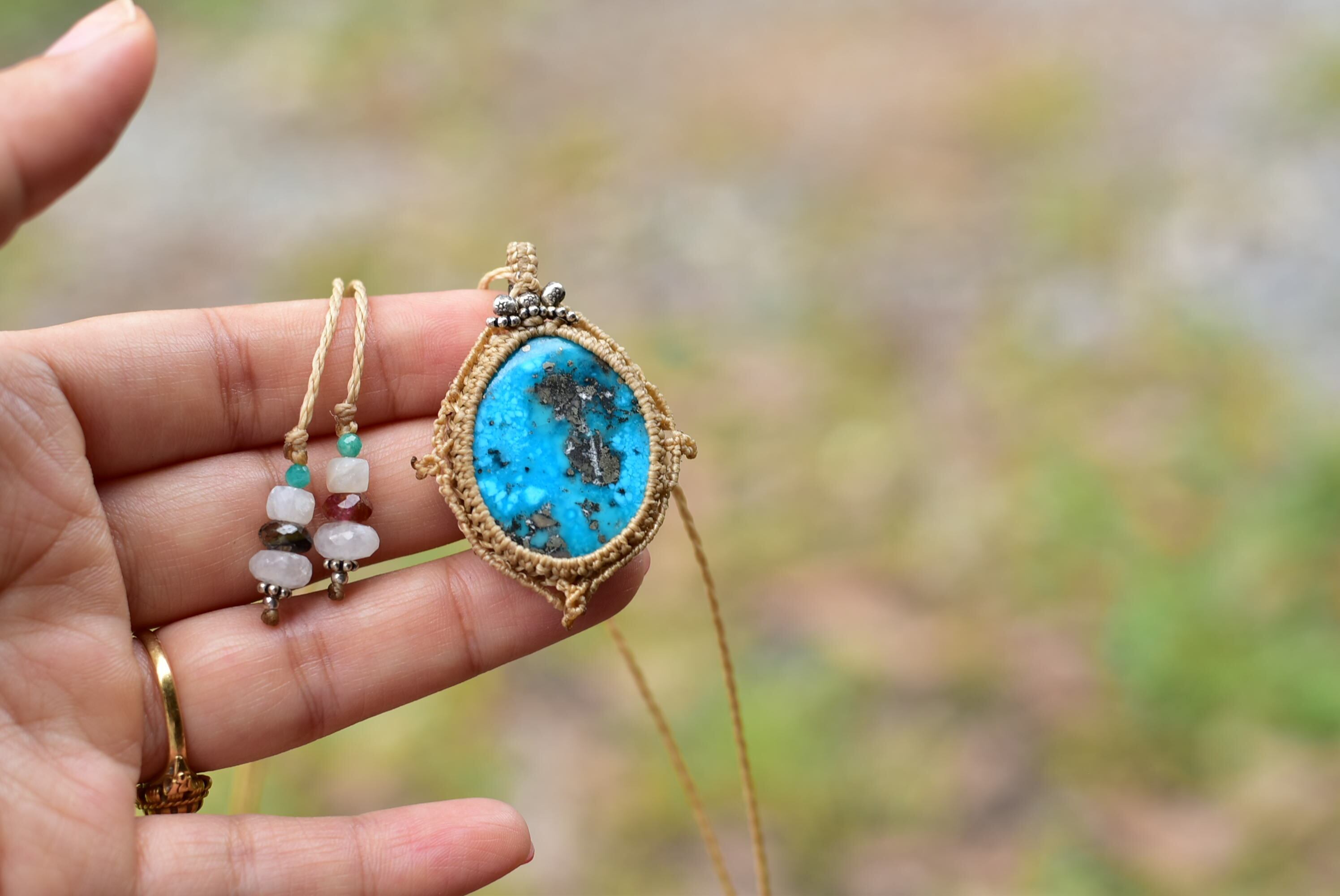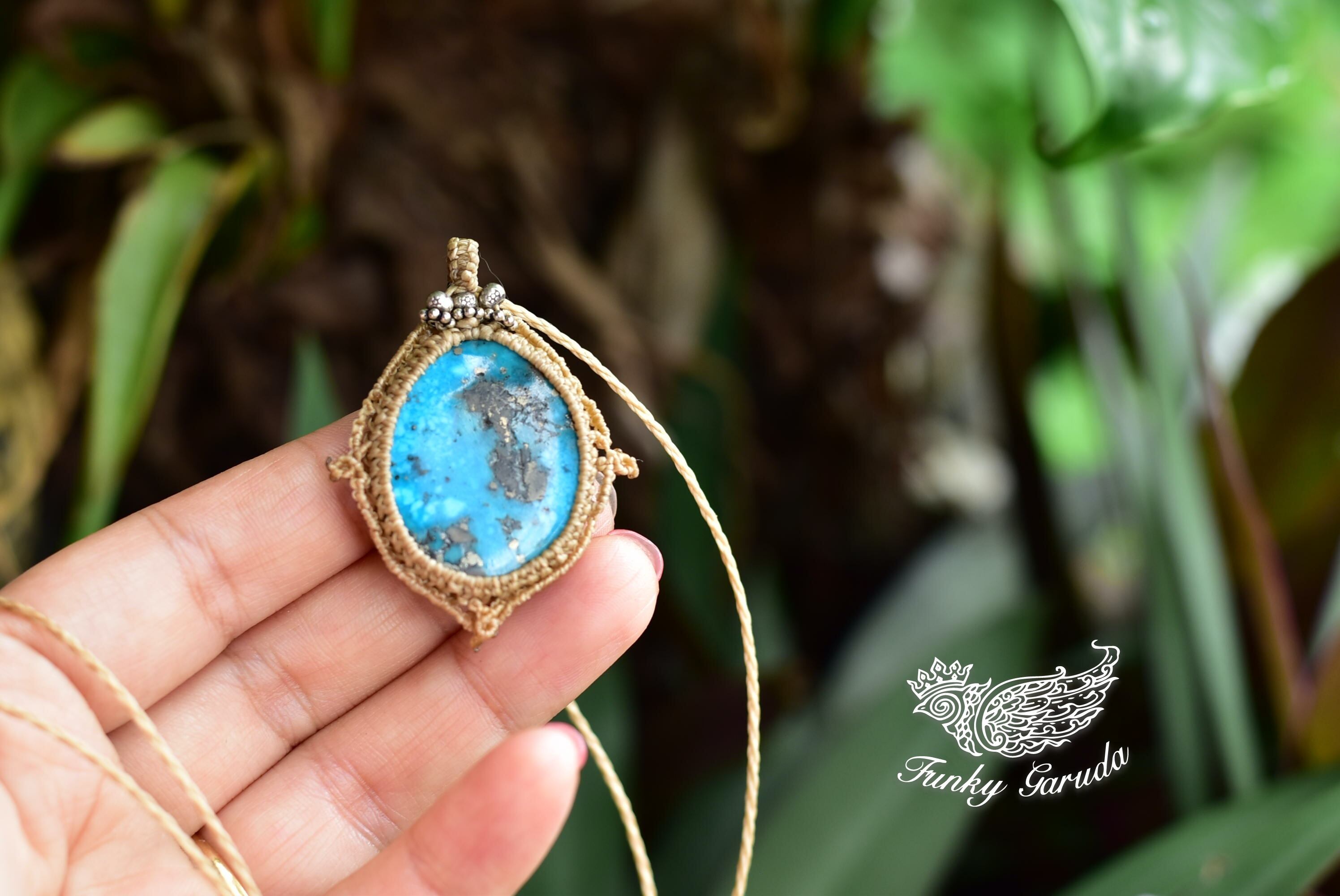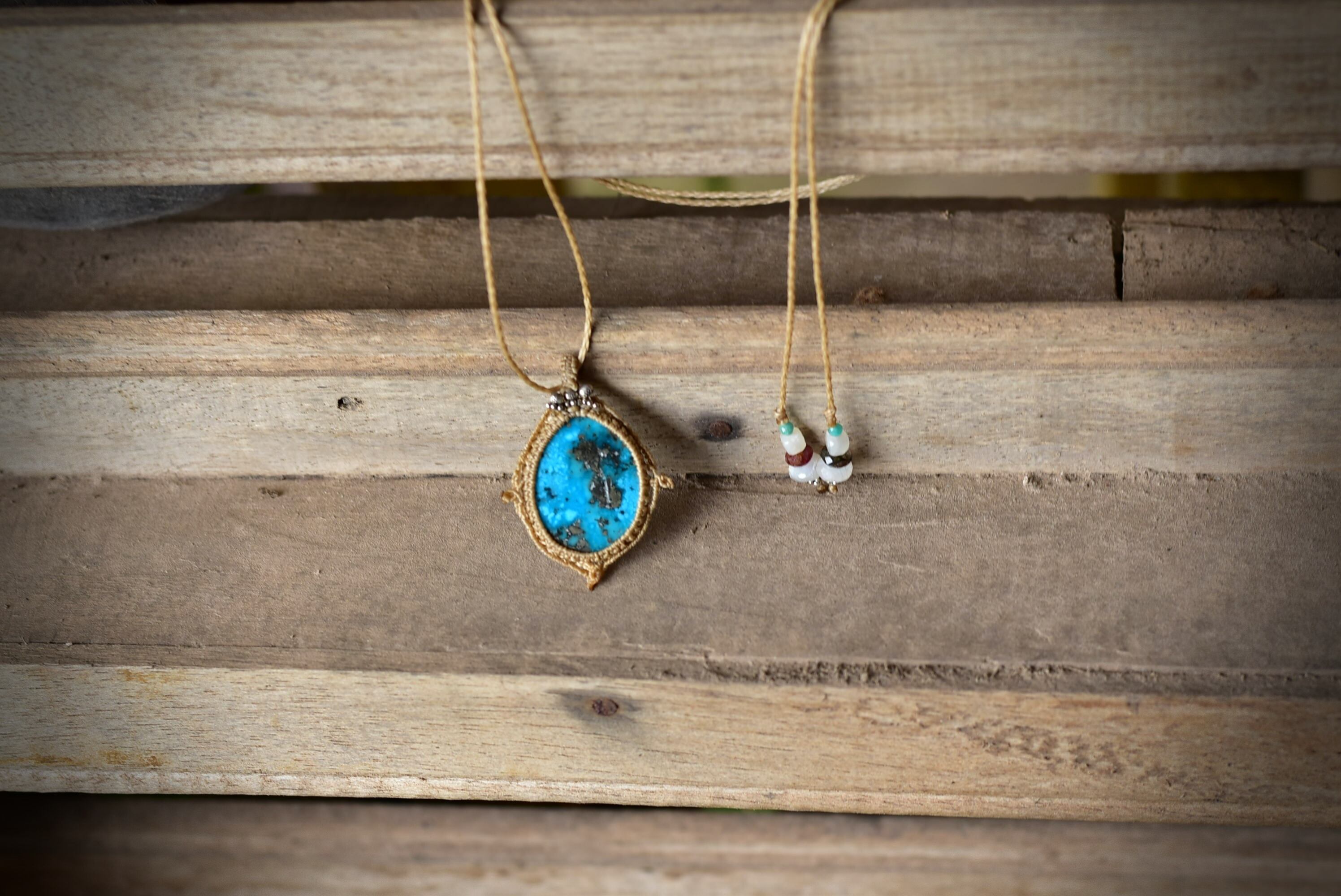 鮮やかブルーグリーン★ターコイズ マクラメペンダントtur020