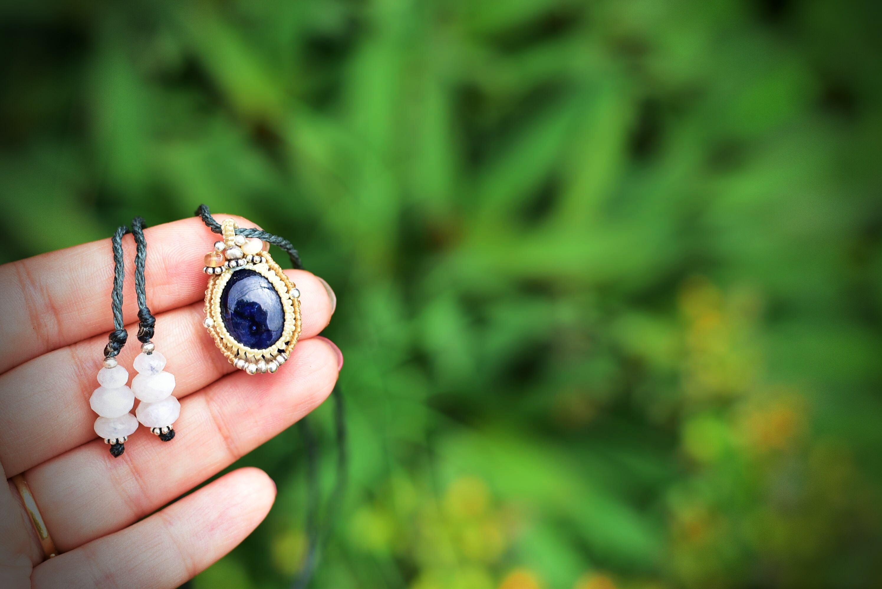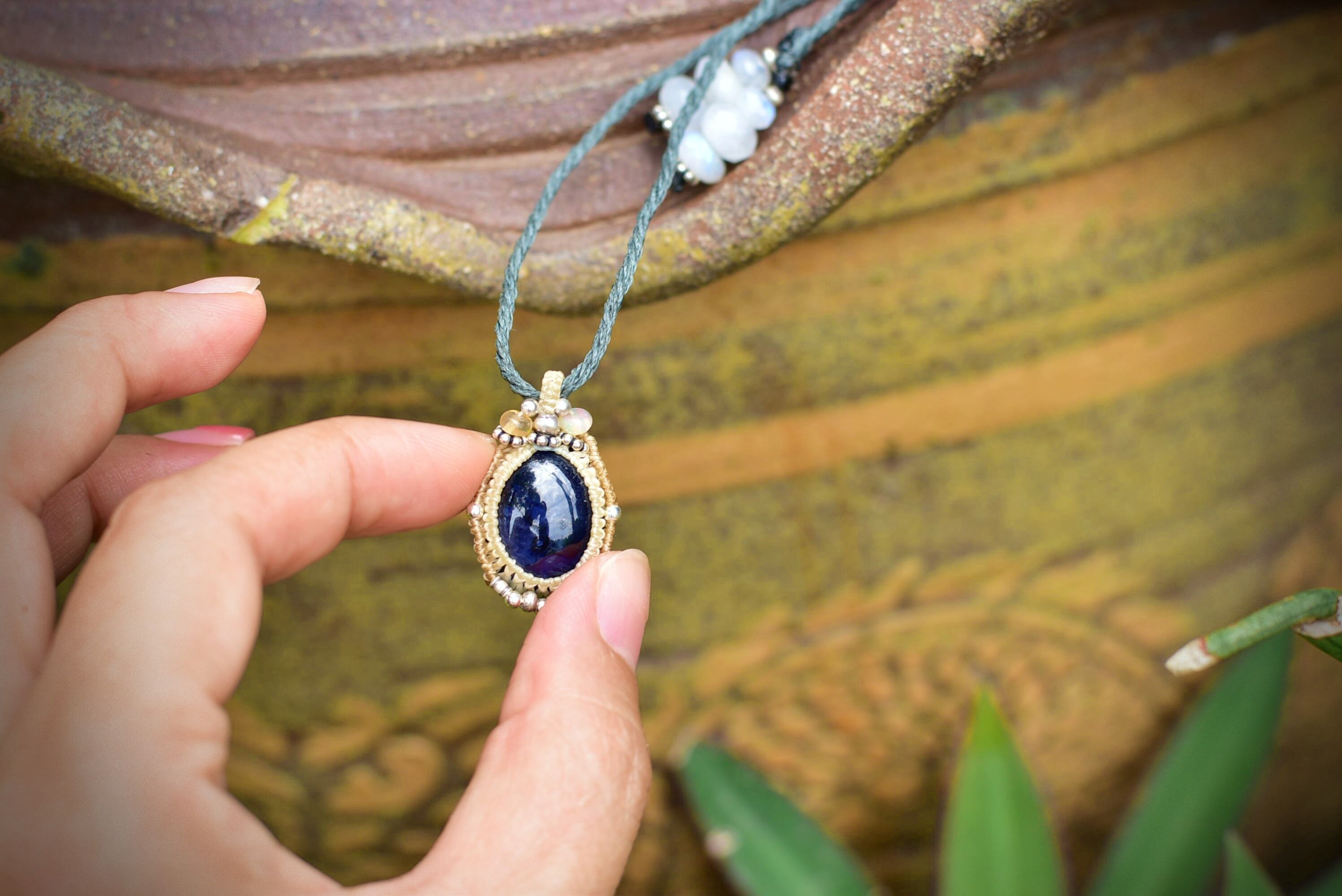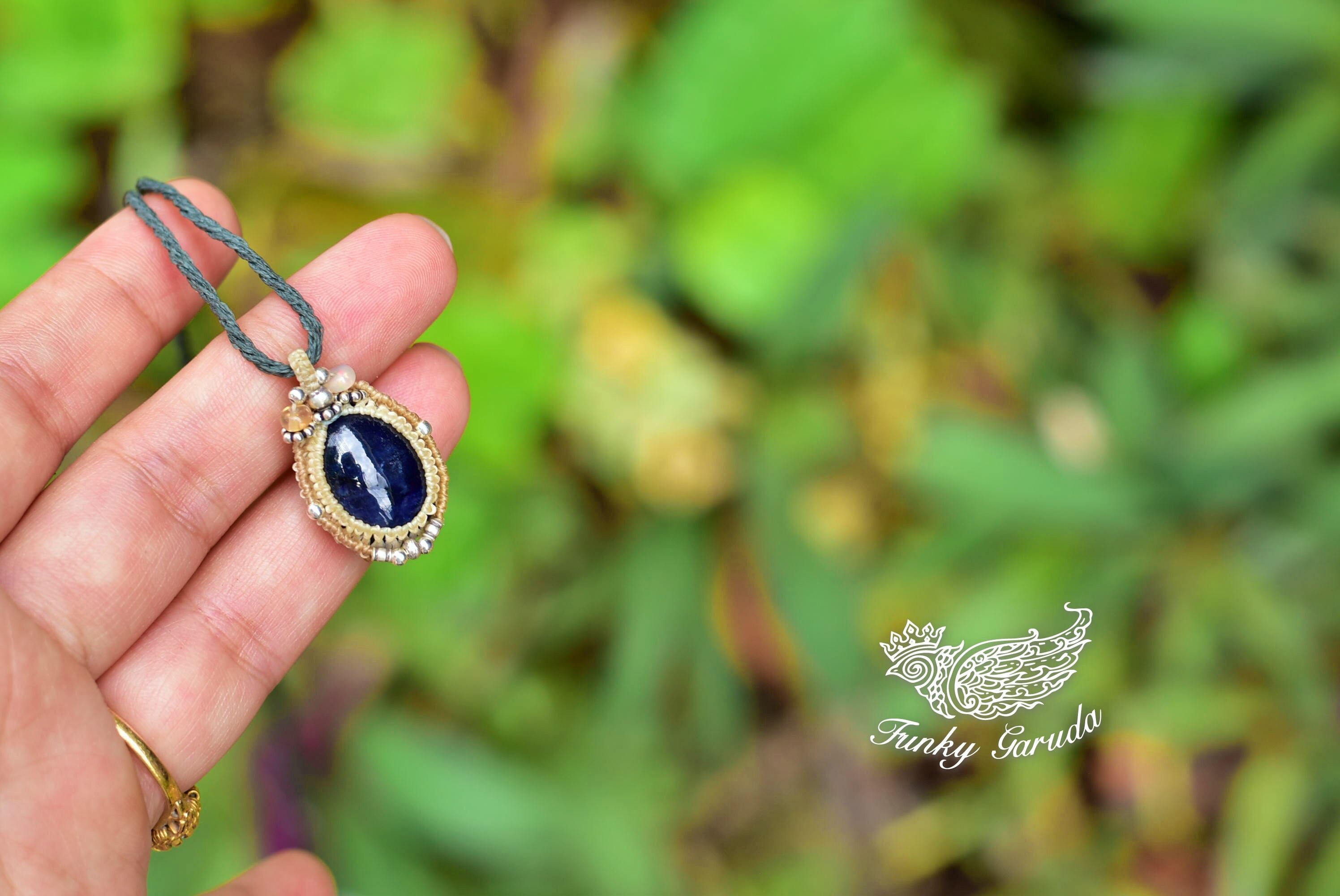 深い海★ディープブルーサファイア シンプルマクラメペンダントsafa004