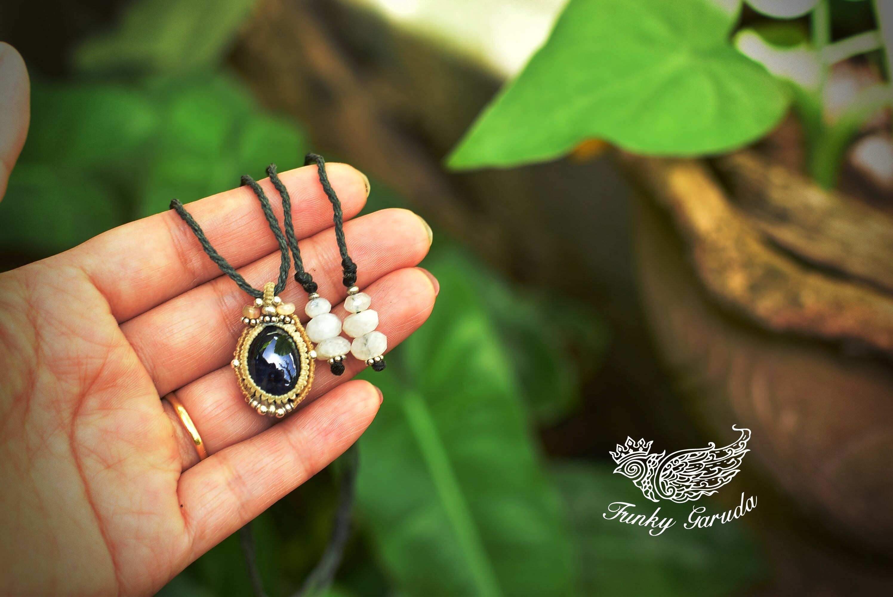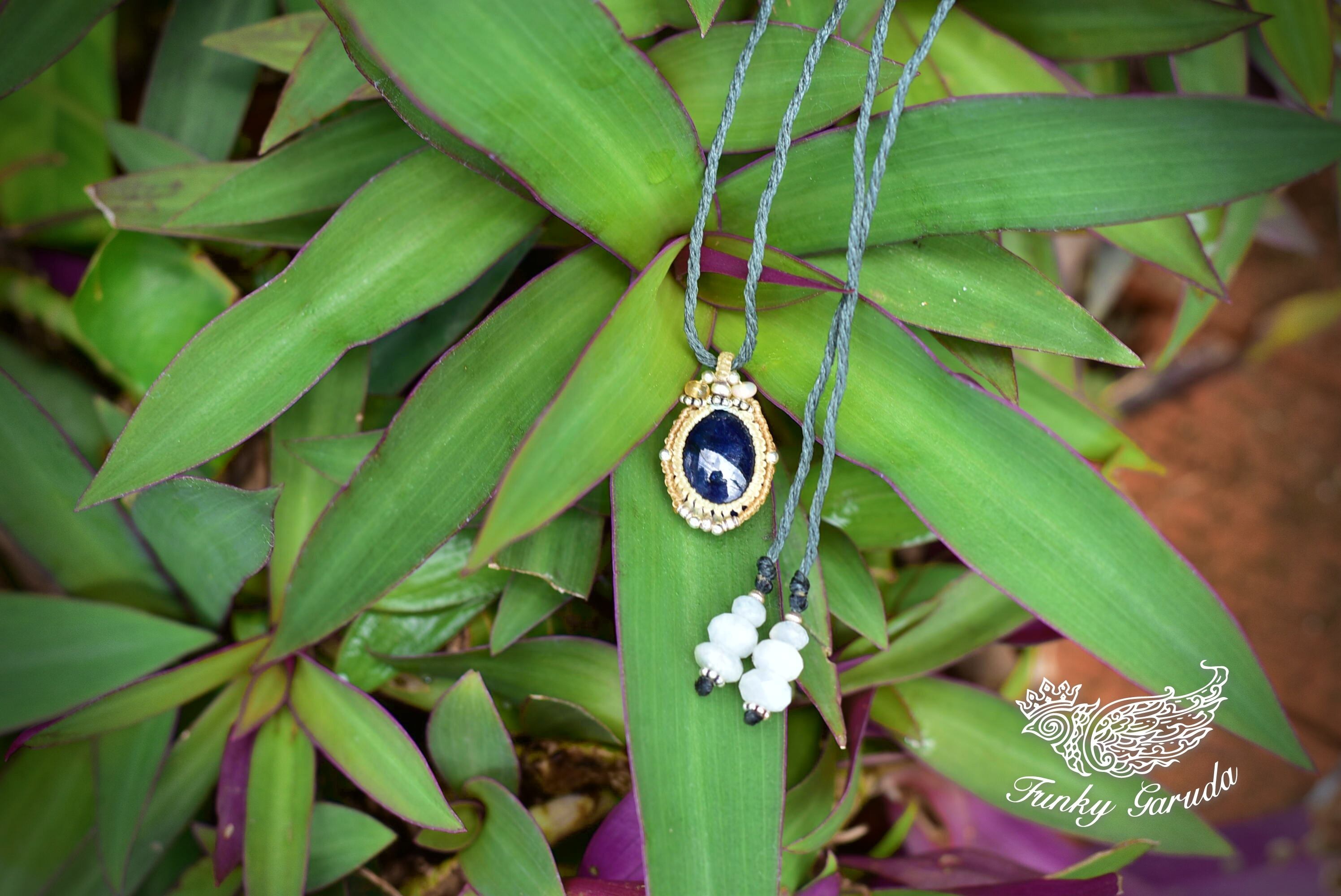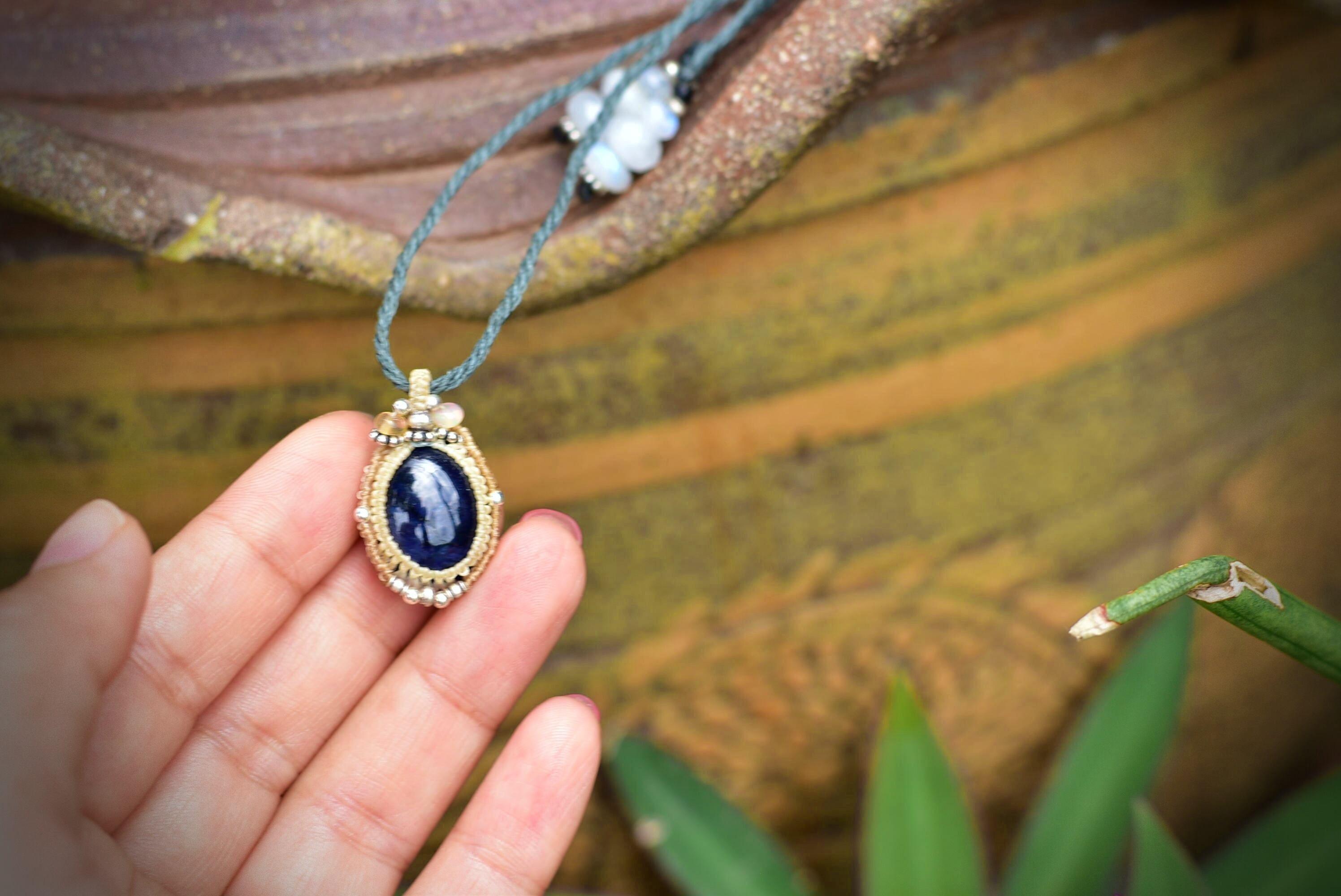 深い海★ディープブルーサファイア シンプルマクラメペンダントsafa004
