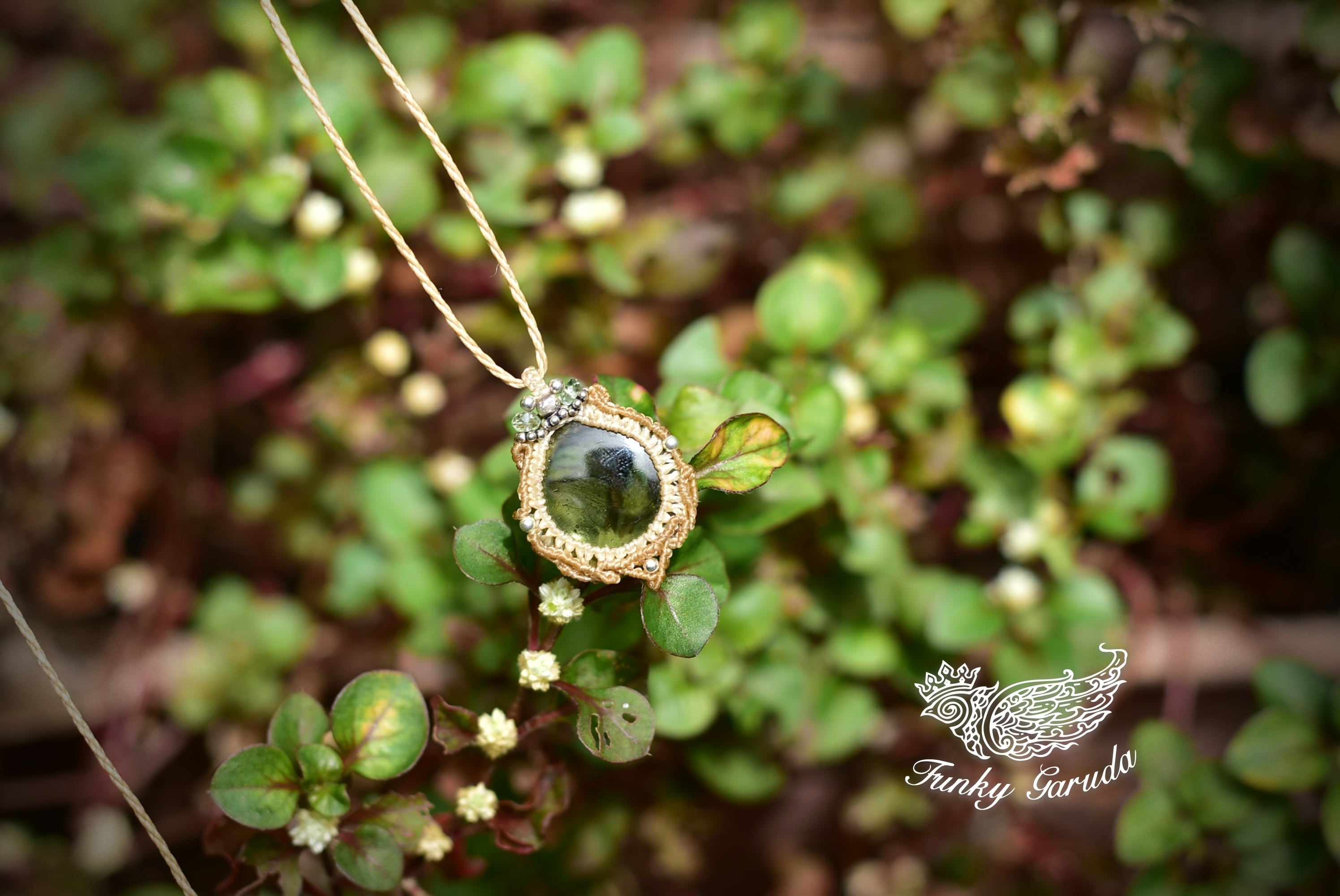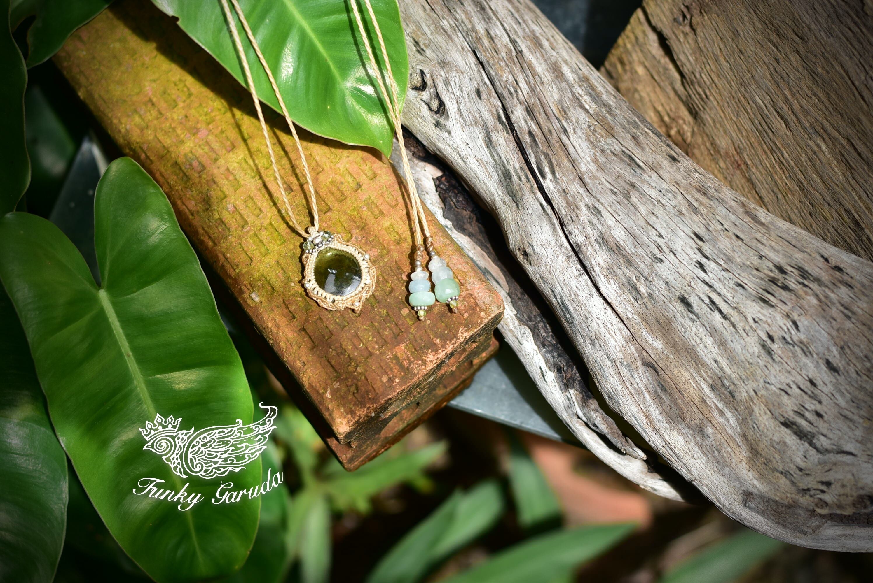 希少★古代の幻★14ctモルダバイト マクラメペンダントmold001
