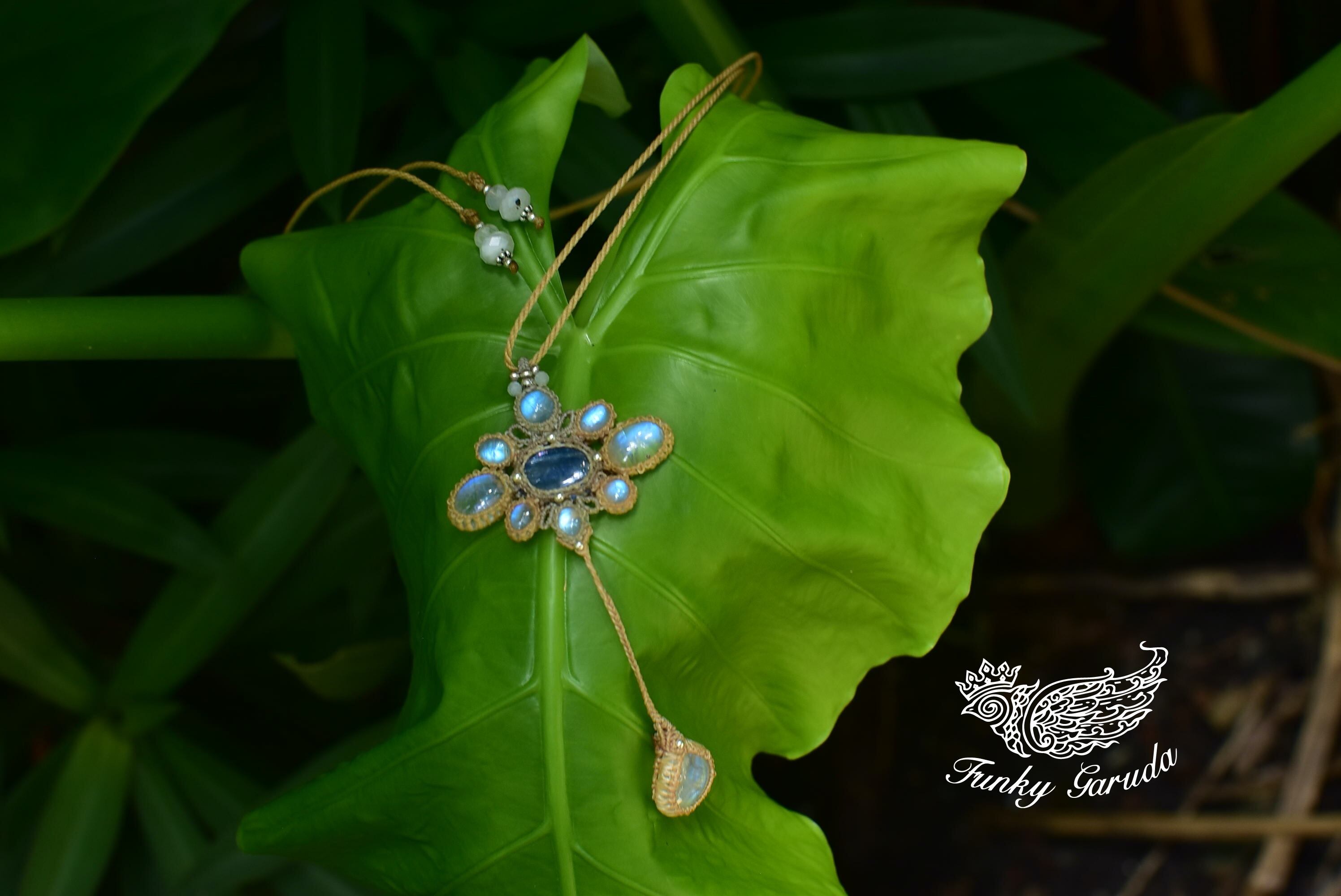 月の華★高品質カイヤナイトとムーンストーン マクラメネックレスkya005