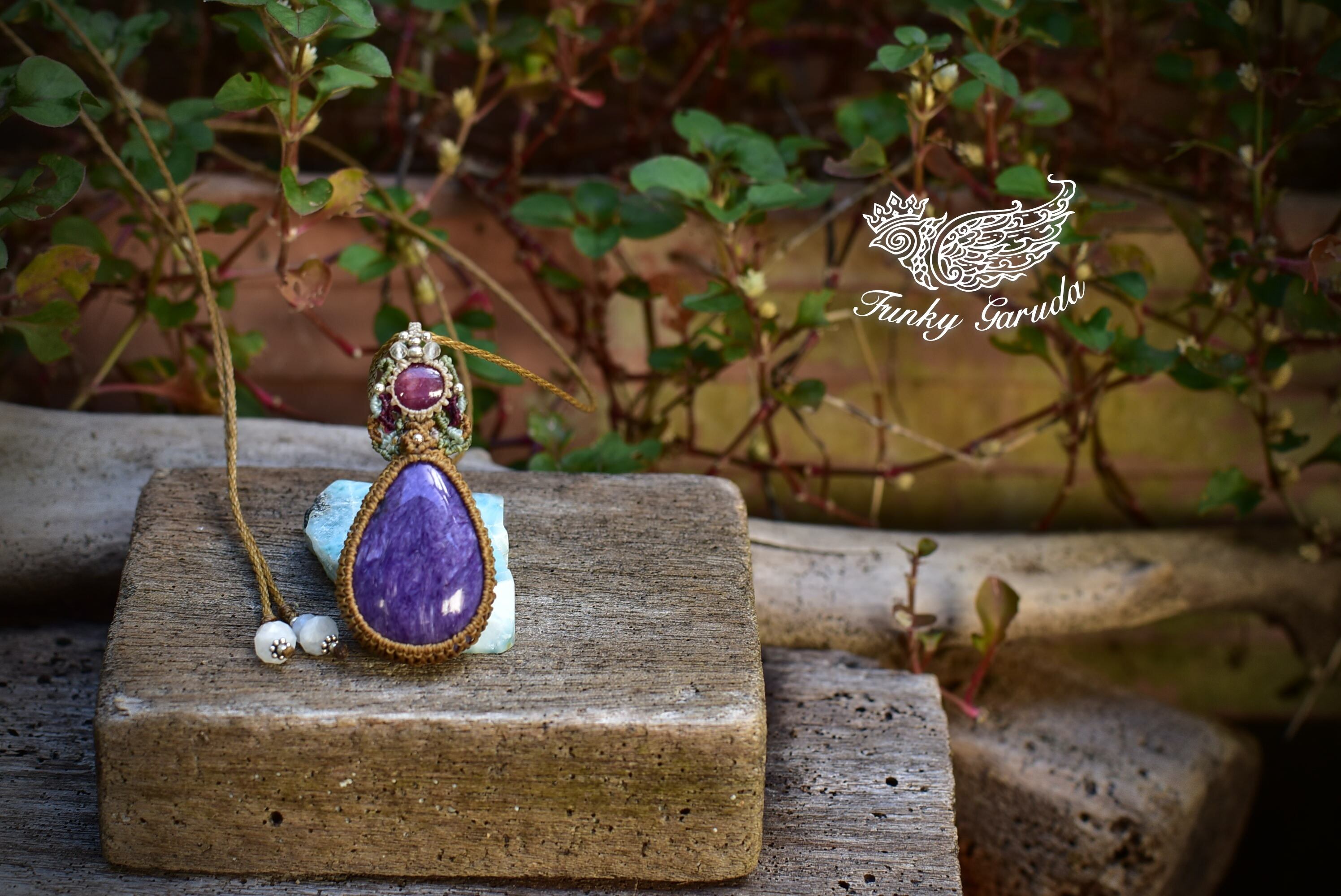 優しい力★スタールビーと大粒チャロアイト マクラメペンダントcharo003
