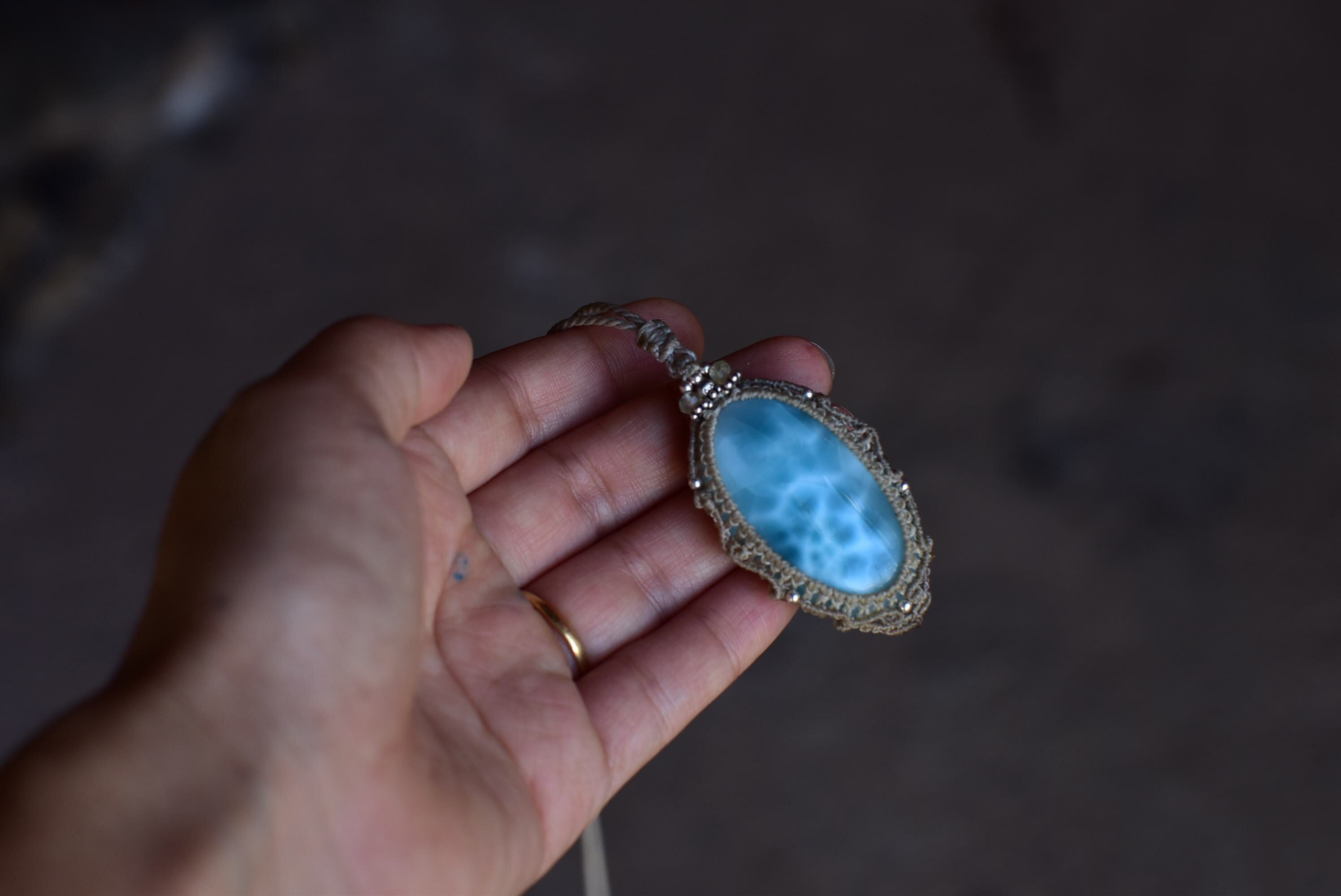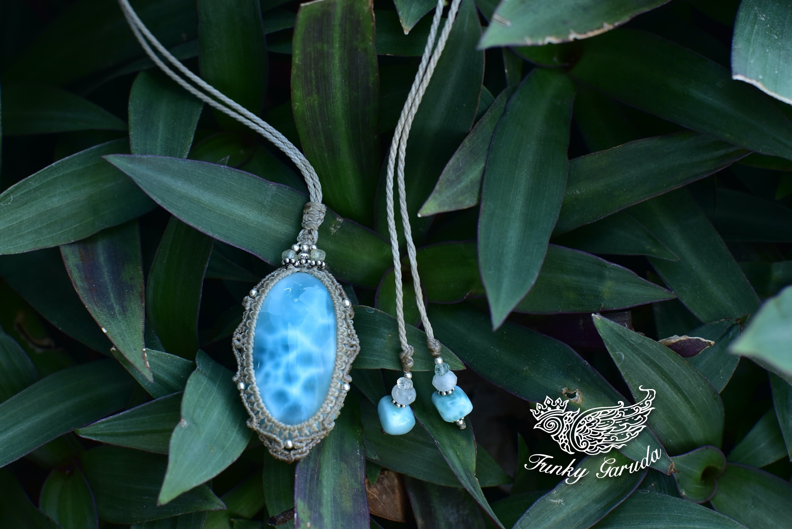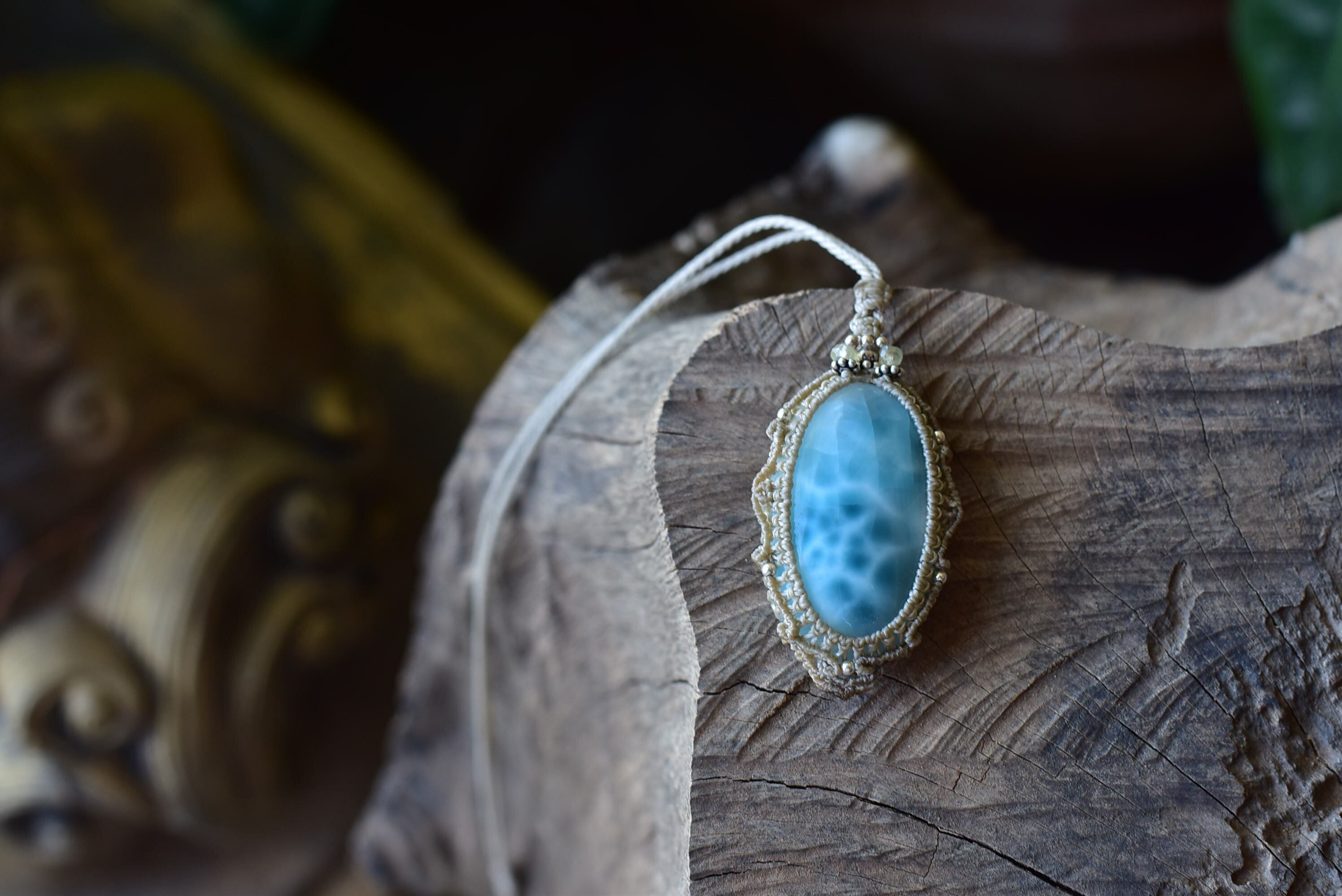 ぷるぷる透明感★高品質ラリマー マクラメペンダントlari025