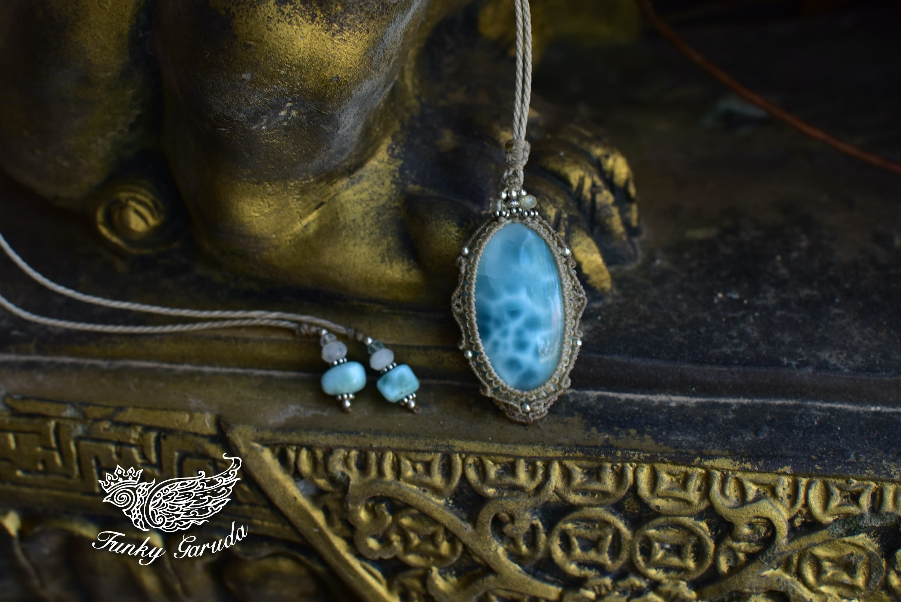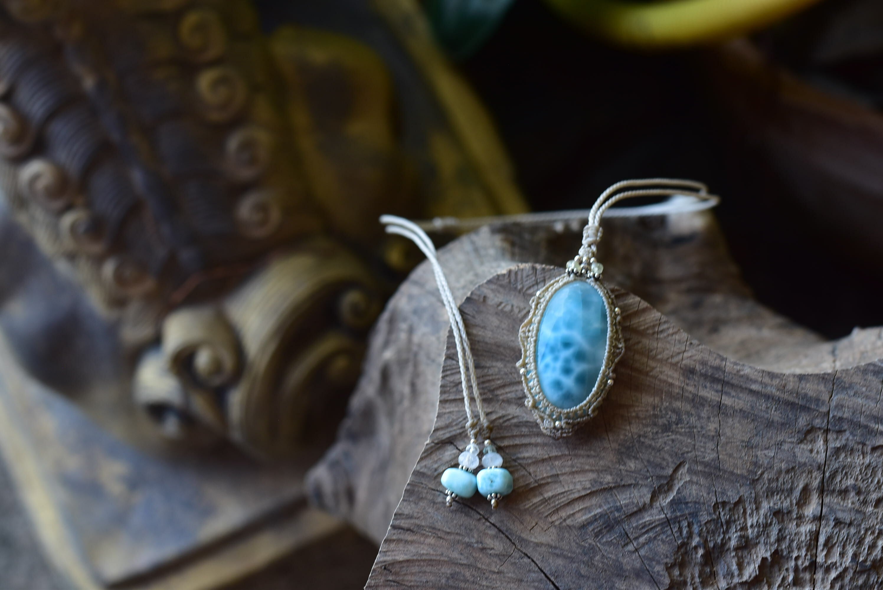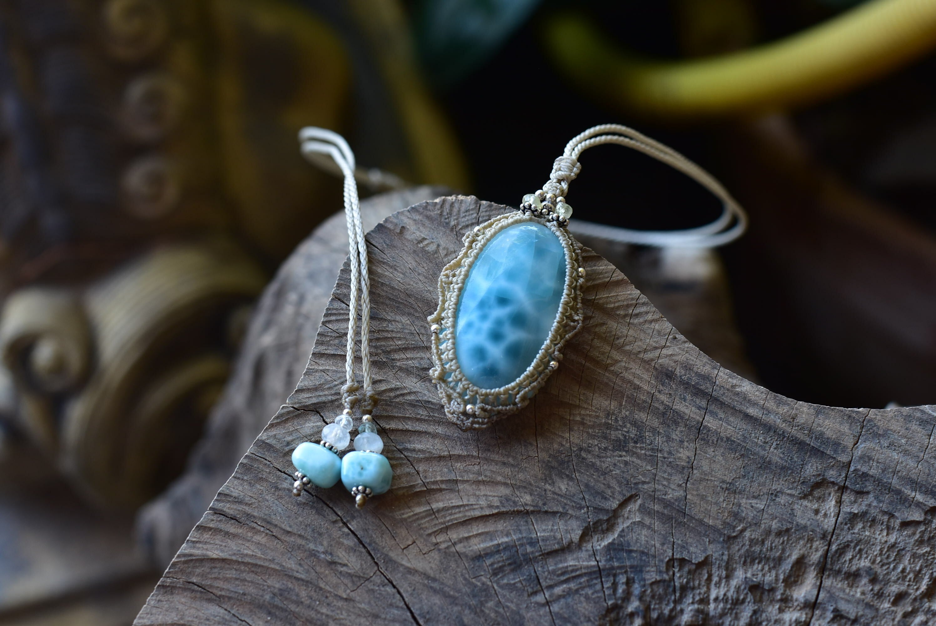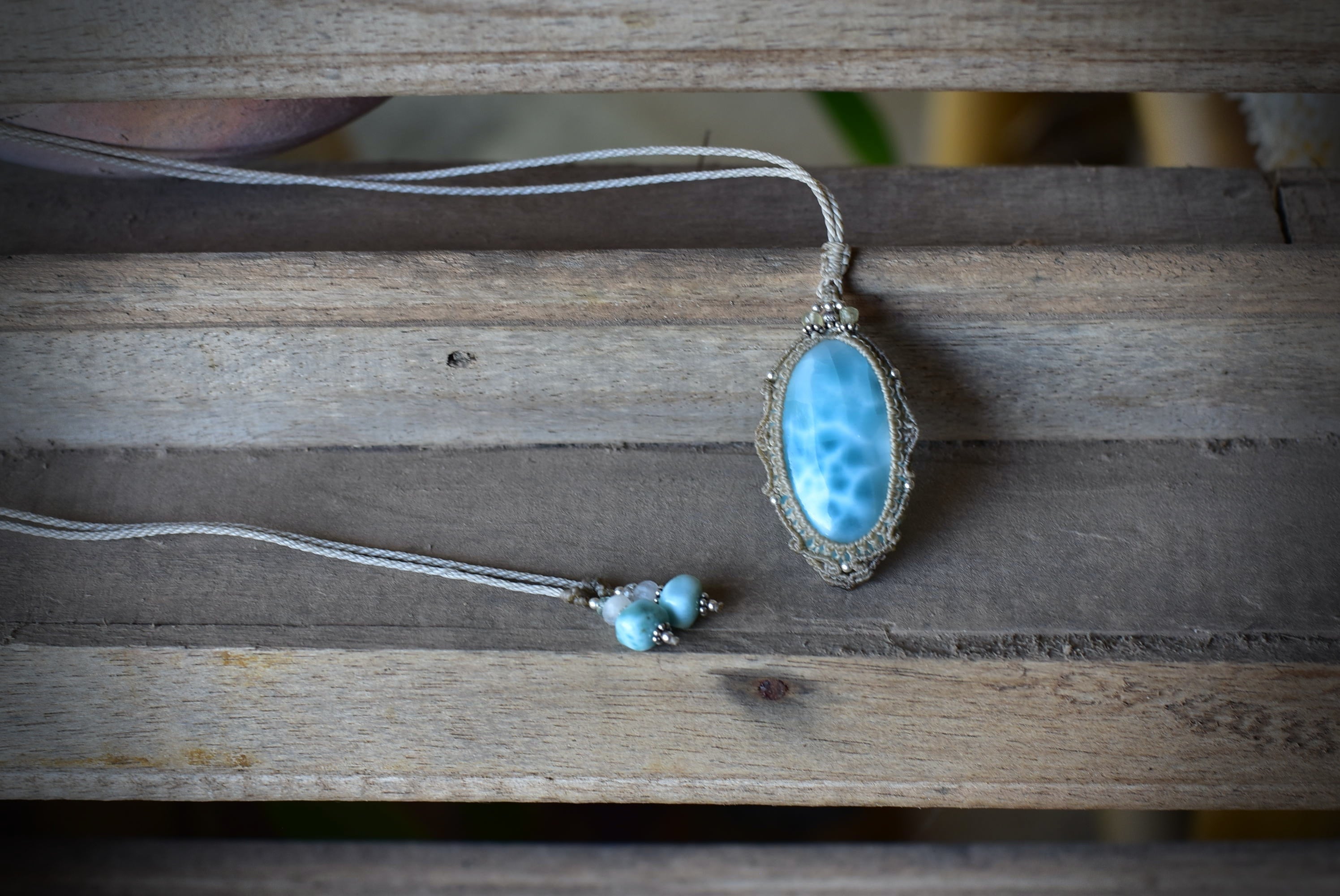 ぷるぷる透明感★高品質ラリマー マクラメペンダントlari025