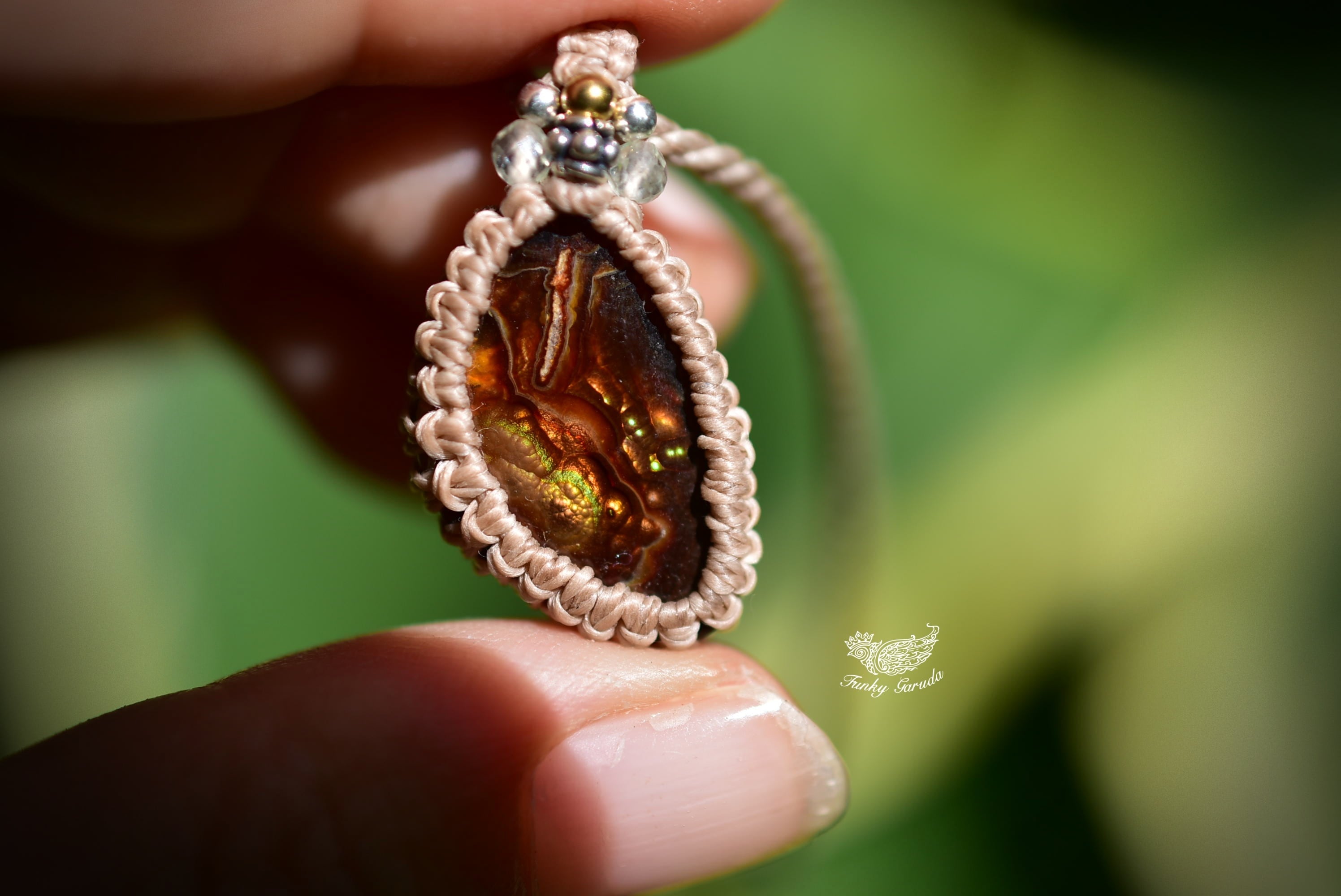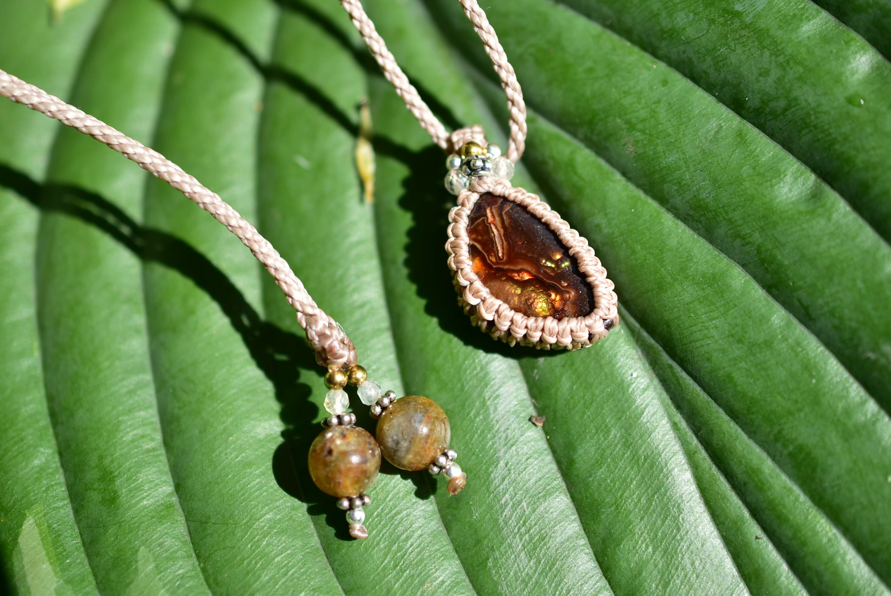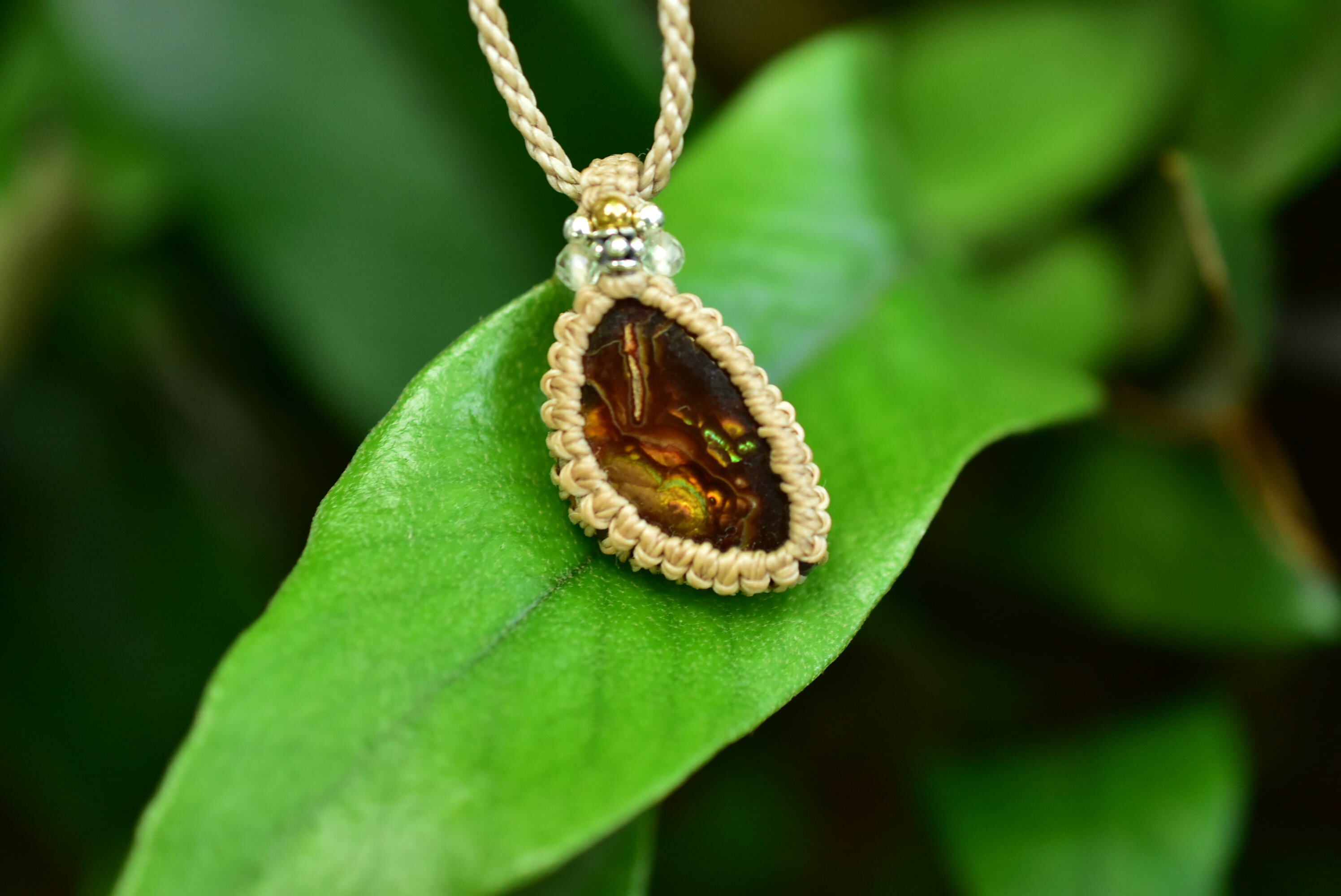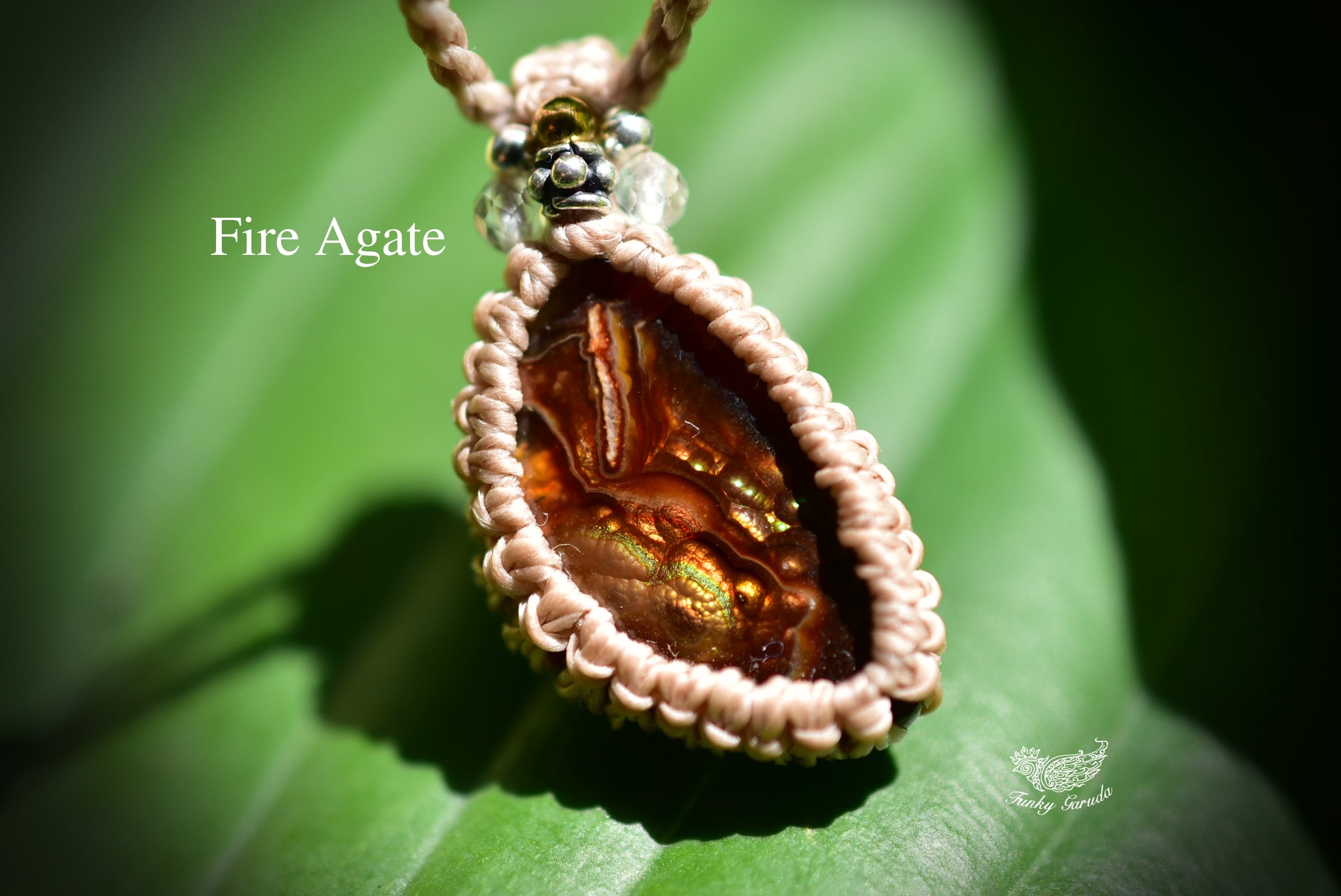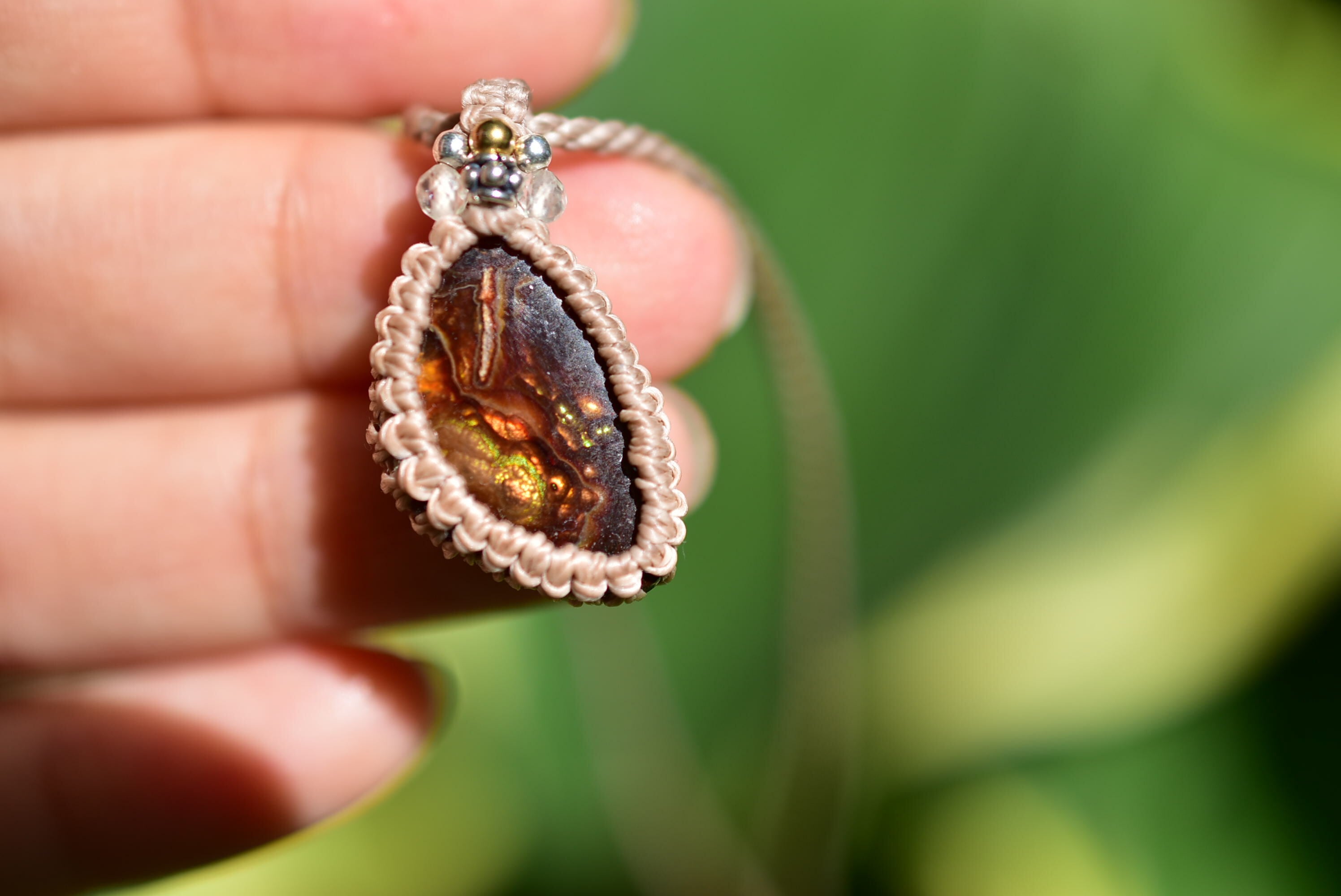 火山の遊色効果★ファイヤーアゲート マクラメペンダント457