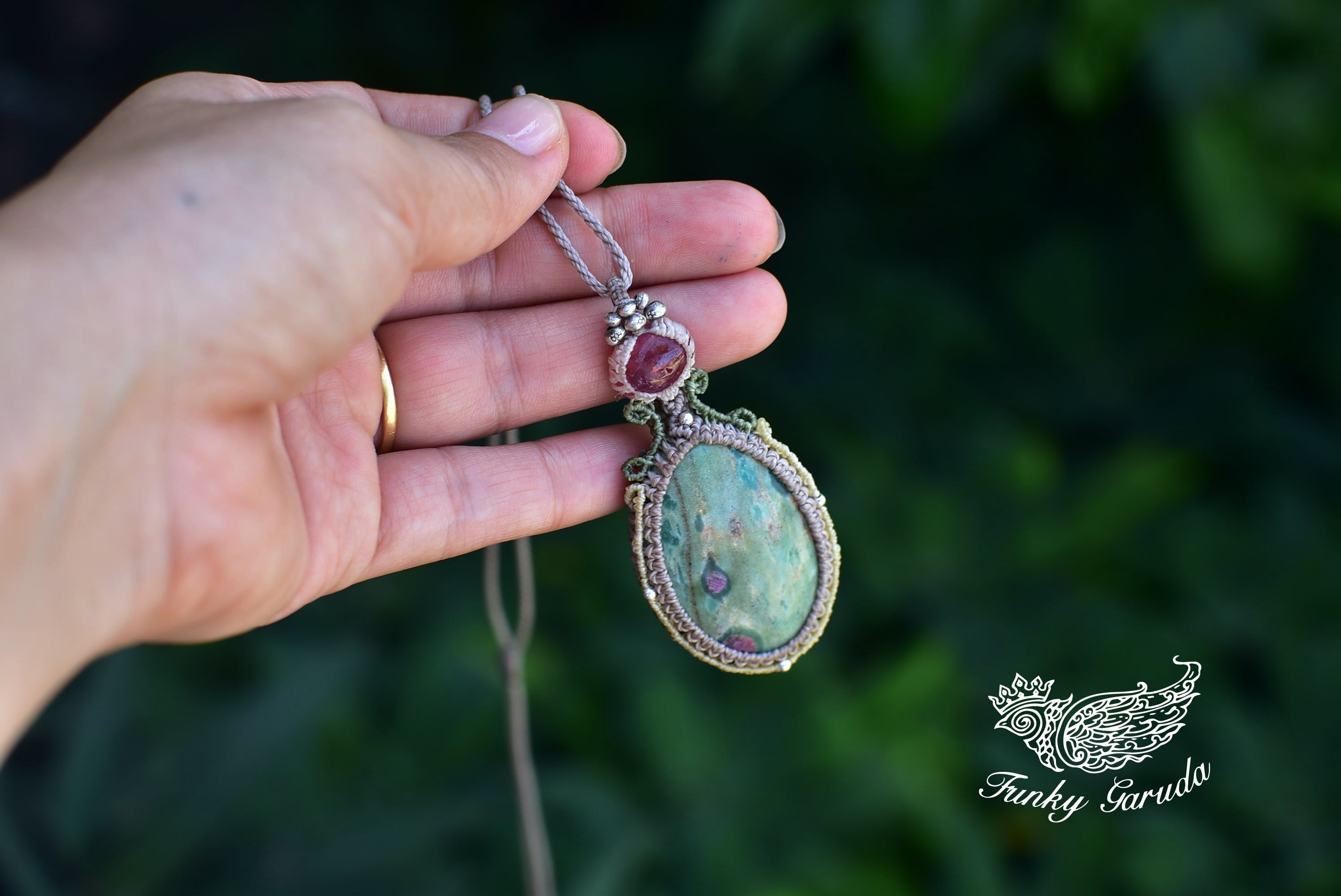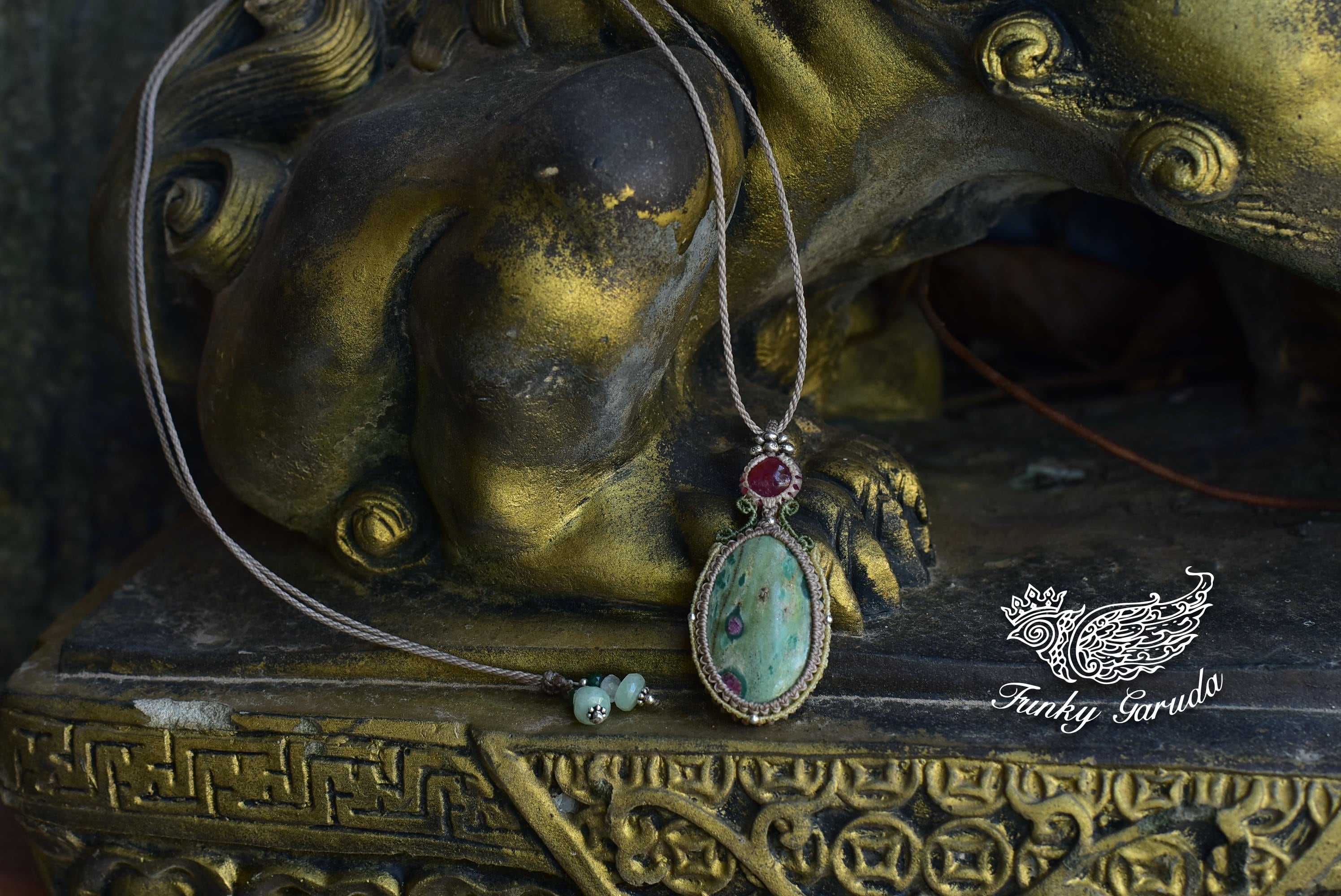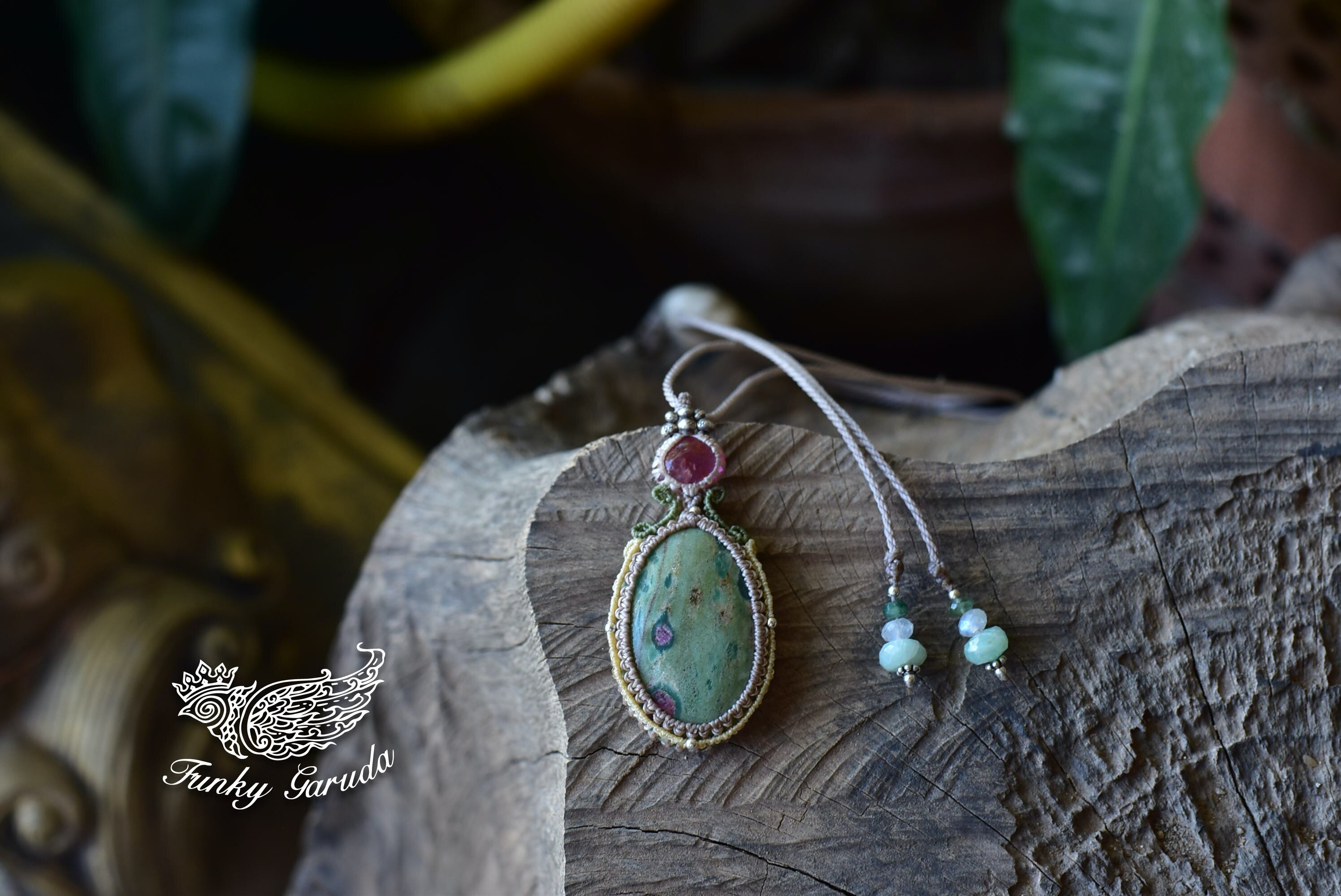 自然を想像してマクラメ編みを施したルビーとルビーインフックサイト。