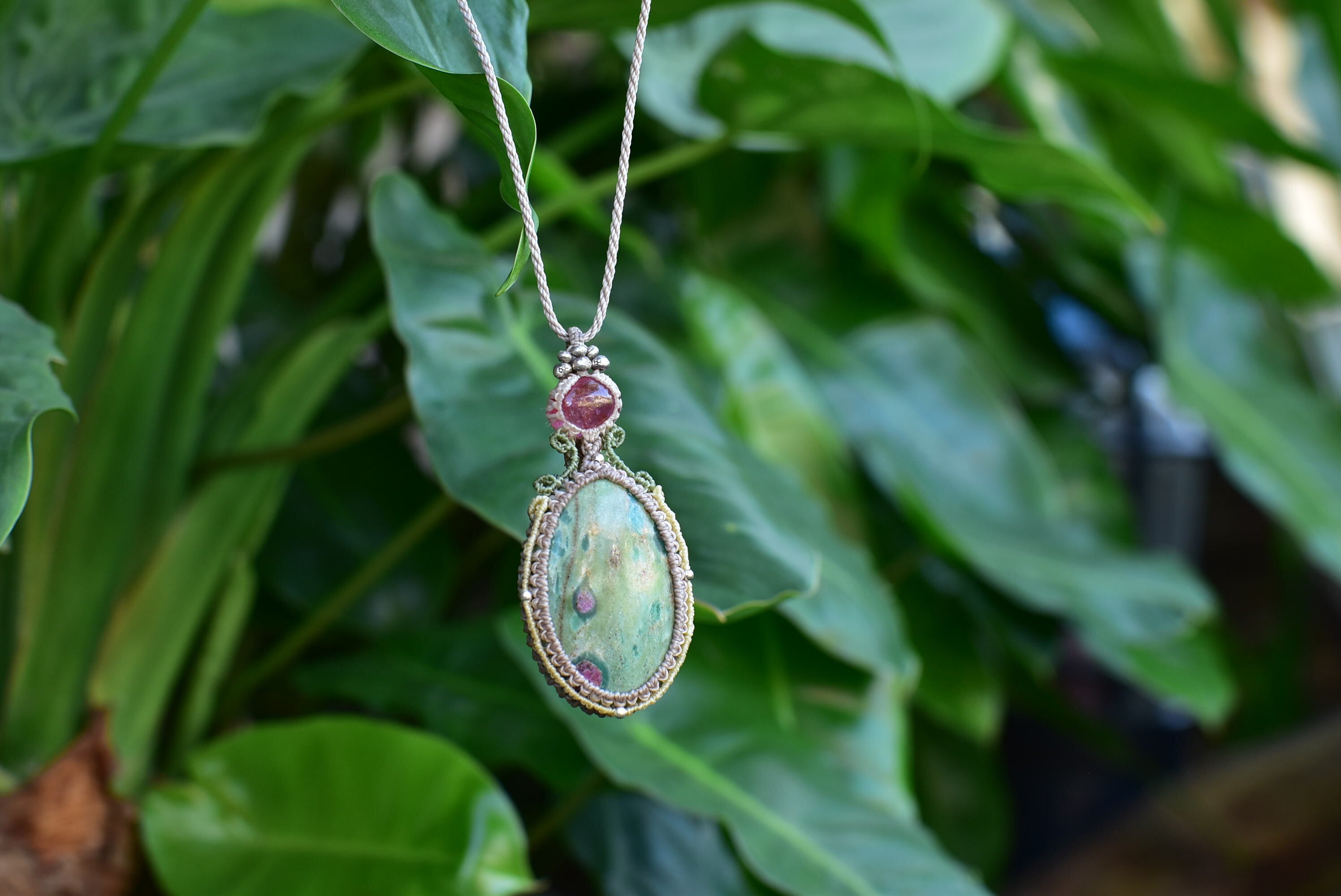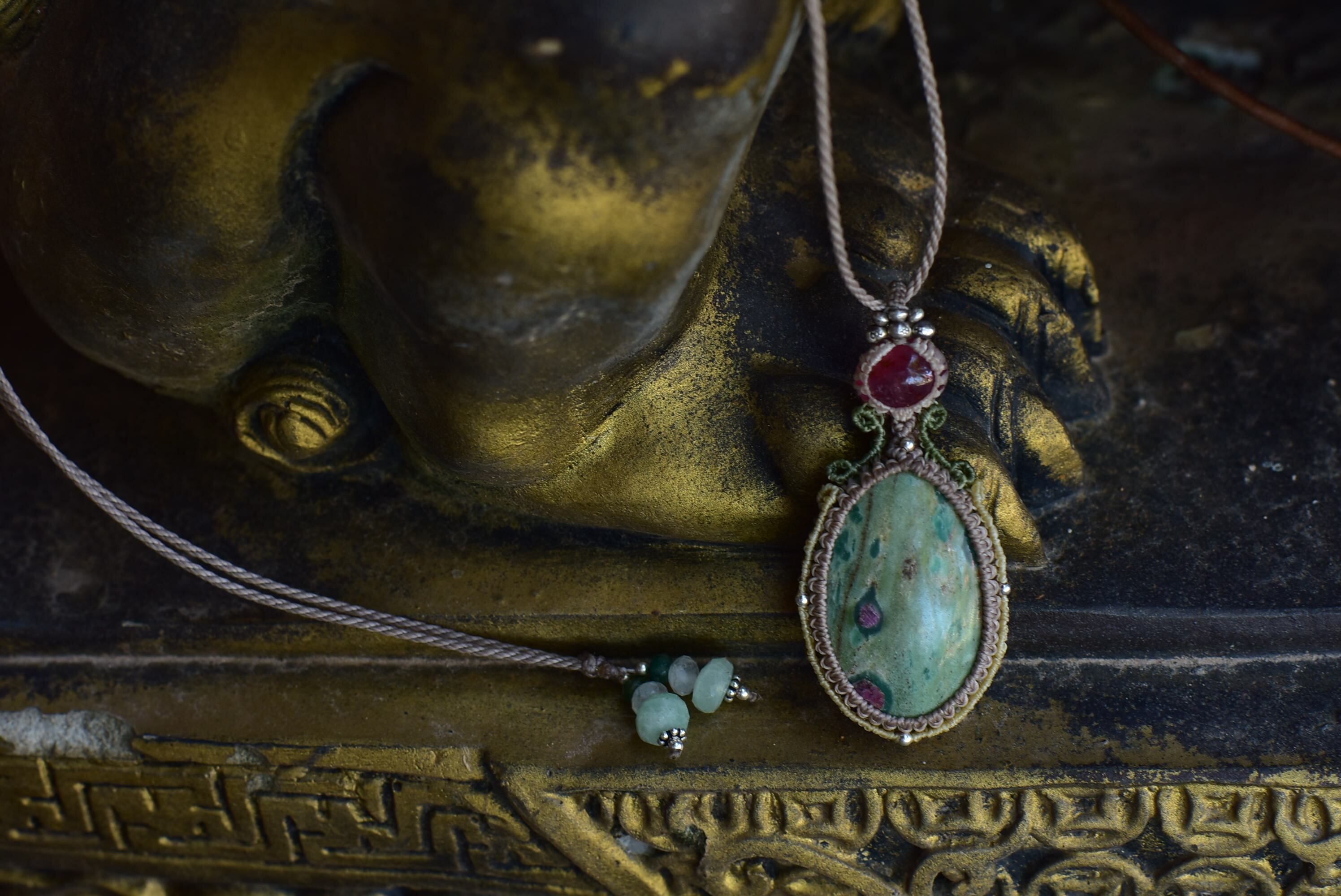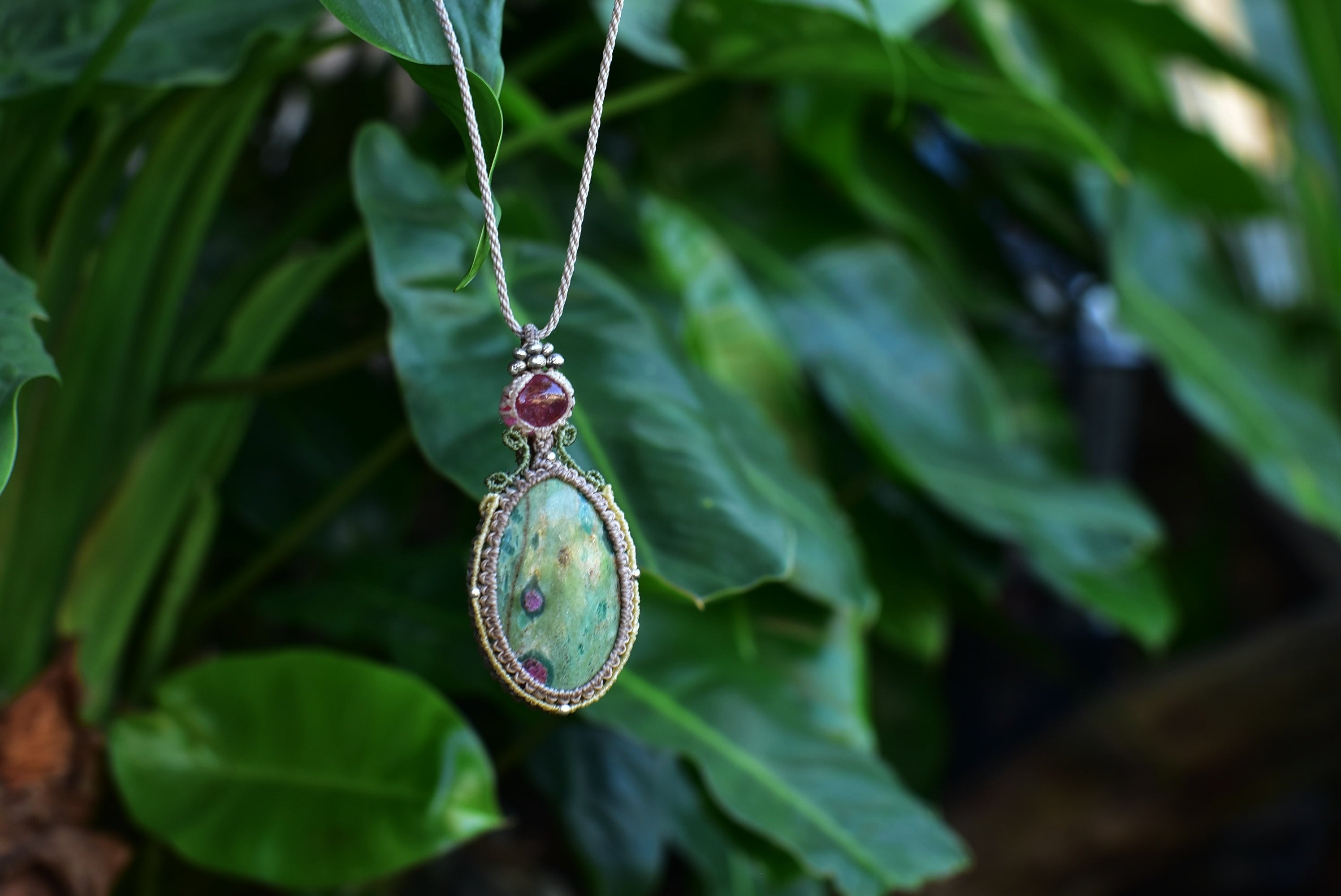 自然を想像してマクラメ編みを施したルビーとルビーインフックサイト。