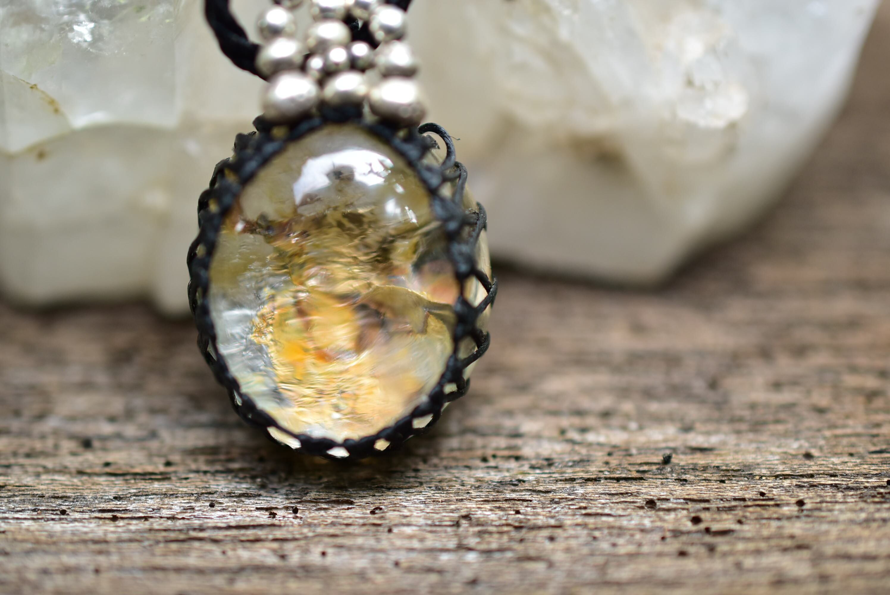 太陽の下で水晶を除いて見てください。美しいインクルージョンを見ることができます。