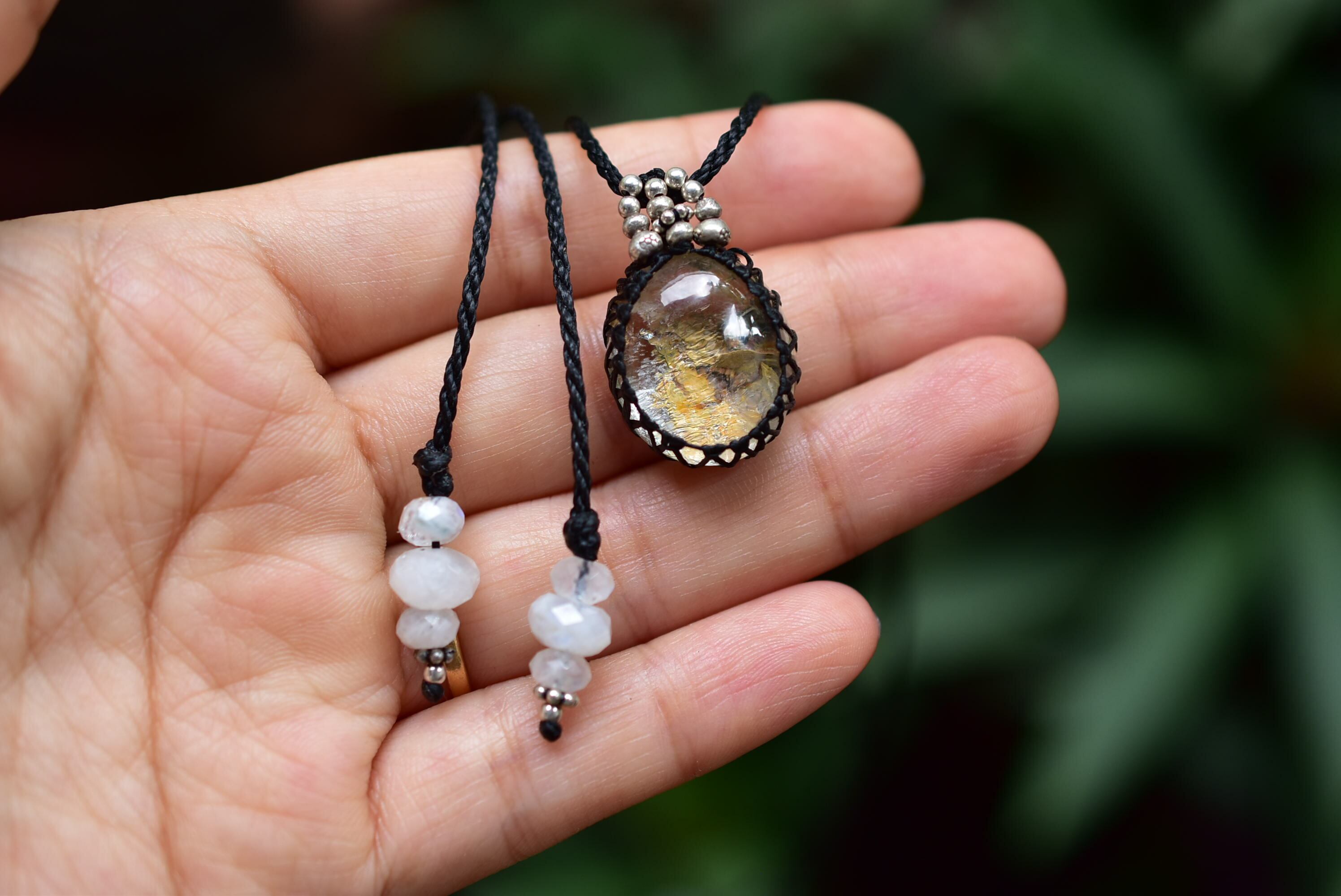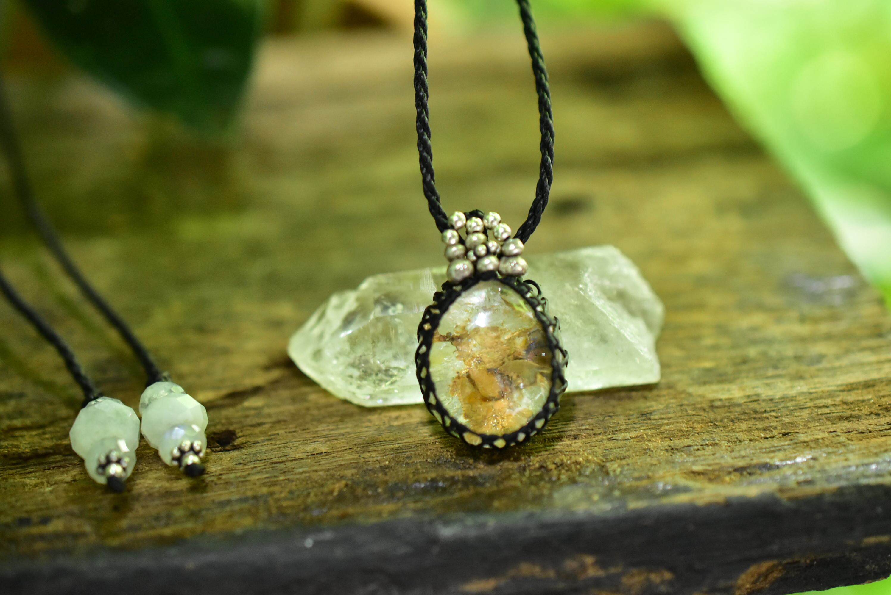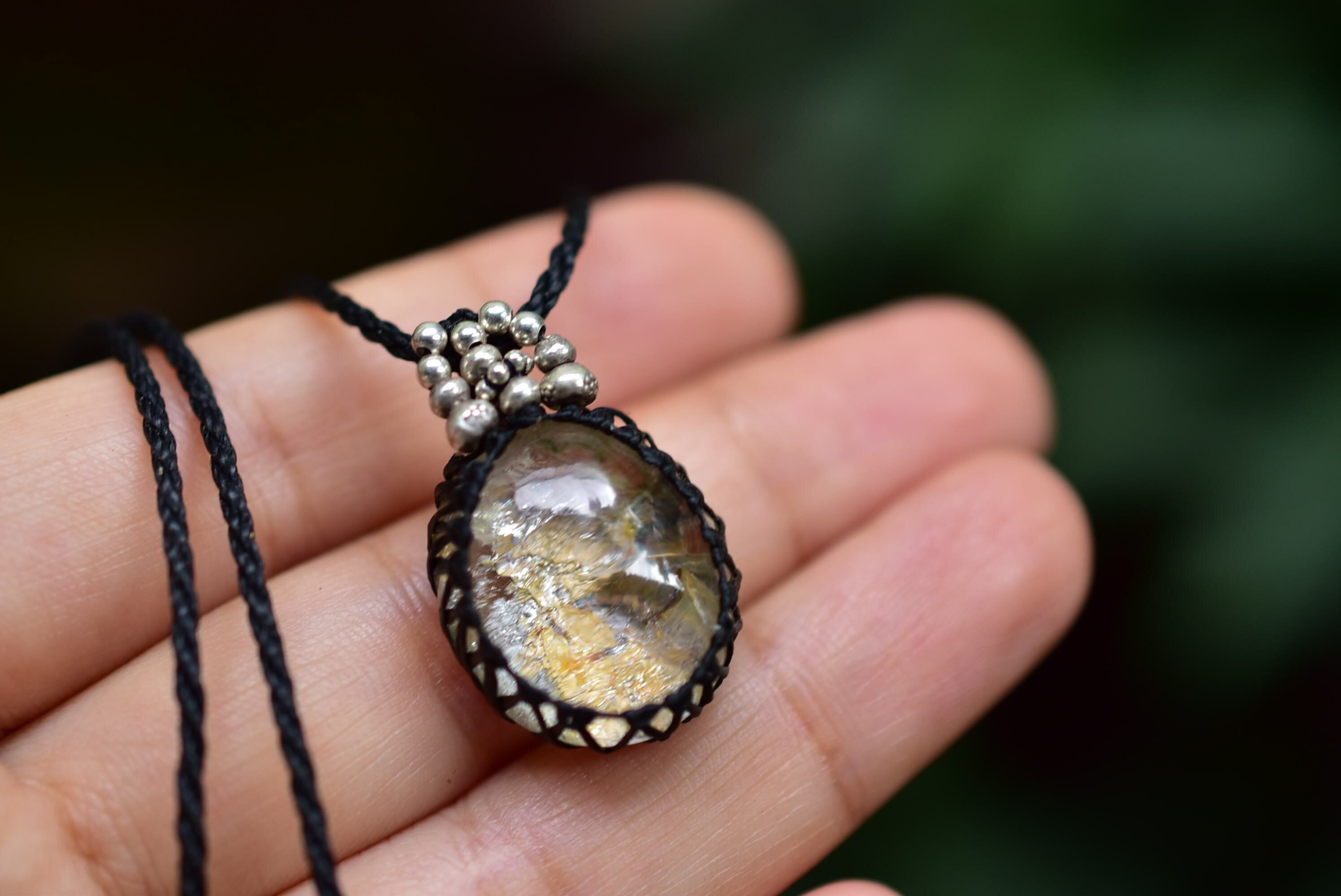 ほんのり虹入り★シラークォーツ インクォーツ マクラメペンダントqu002